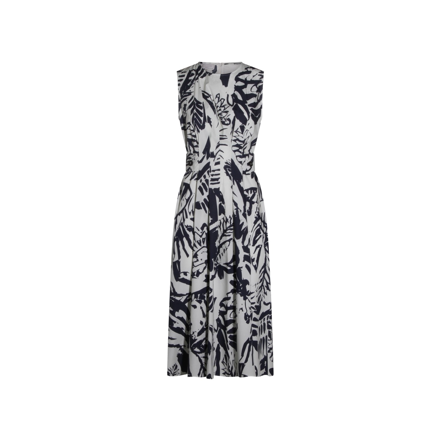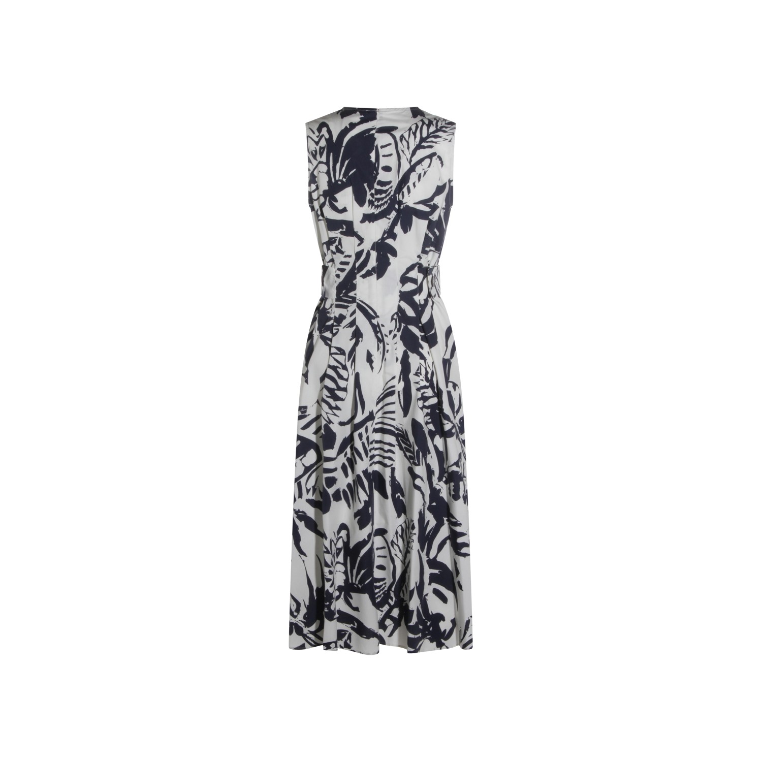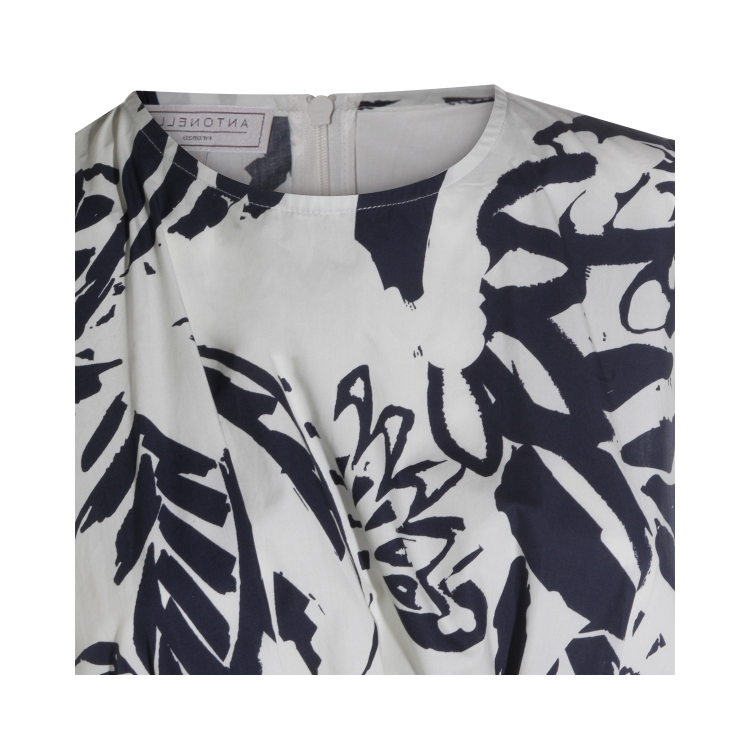 Blue cotton dress from Antonelli Firenze featuring crew neck, sleeveless, floral pattern, back fastening and midi lenght.