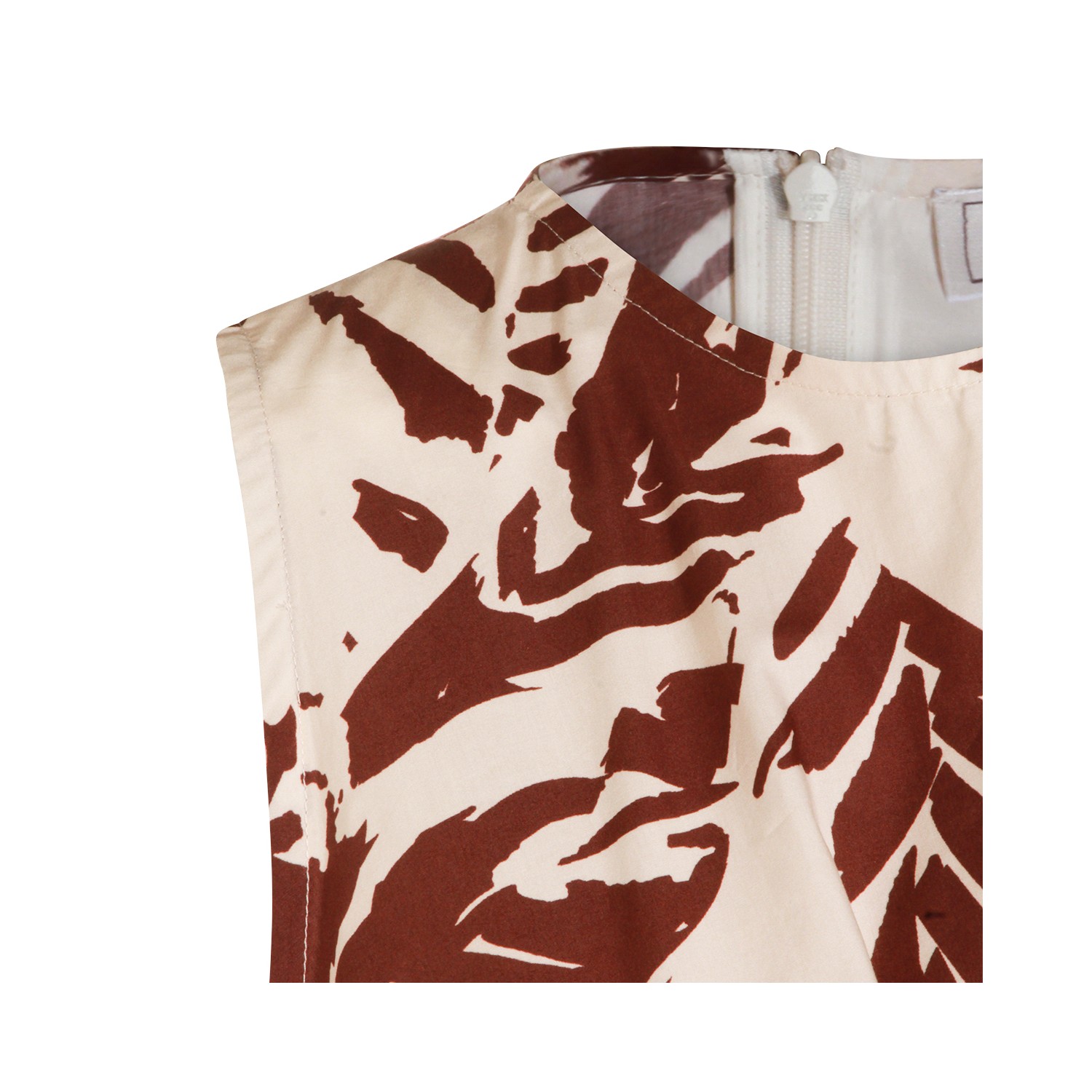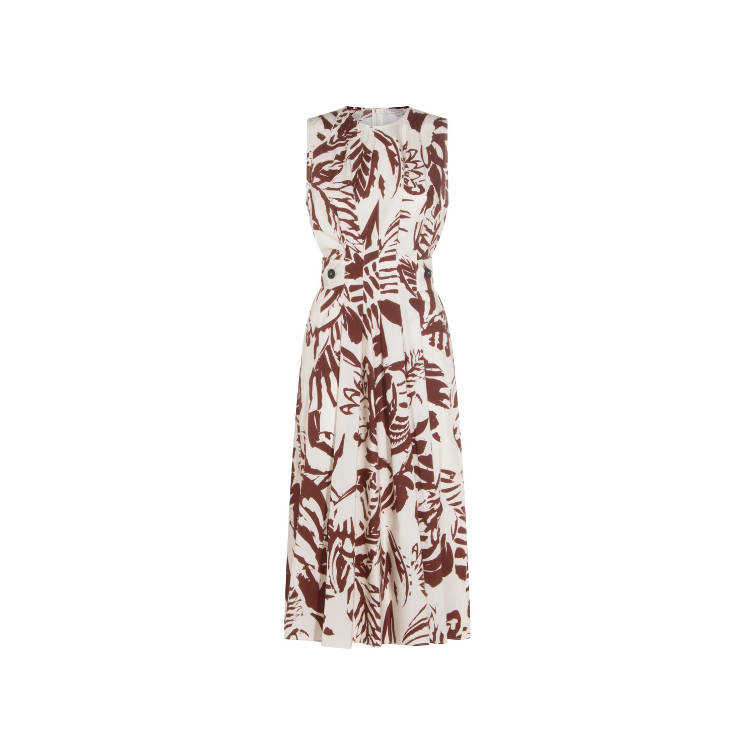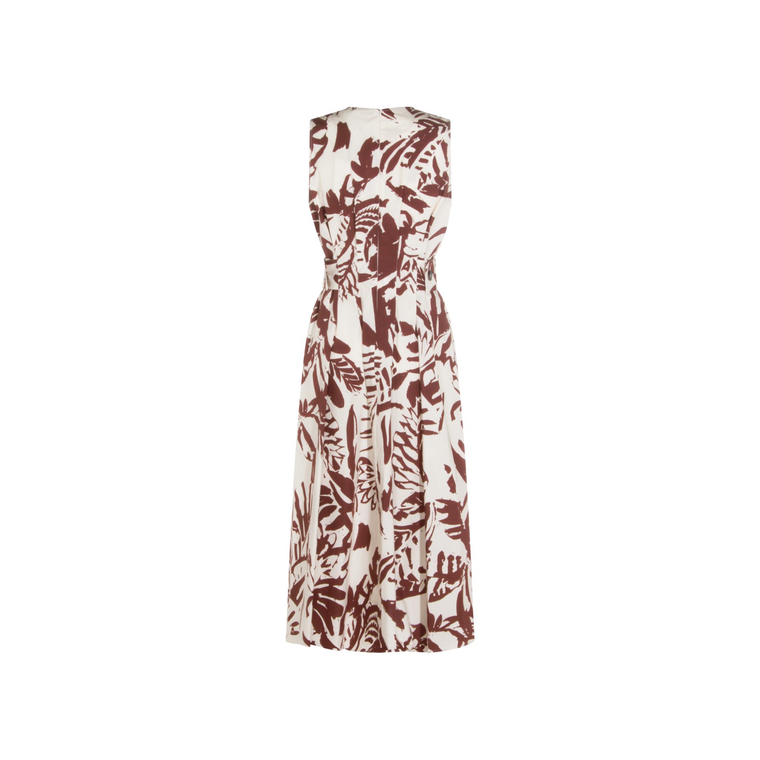 Brown cotton dress from Antonelli Firenze featuring crew neck, sleeveless, floral pattern, back fastening and midi lenght.