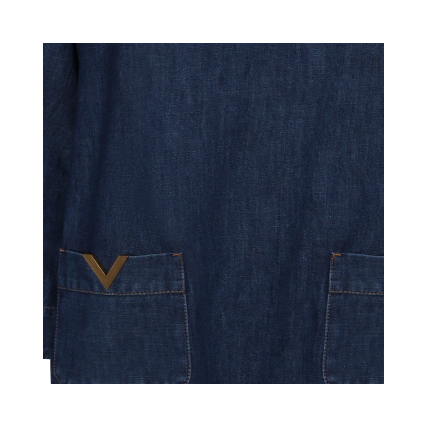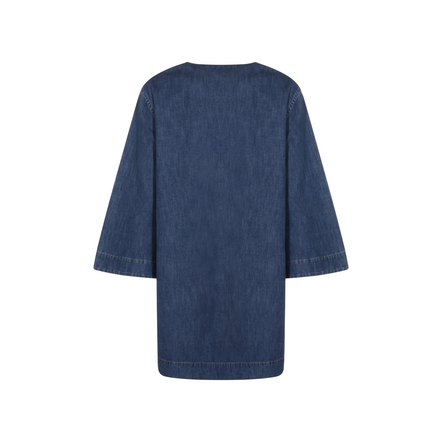 Blue cotton dress from Valentino featuring round collar, wide sleeves, pockets, relaxed fit and mini lenght.