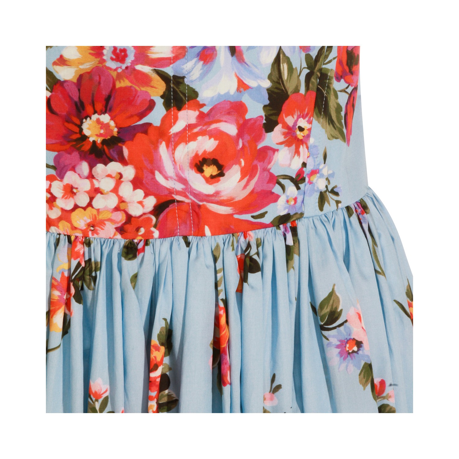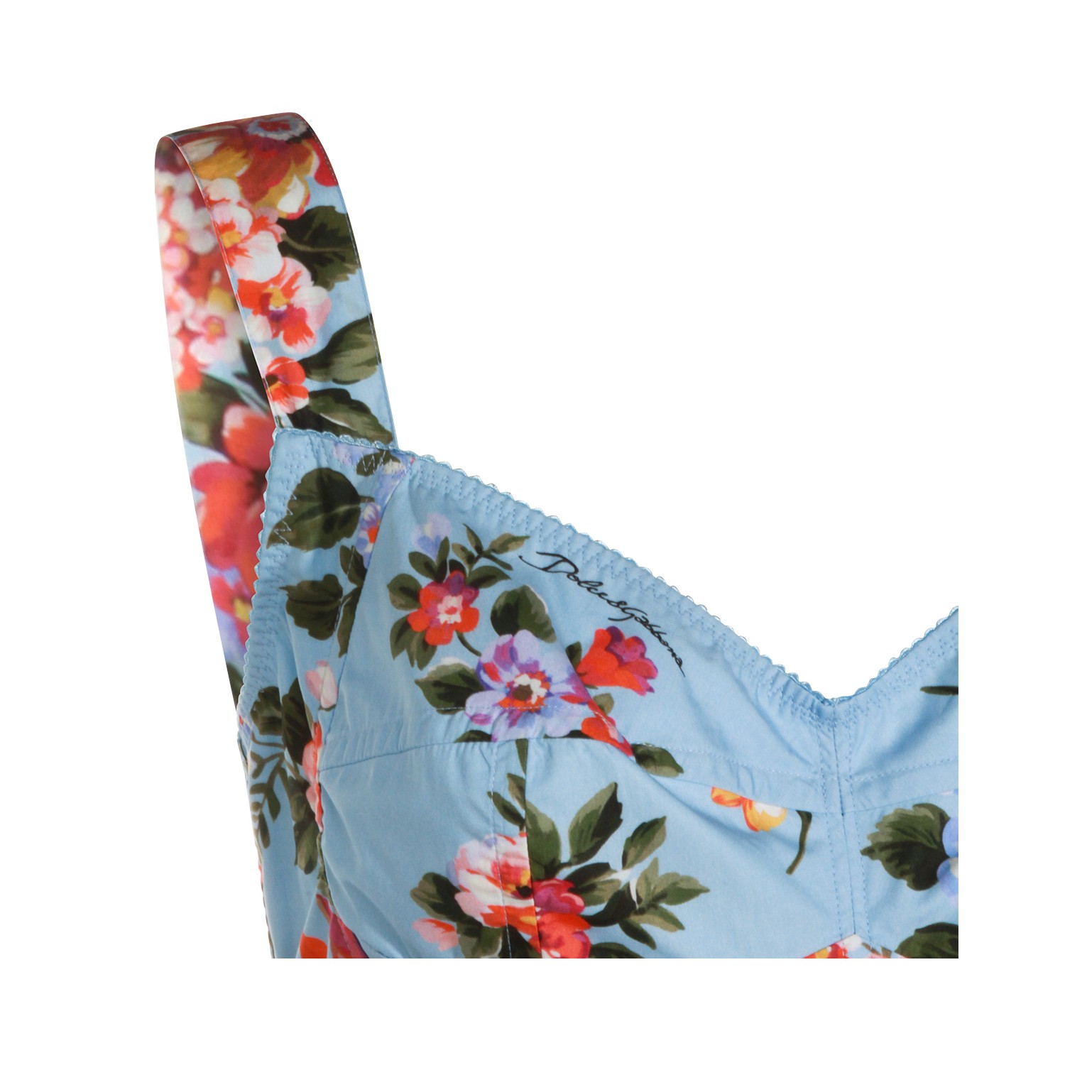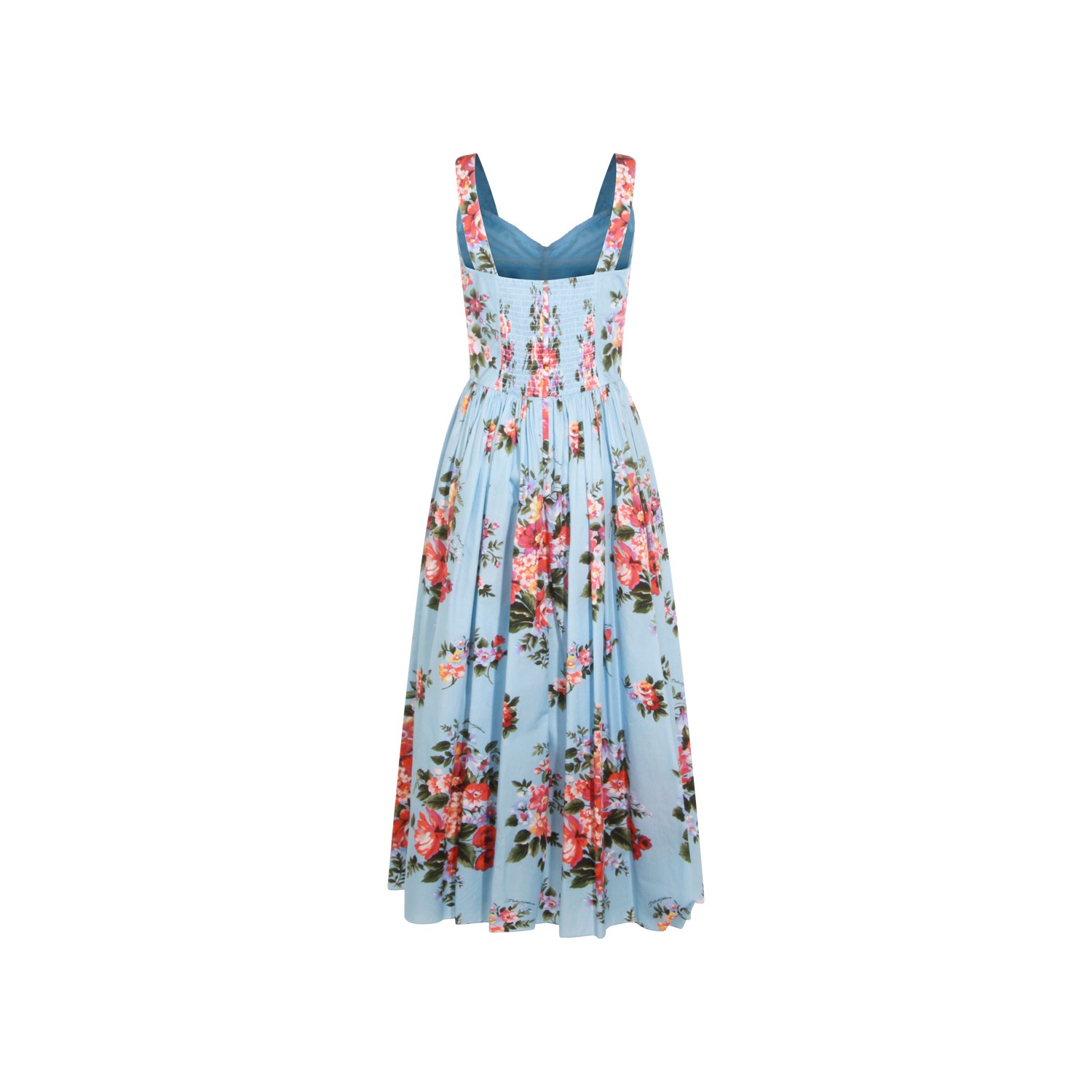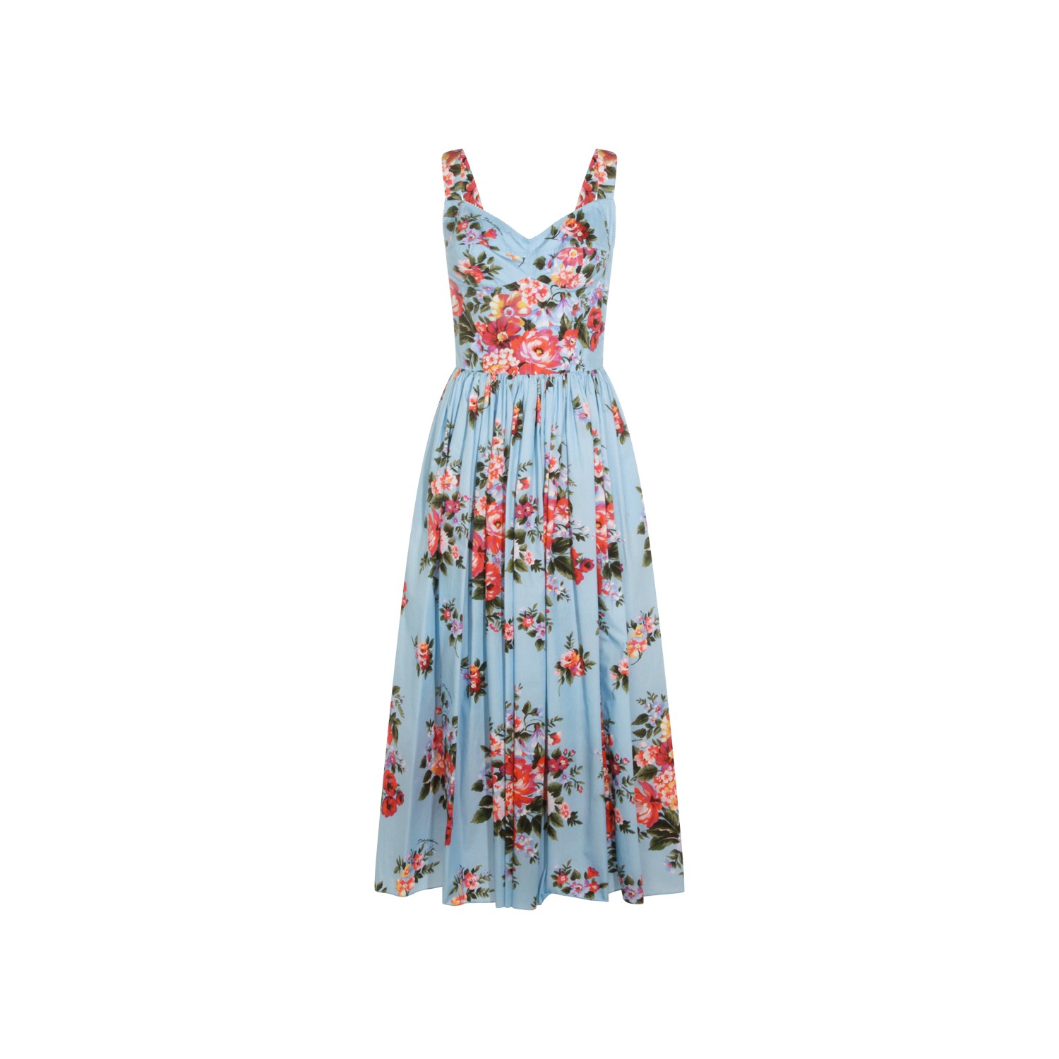Multicolor cotton dress from Dolce & Gabbana featuring heart neckline, sleeveless, all-over floral print, back fastening, pleats and long lenght.