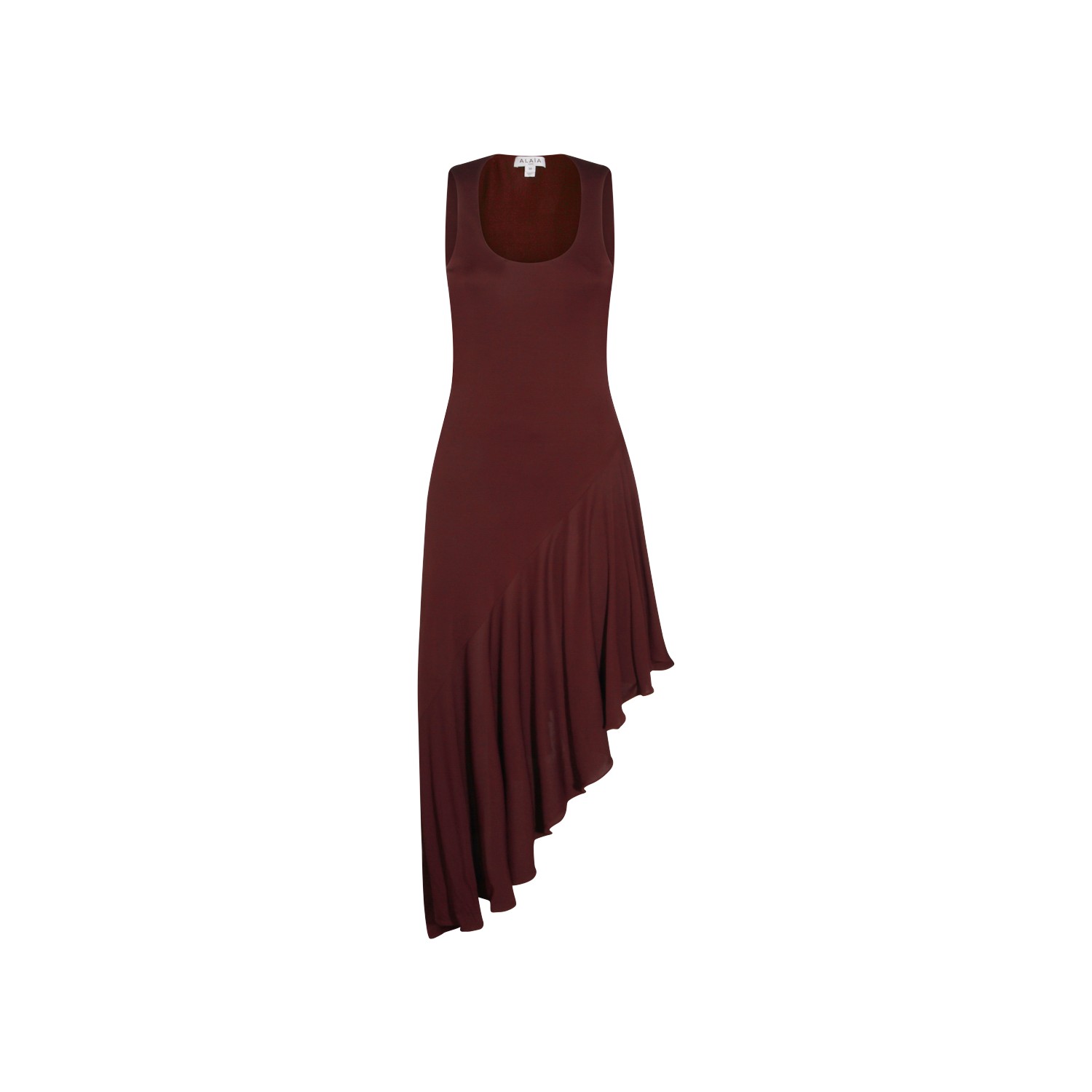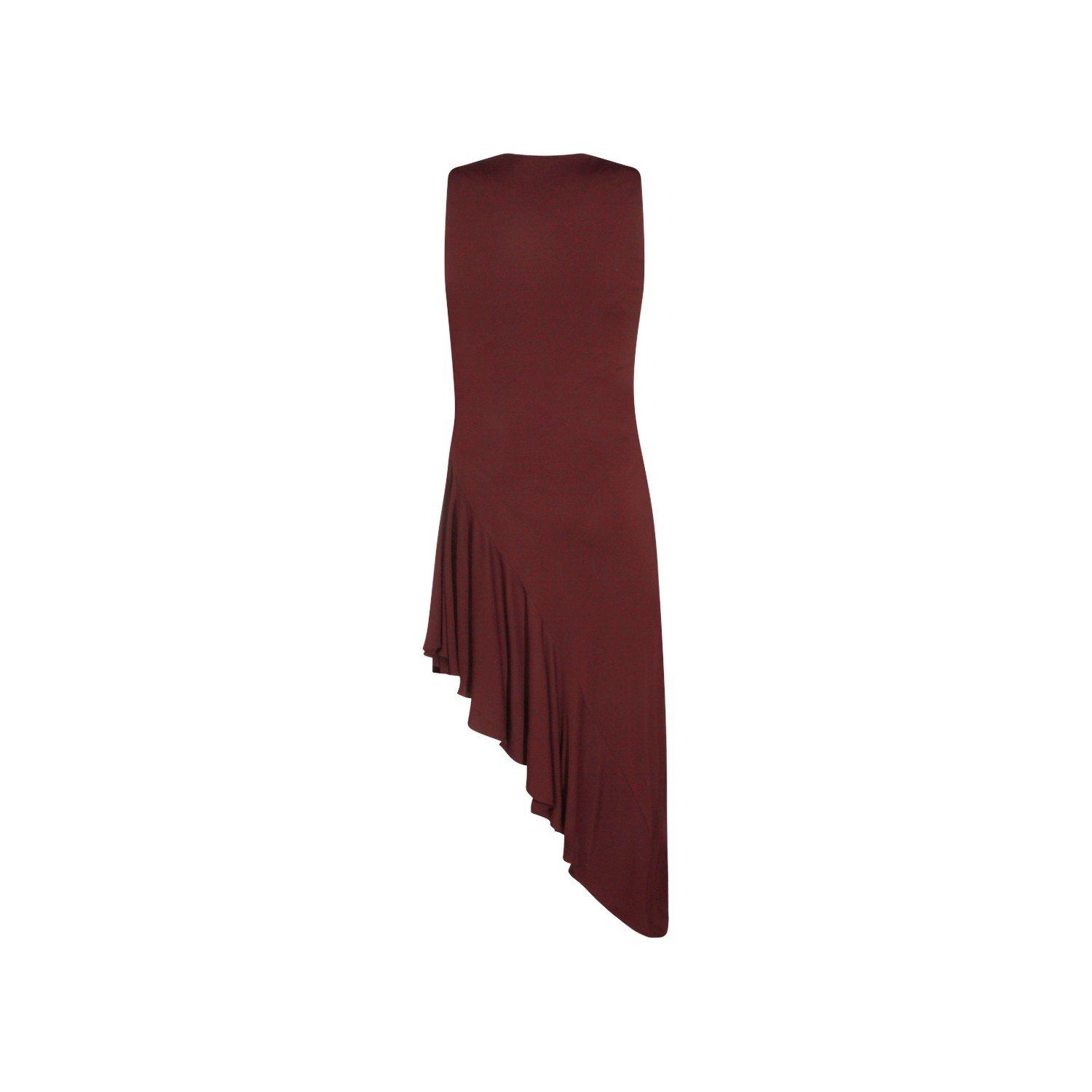 BORDEAUX VISCOSE ASYMMETRIC MID DRESS
