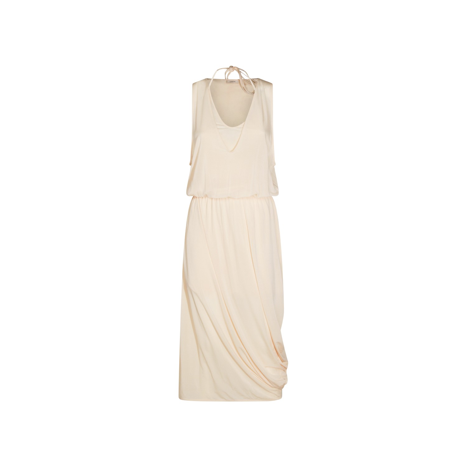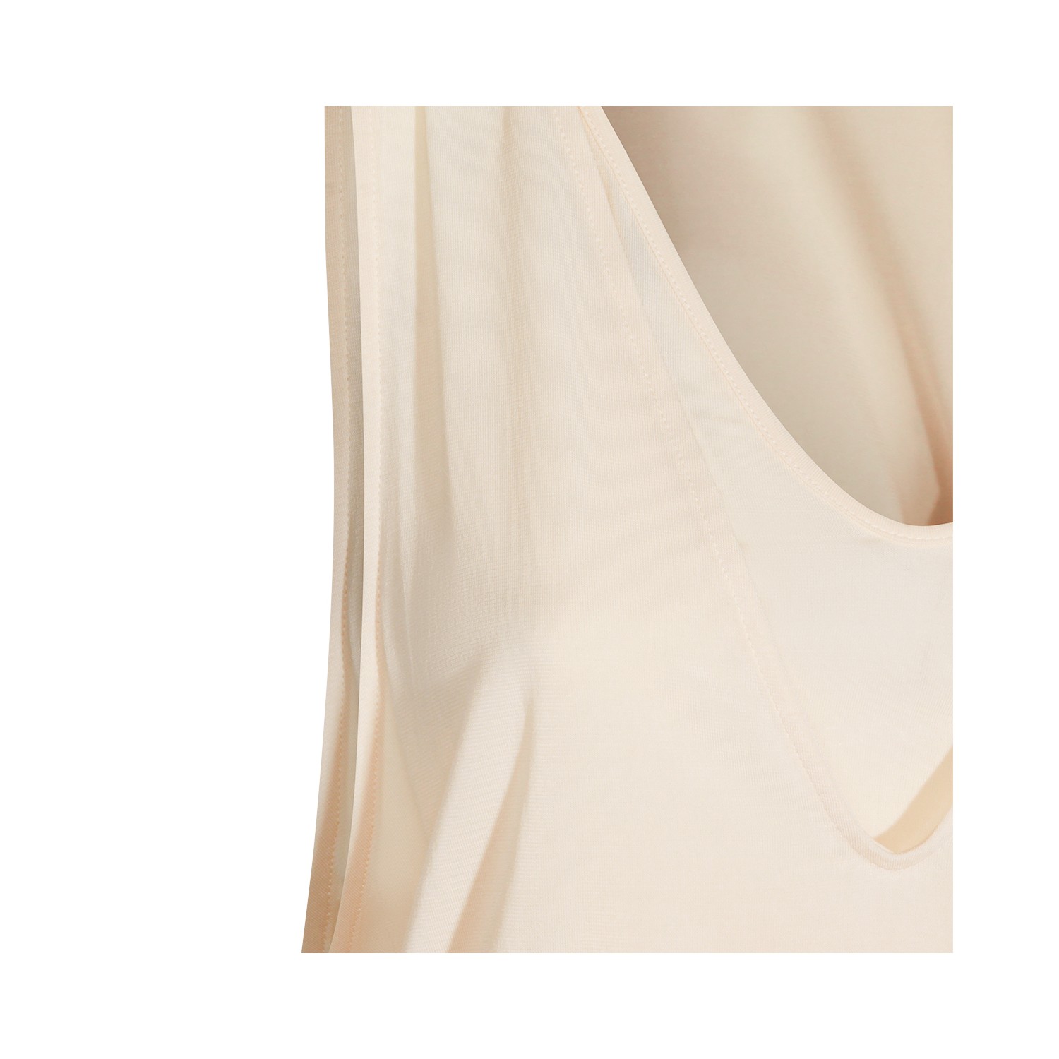 Cream viscose stretch long dress from Lemaire featuring long length, round neckline, thin straps and sleeveless line.