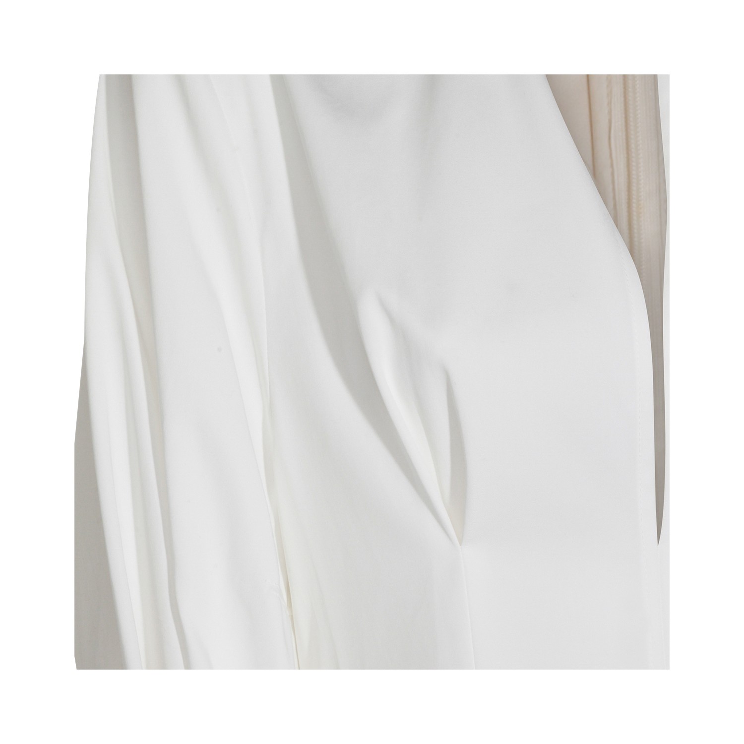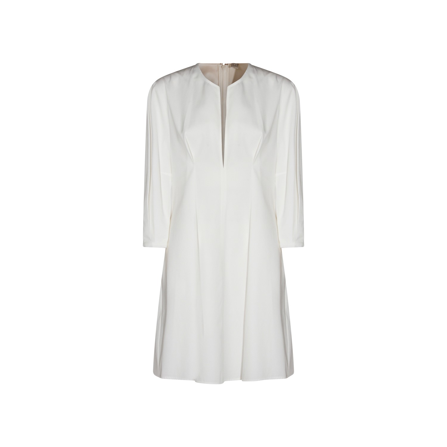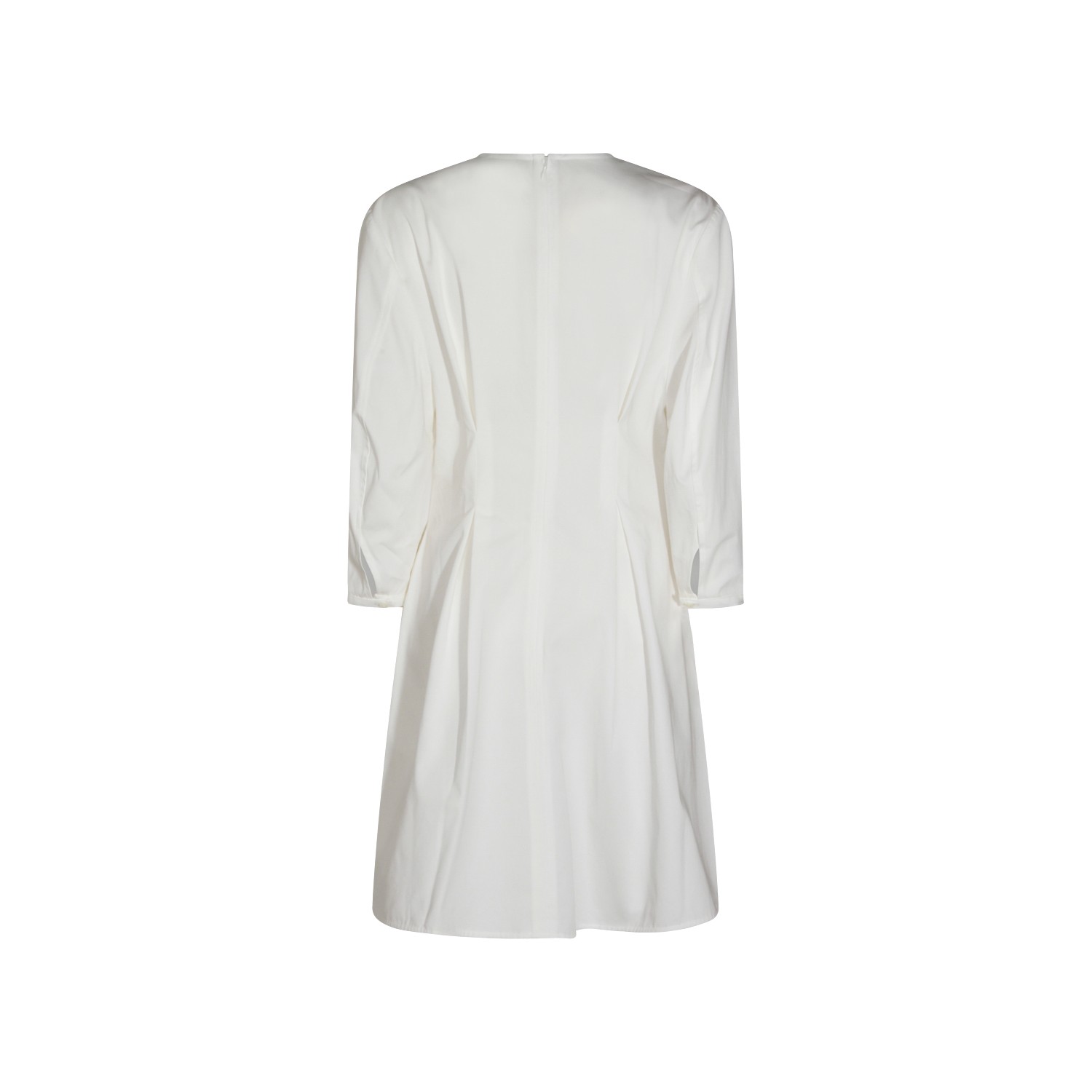 White cotton dress from Toteme featuring round collar, long sleeves, back zip fastening and midi lenght.