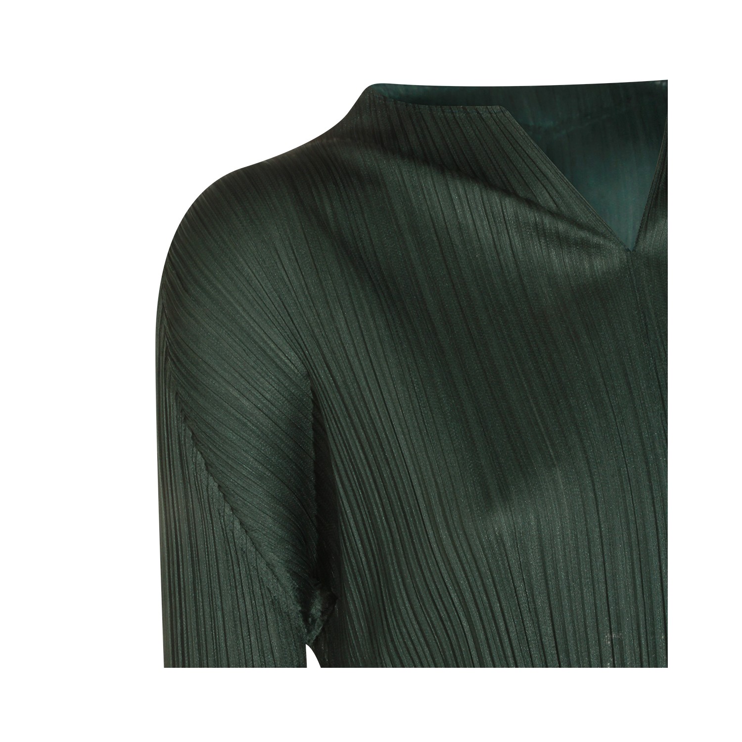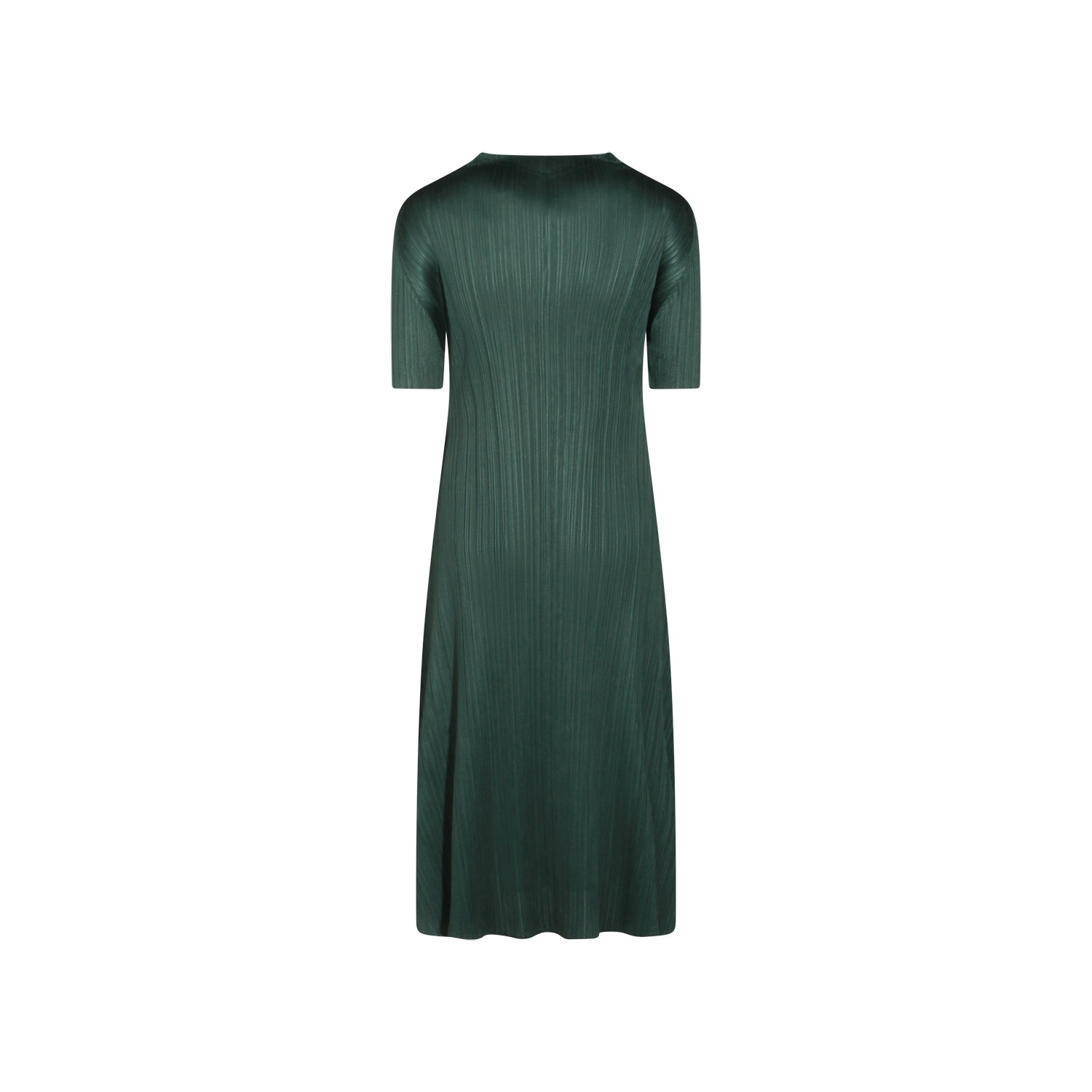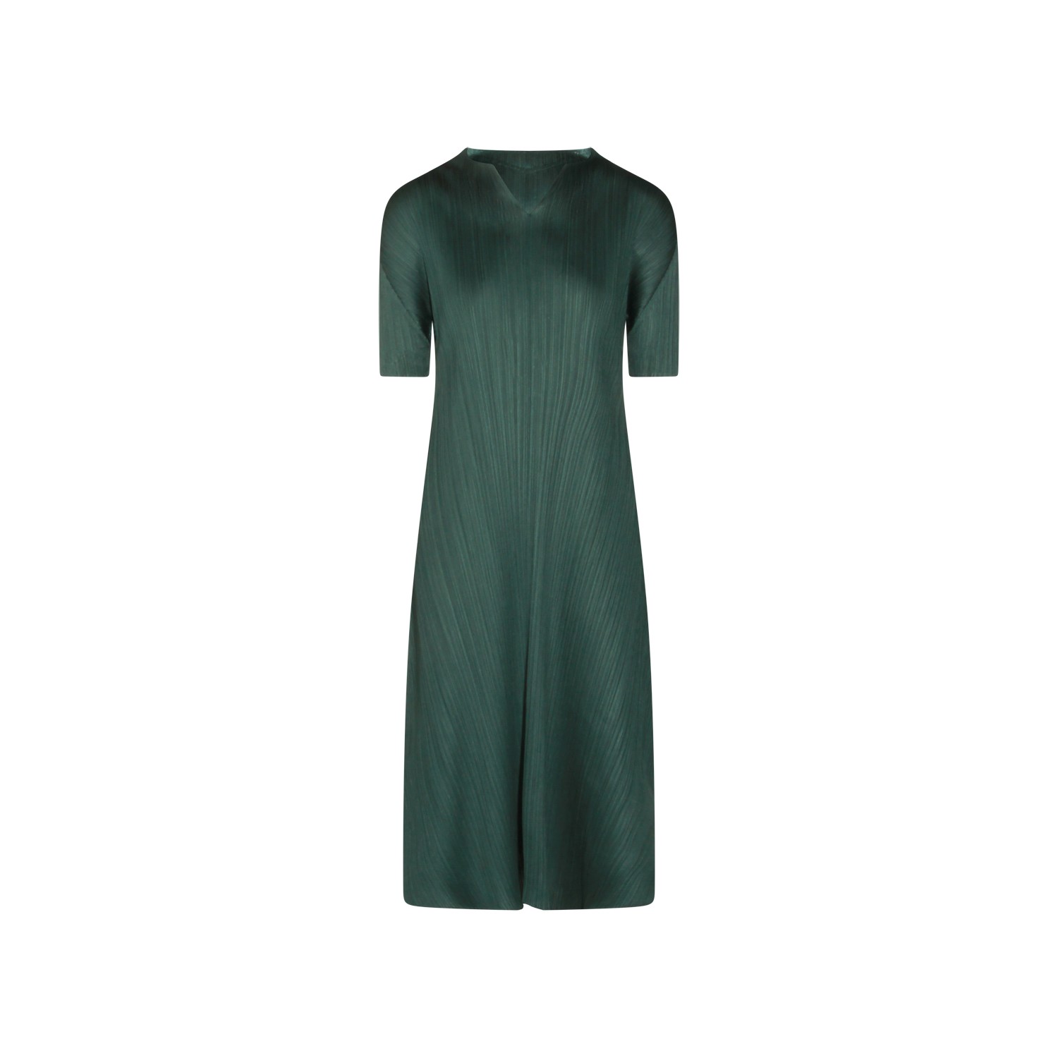Green dress from Pleats Please Issey Miyake featuring v neck, short sleeves, pleats and long lenght.