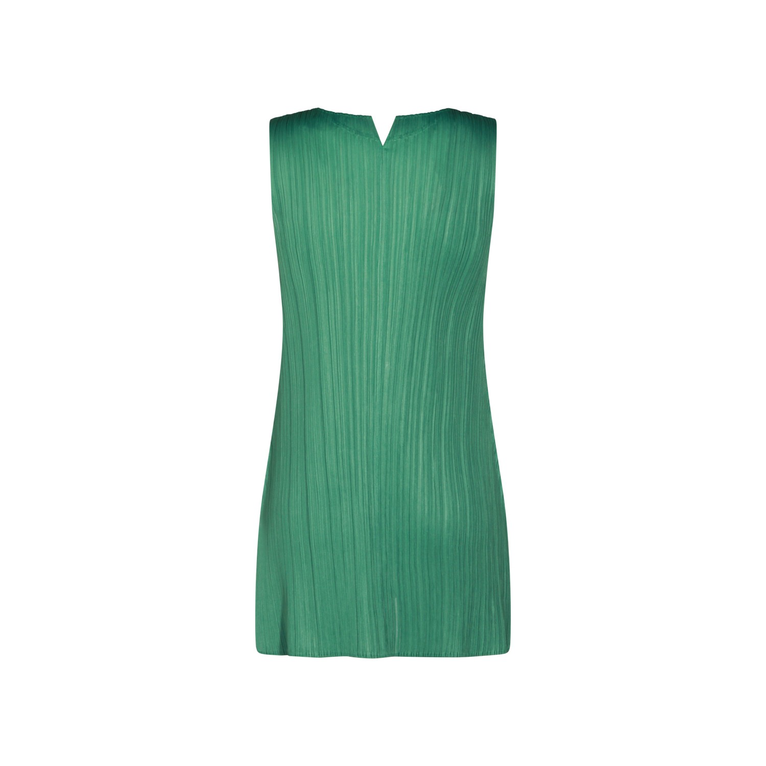 Green dress from Pleats Please Issey Miyake featuring round collar, sleeveless, back fastening, pleats and regular fit.