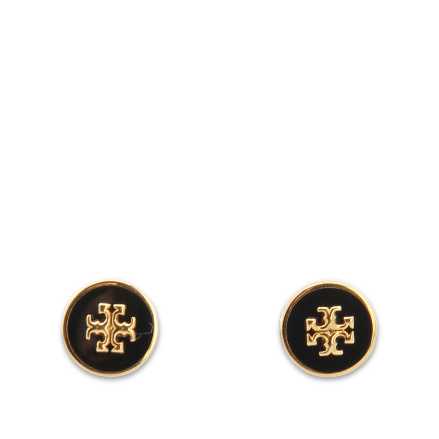 Black and gold metal Kira earrings from Tory Burch featuring butterfly closure, Double T detail and stud line.