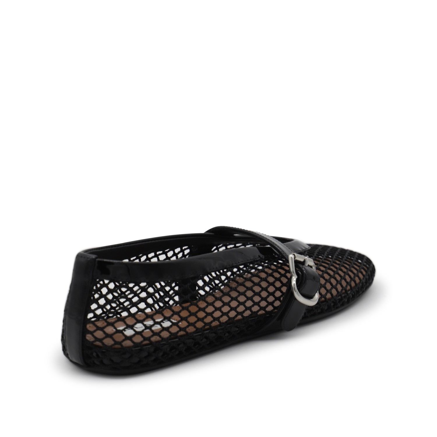 Black leather flats from Alaia featuring round toe, trasparence, leather sole and buckle fastening.