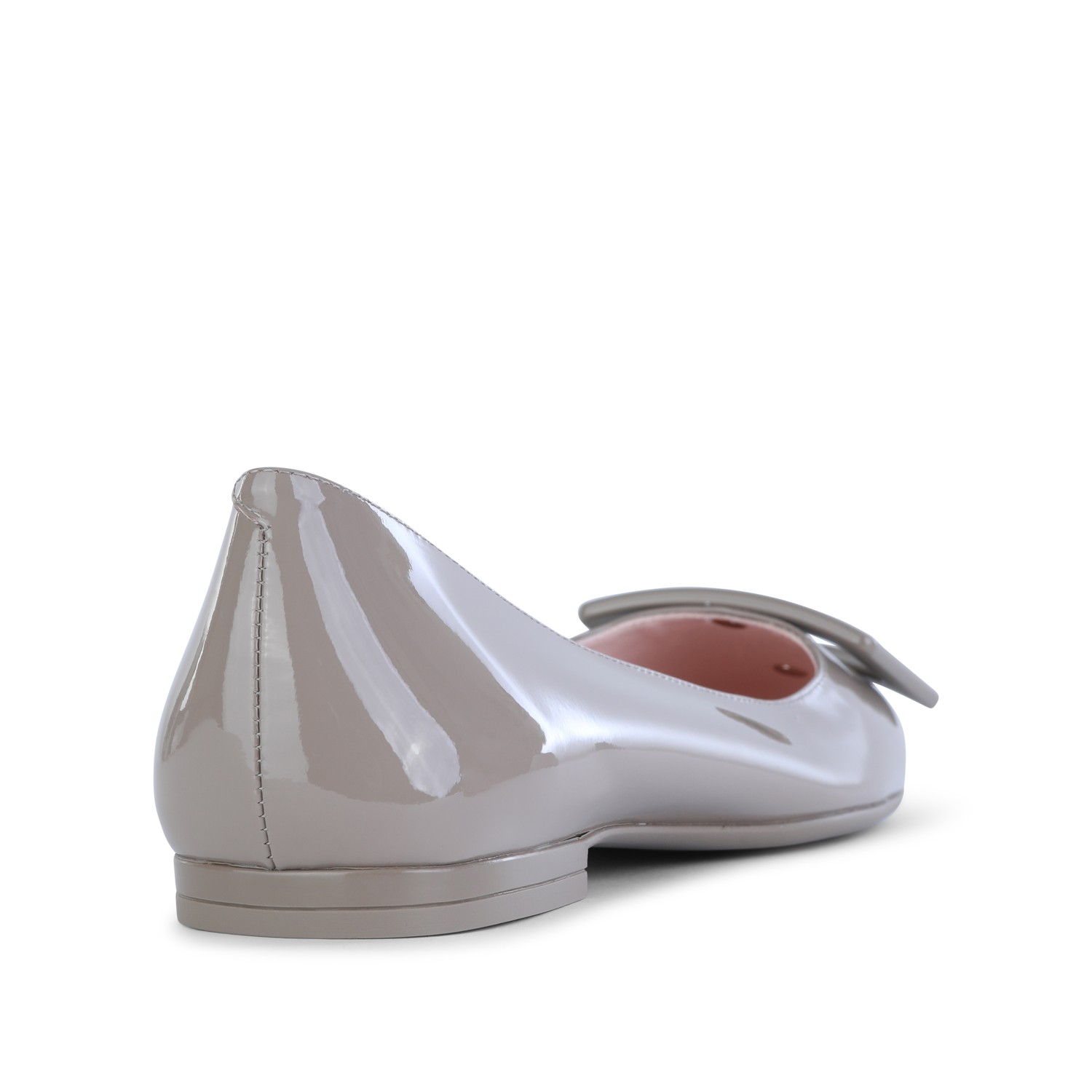 Grey flats from Roger Vivier featuring square toe, slip-on style, frontal detail and leather sole.