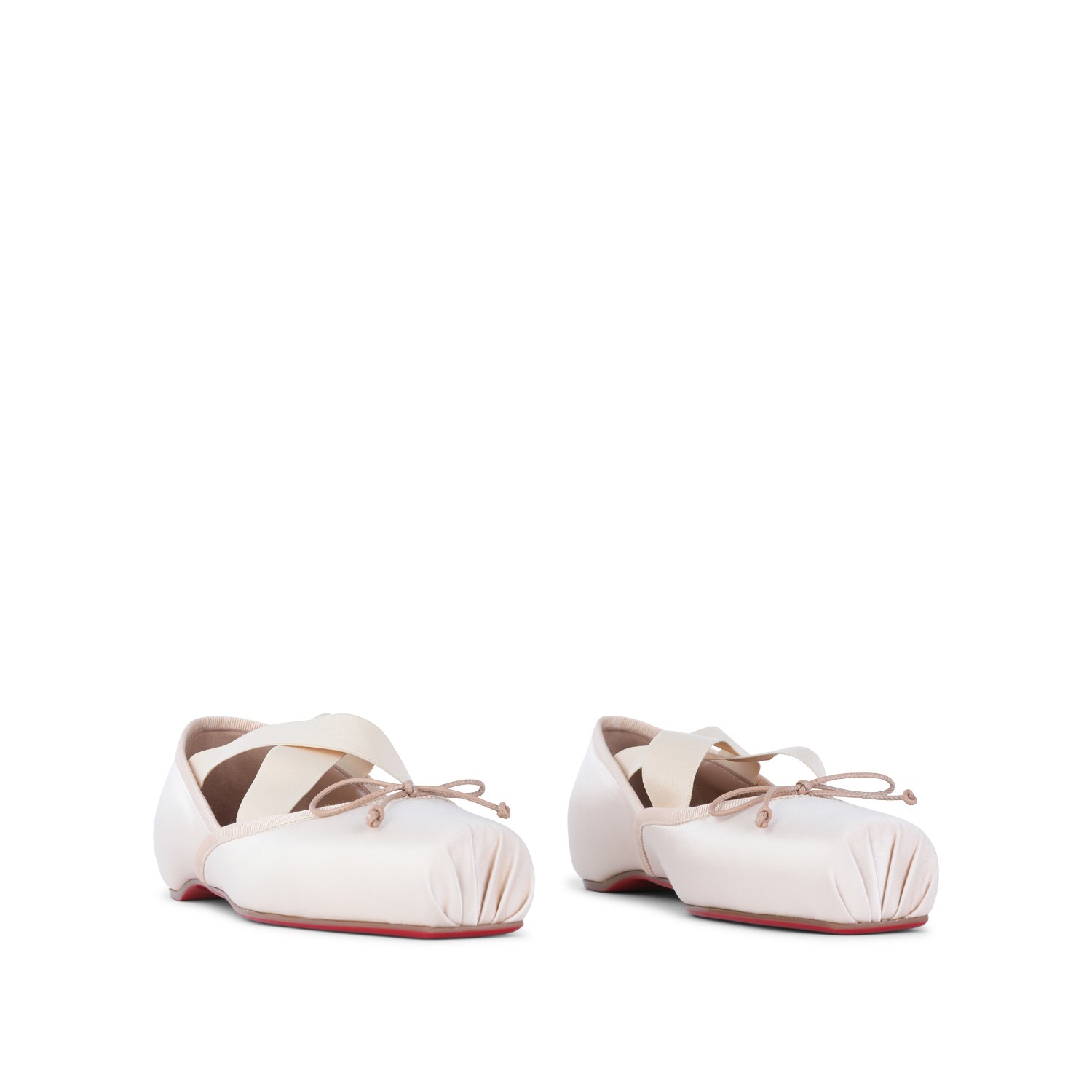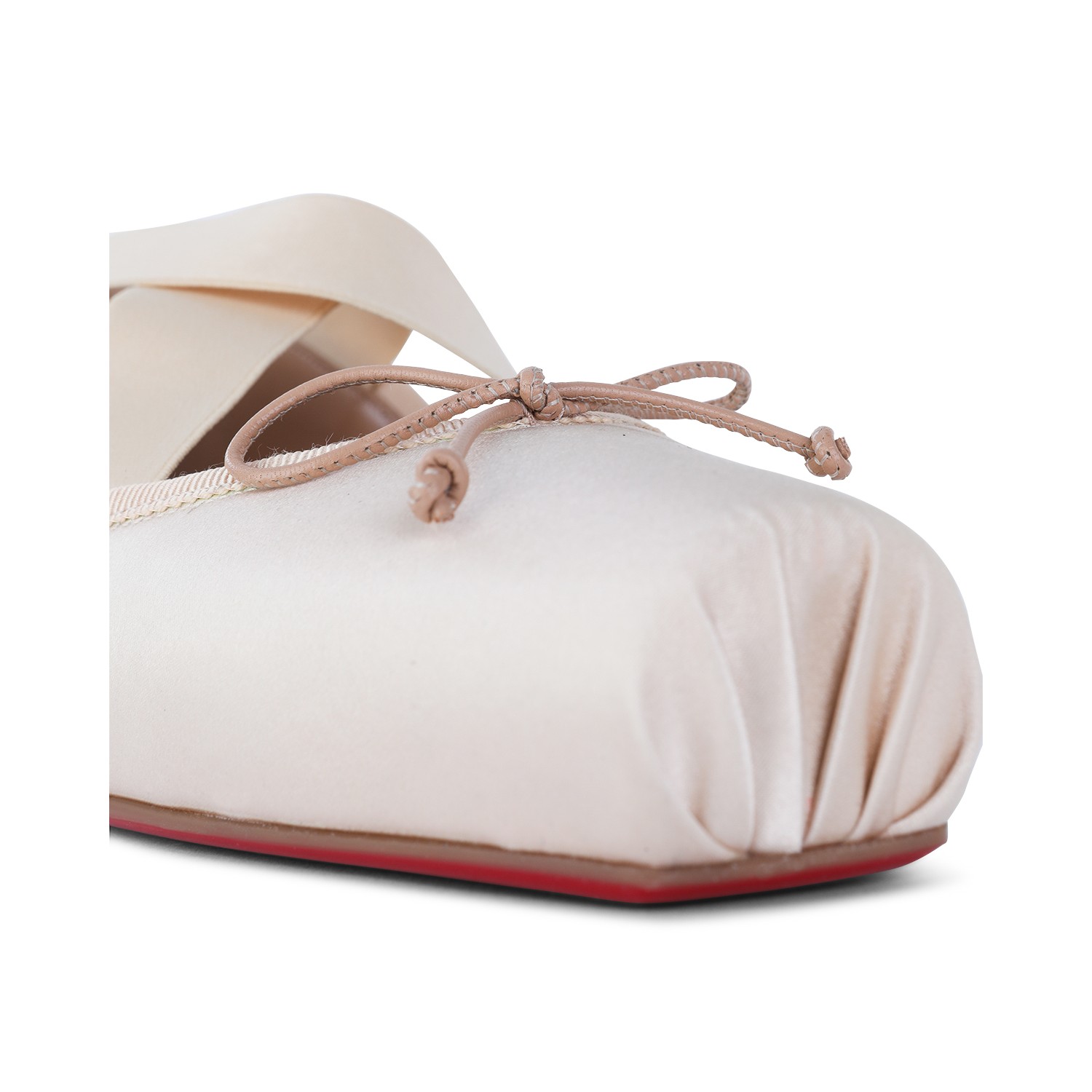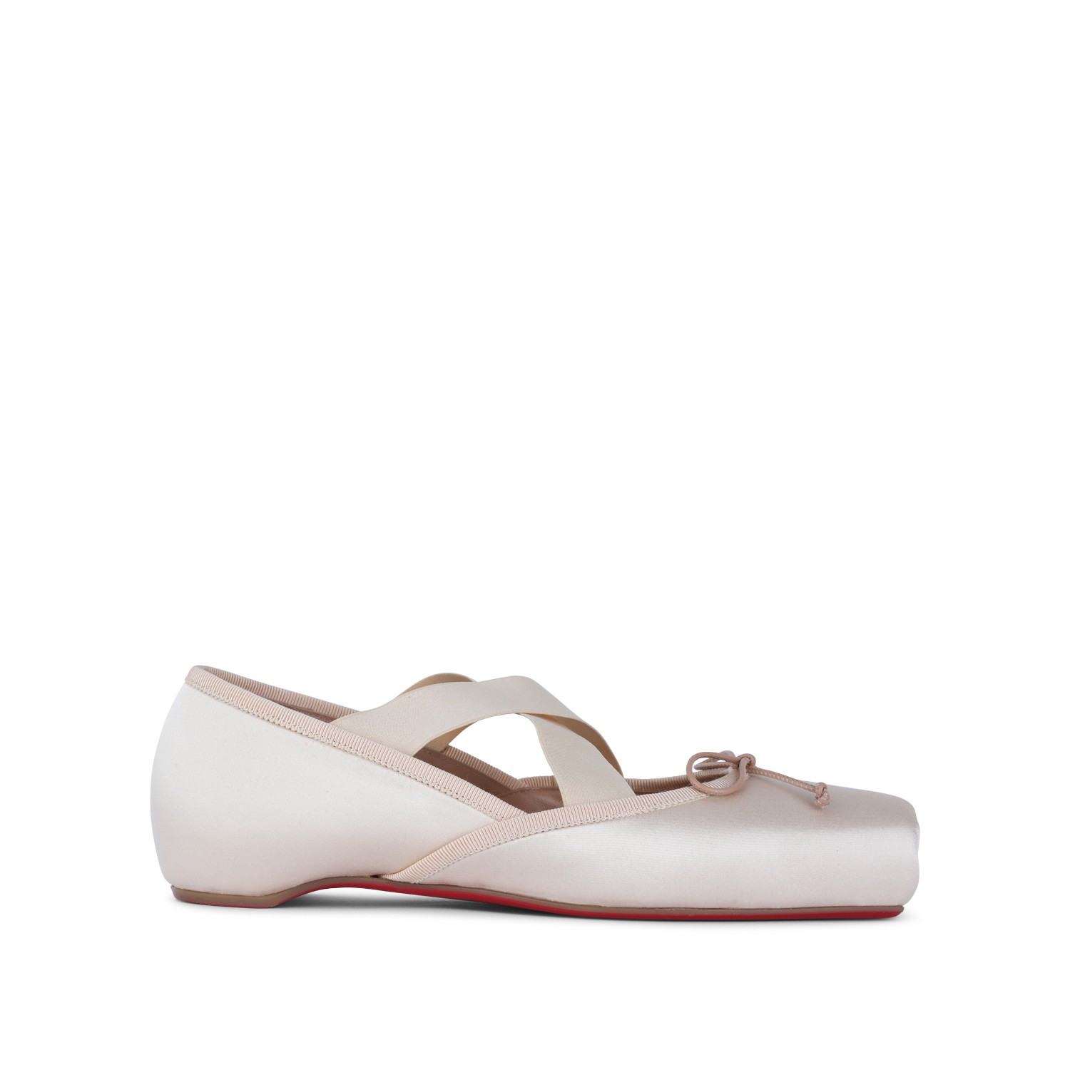 Light pink Cassiasticina flat from Christian Louboutin featuring square toe, slip-on style, bow detail, elasticated bands, branded insole and rubber sole.