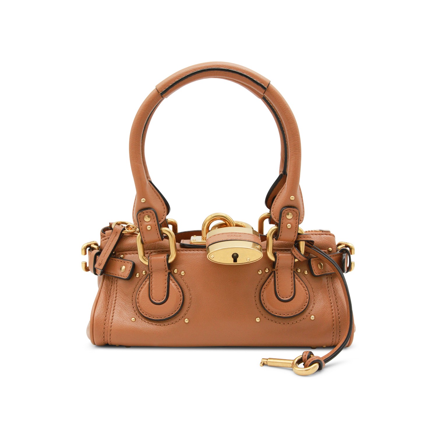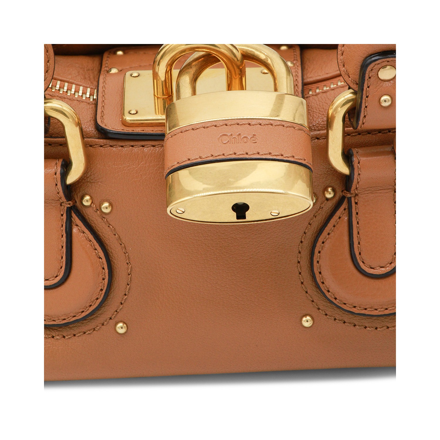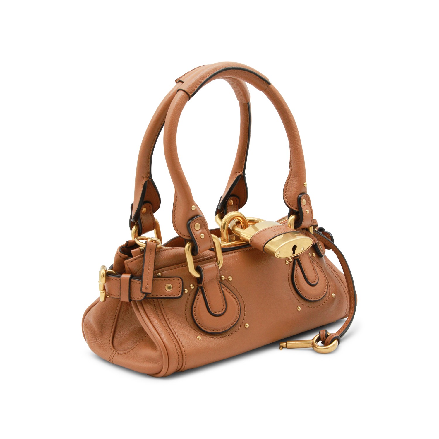 Brown leather Paddington top handle bag from Chlofeaturing top handlews, zip fastening, gold tone lock and hardware.