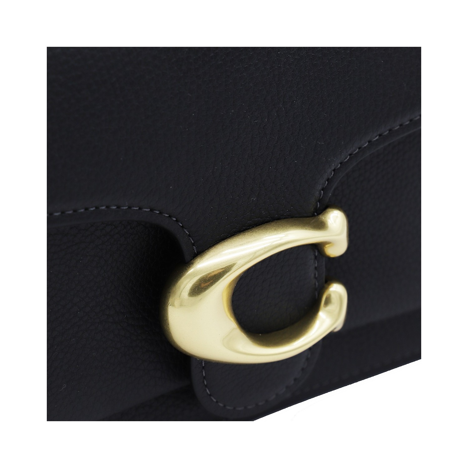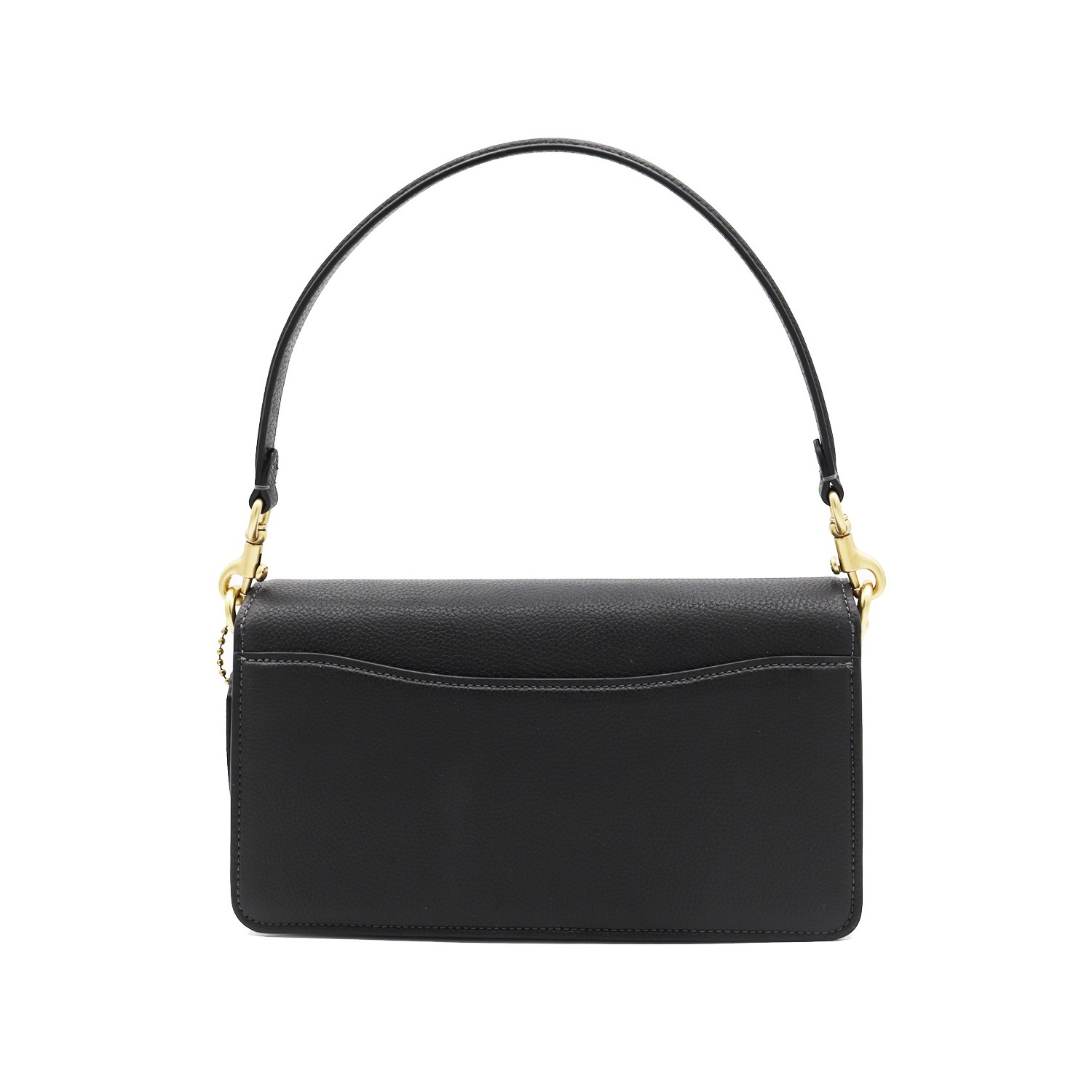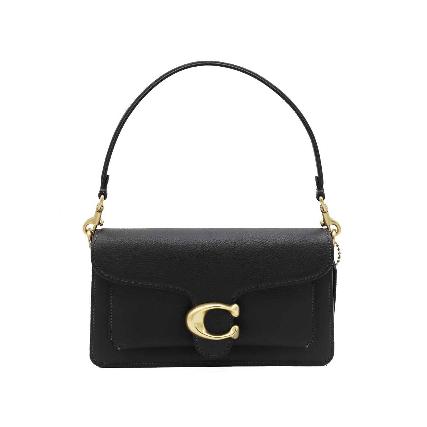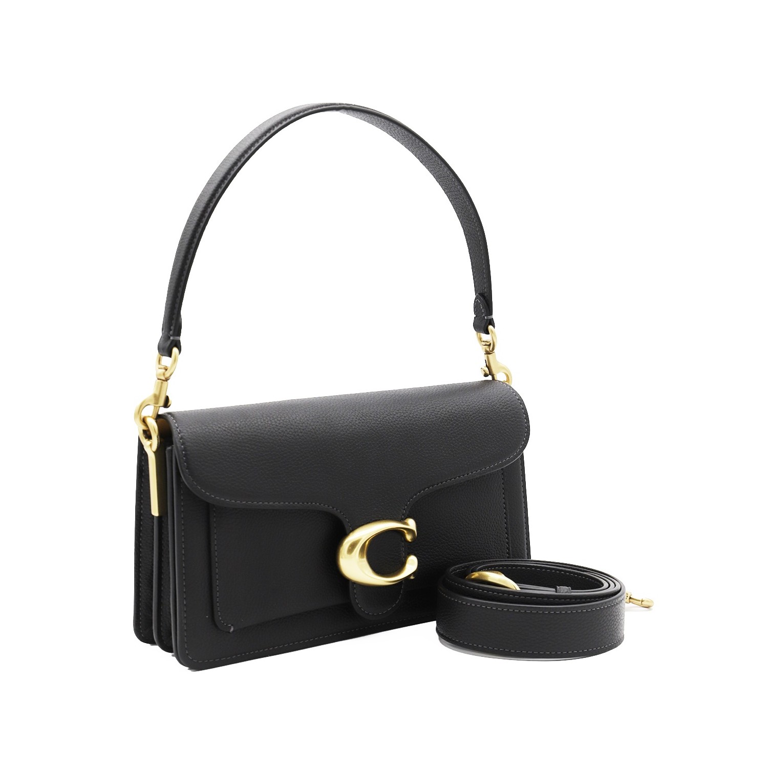 Black polished Pebble leather Tabby shoulder bag 20 Refresh from Coach featuring removable handle, frontal fastening, frontal logo and gold tone hardware.