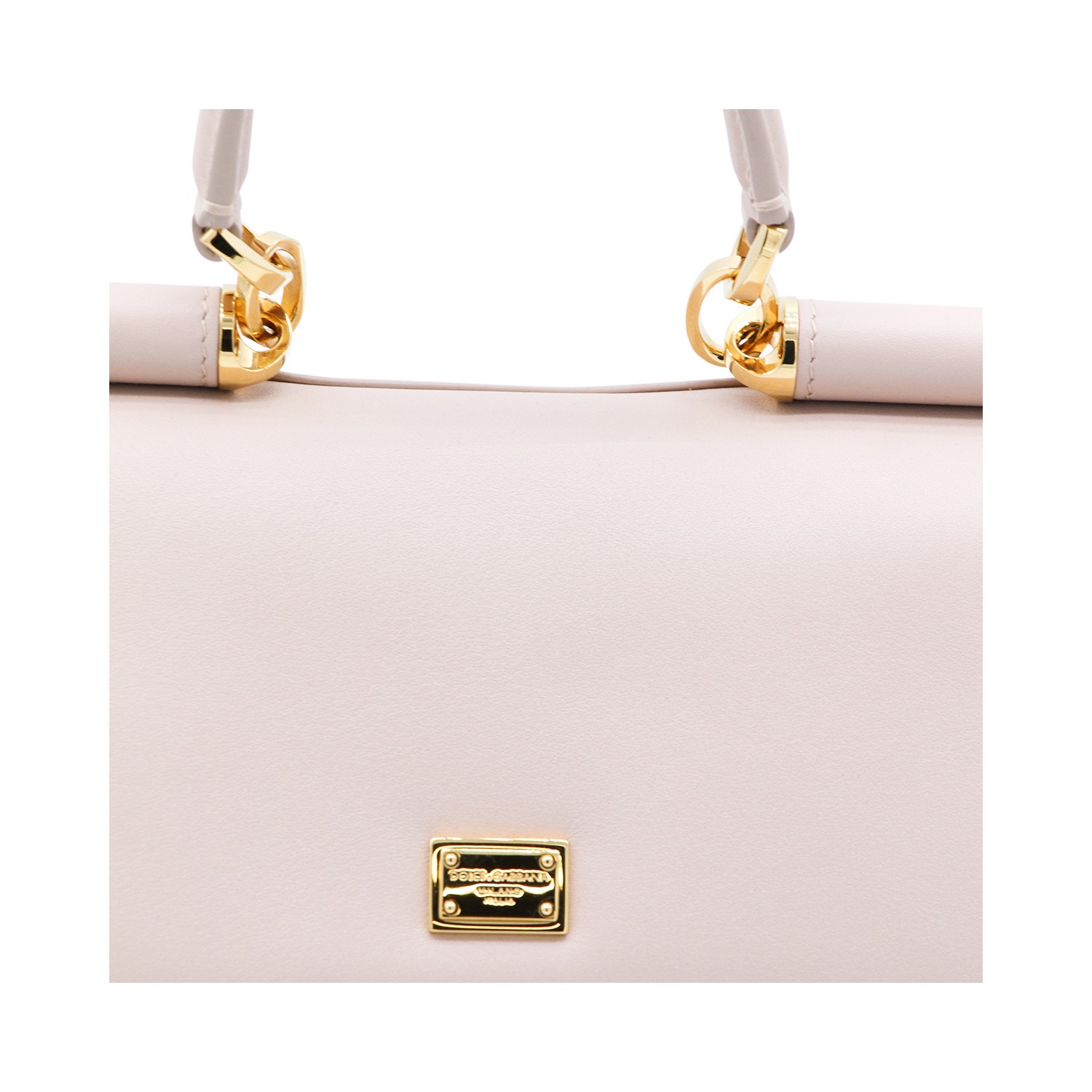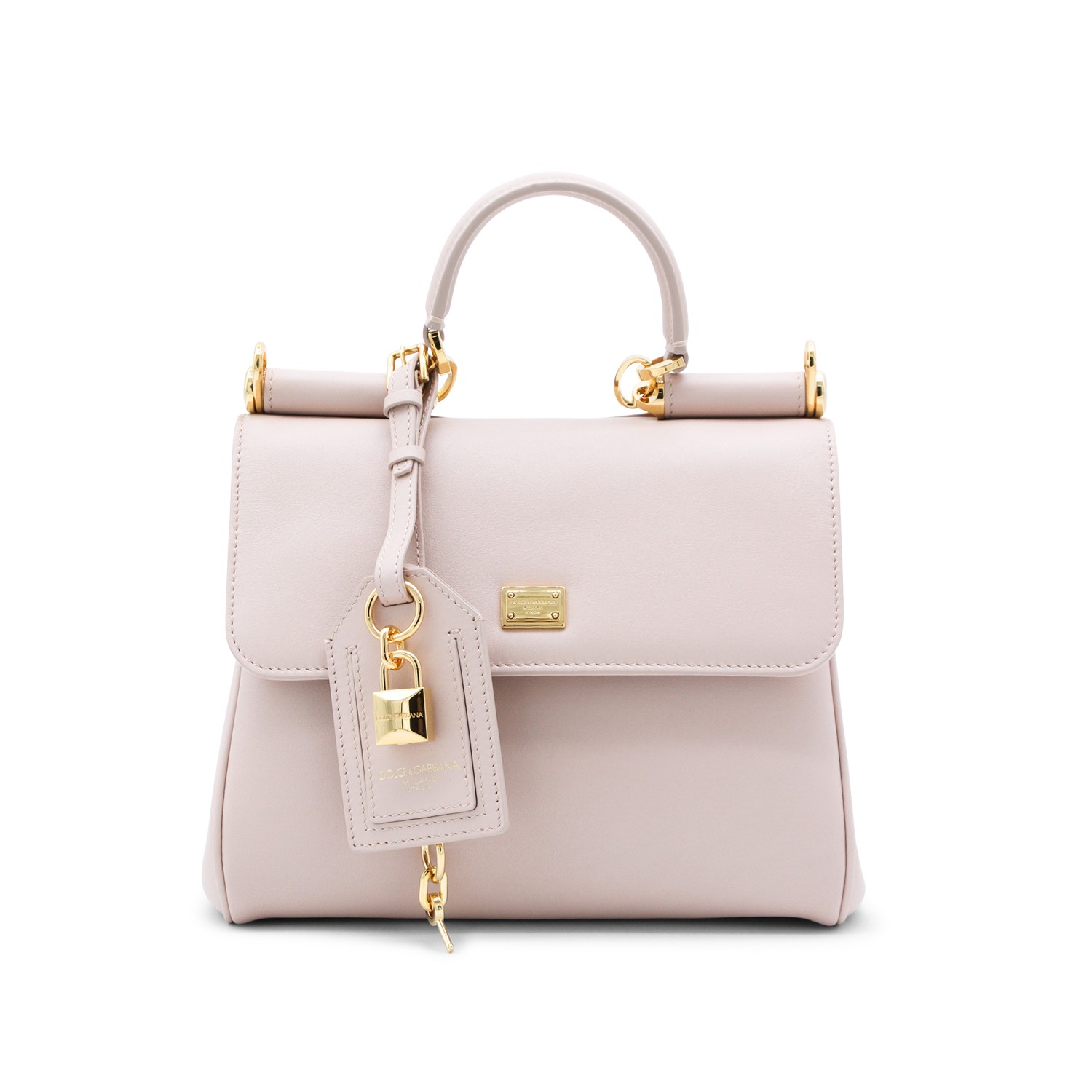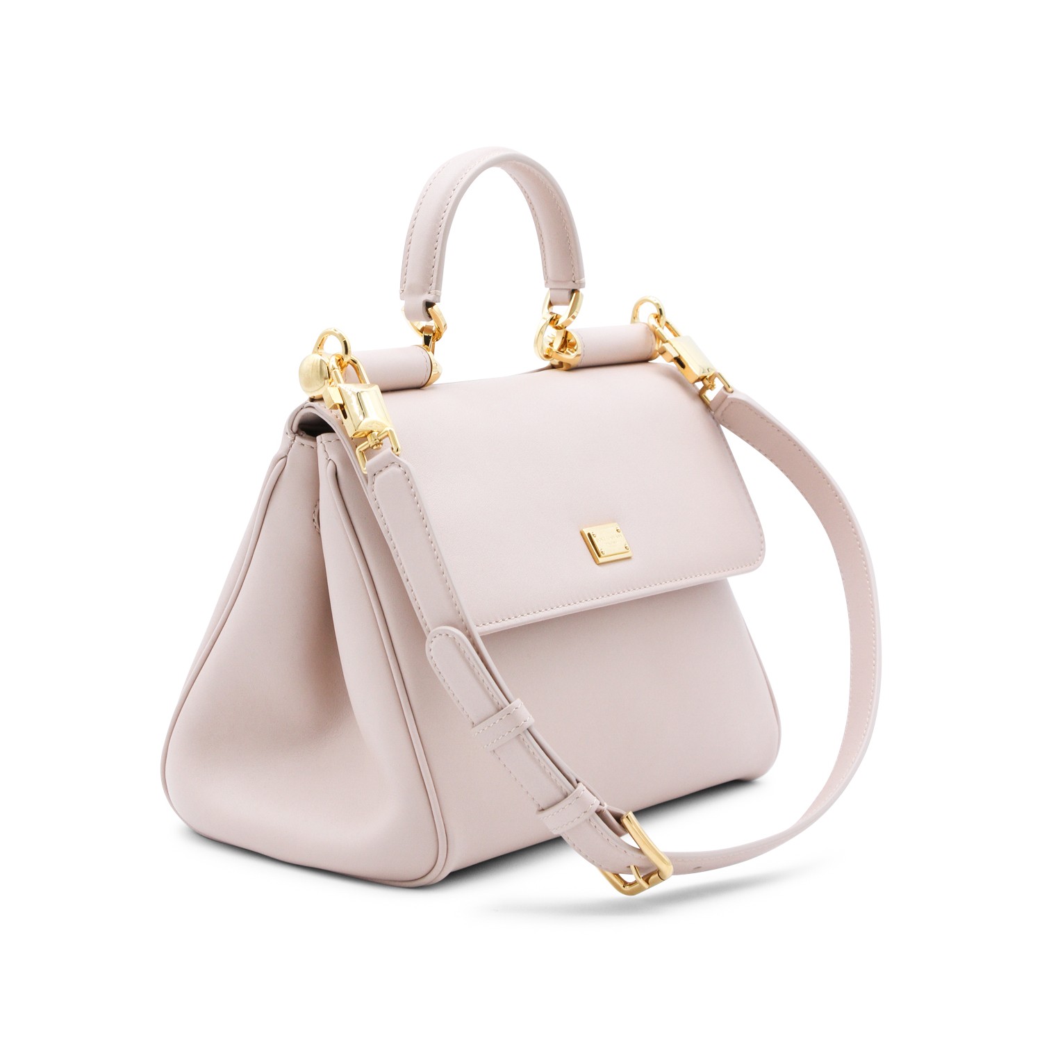 Nude My Sicily top handle bag from Dolce&Gabbana featuring top handle, frontal magnetic fastening, gold tone hardware, adjustable strap and inside pocket.