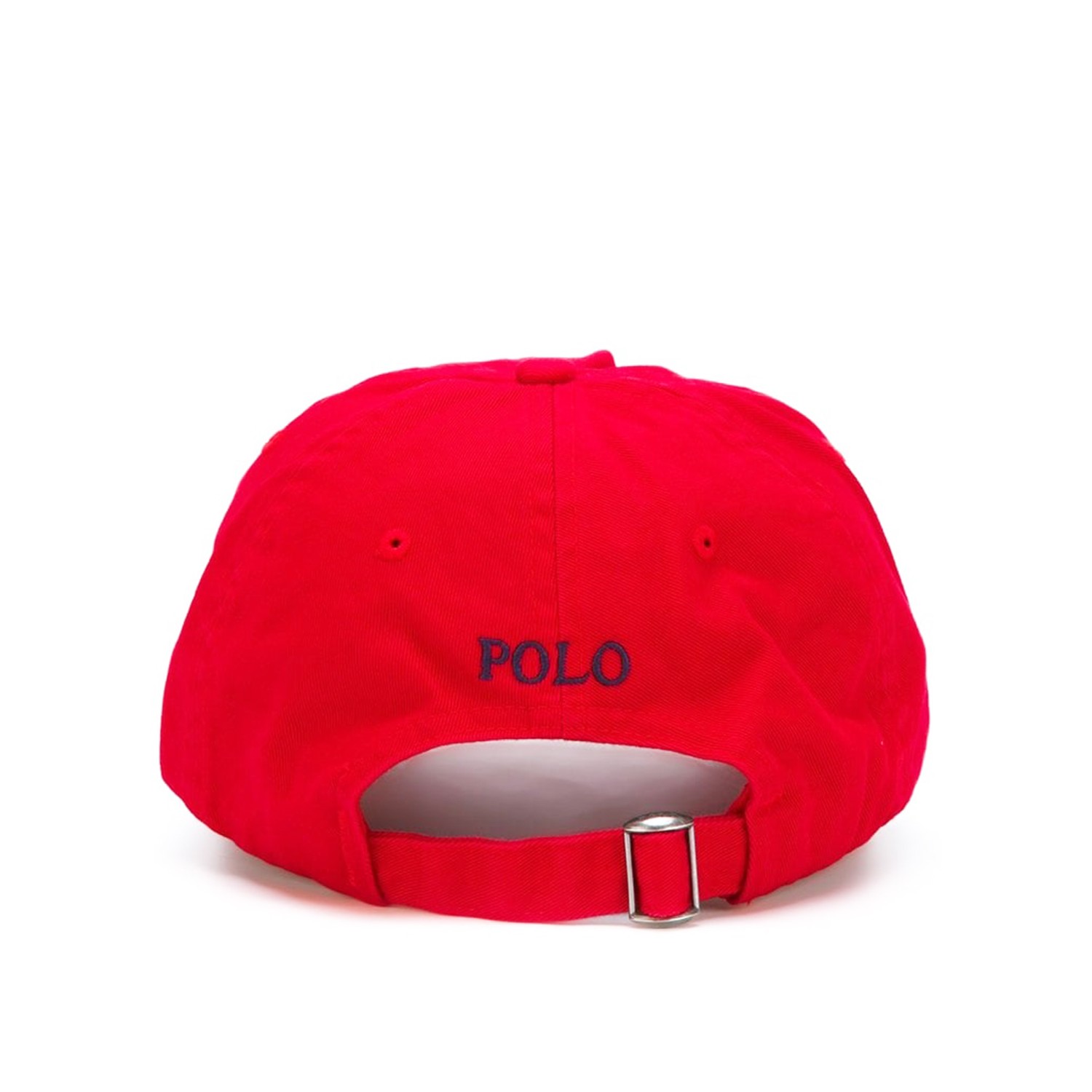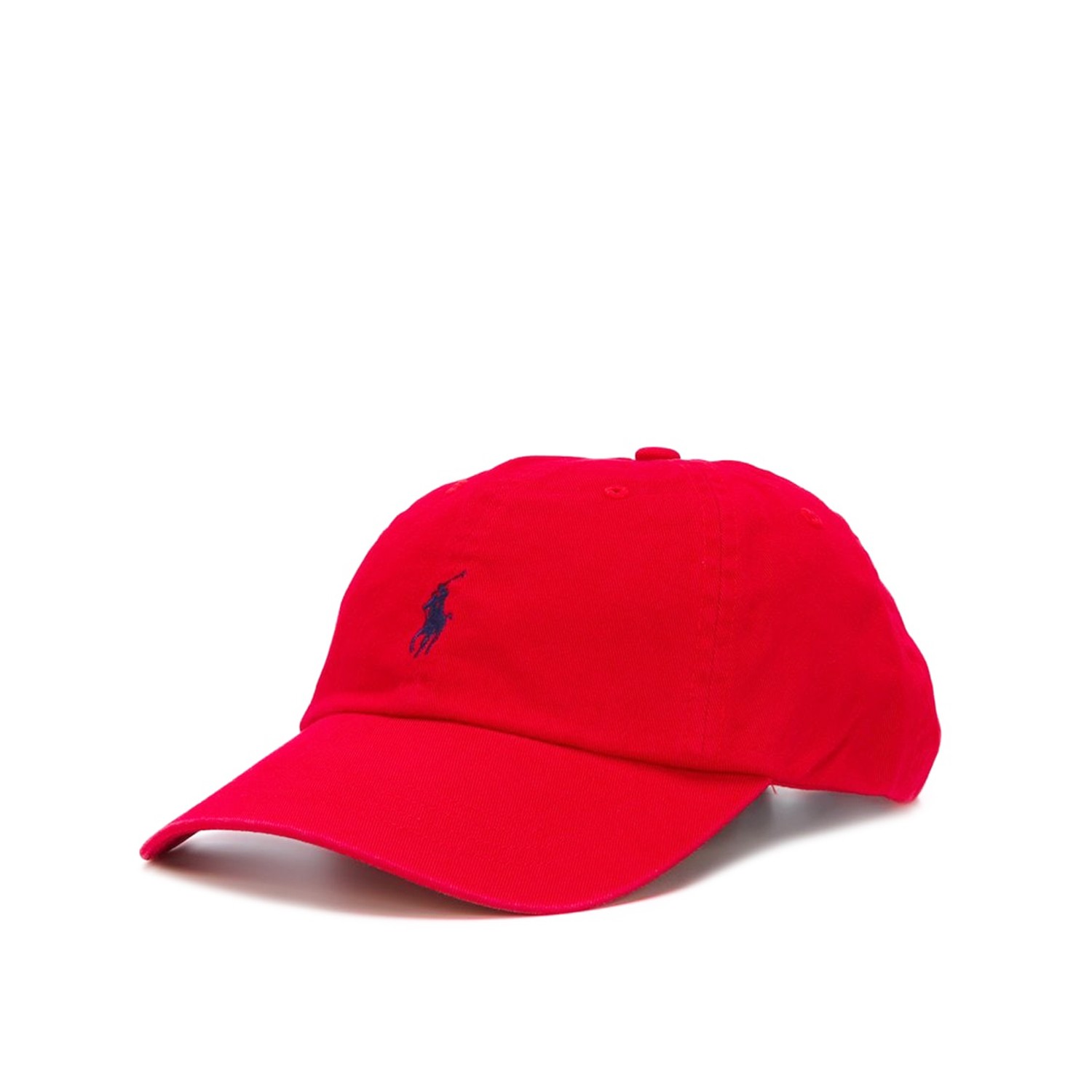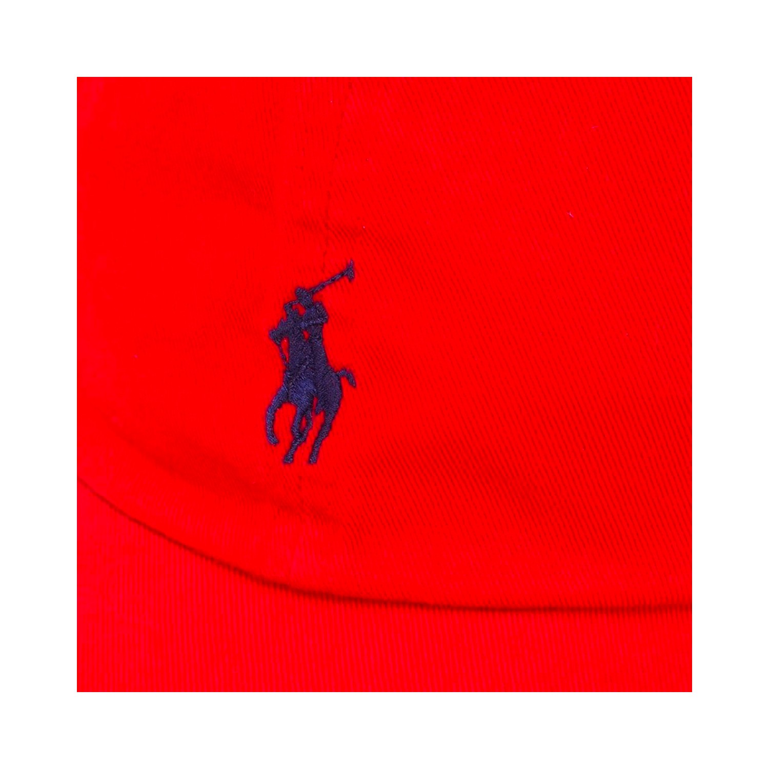 Red cotton baseball cap from Polo Ralph Lauren featuring curved peak, logo and adjustable size.