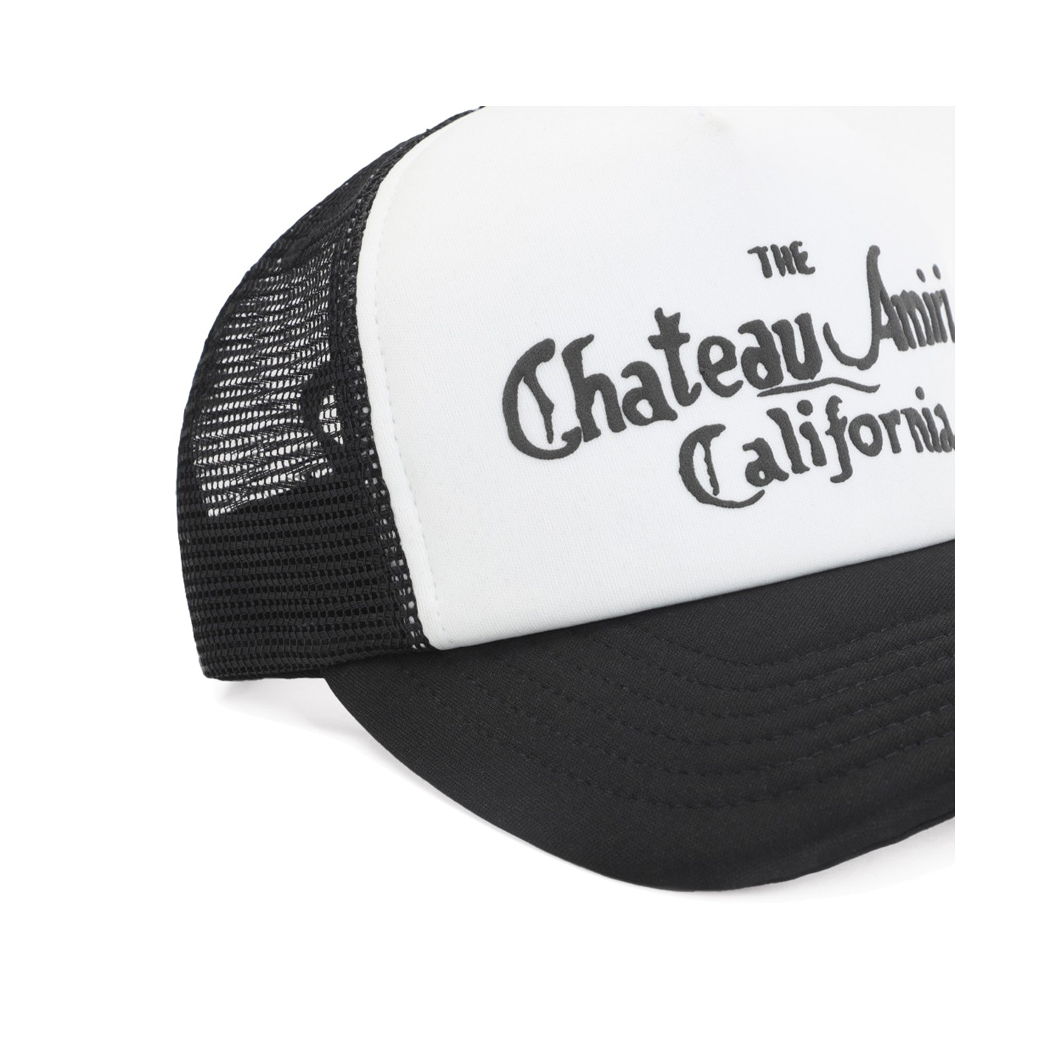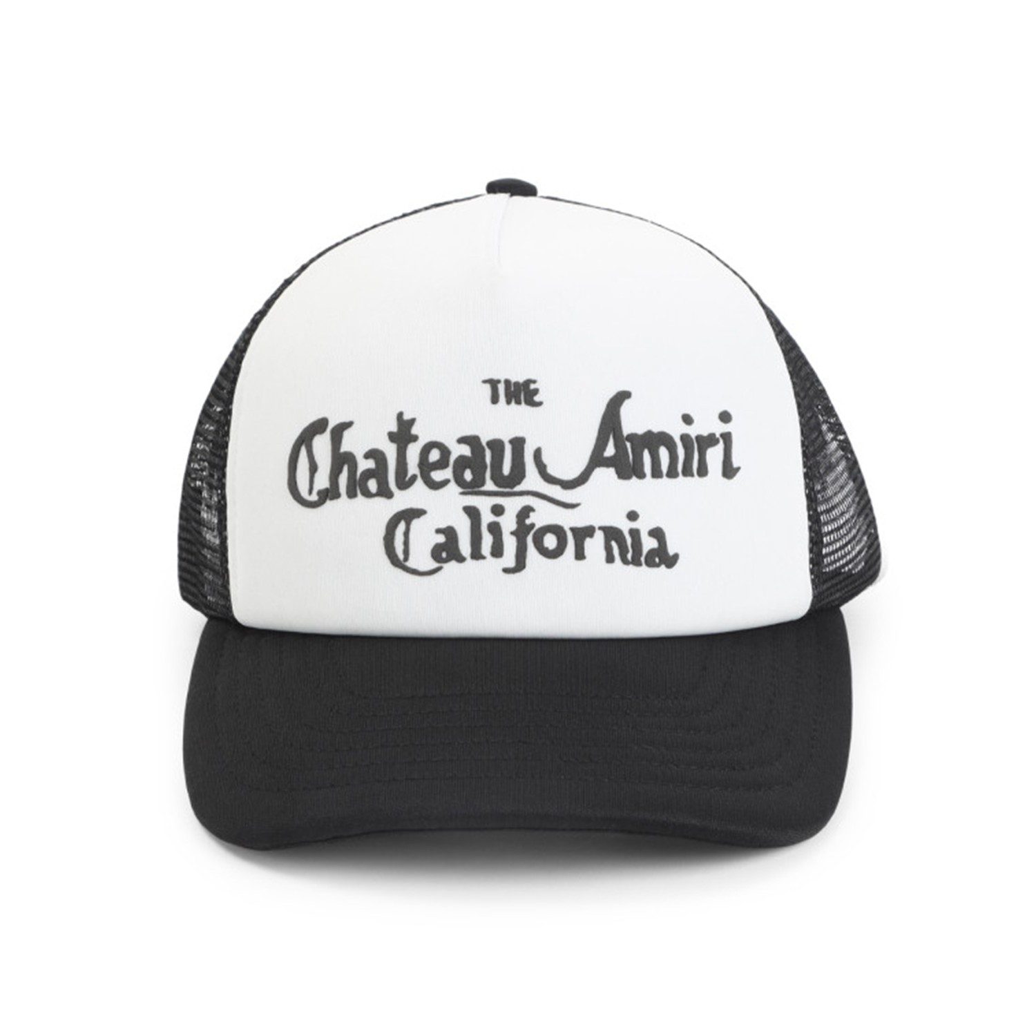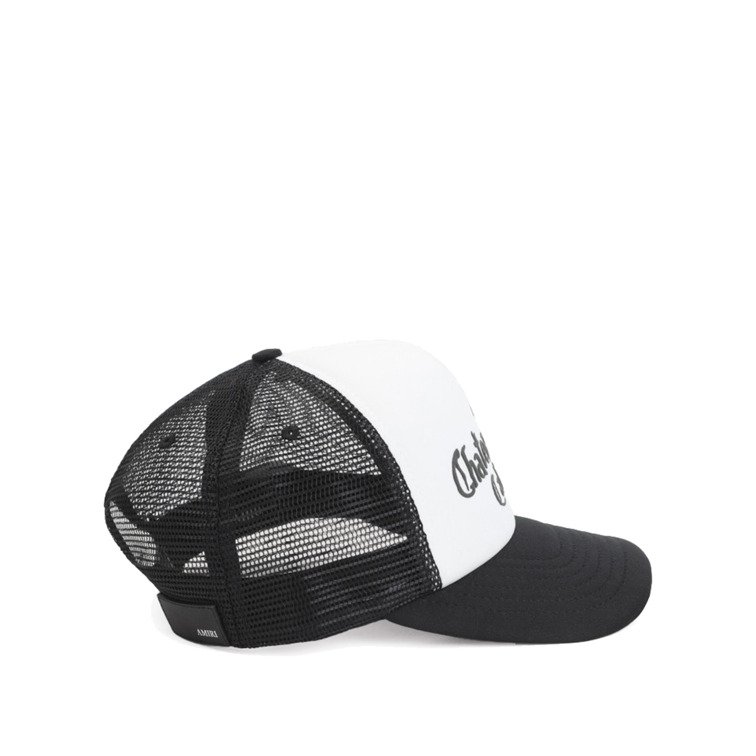 Black and white cotton baseball cap from Amiri featuring curved peak, mesh detail on the side and adjustable size.