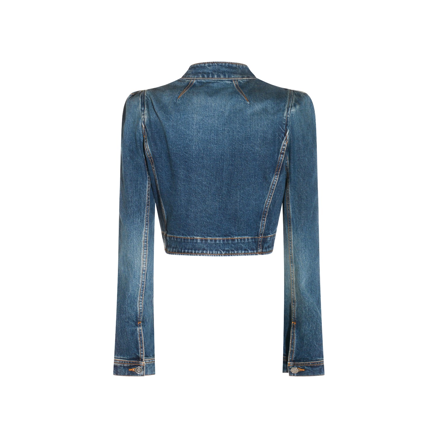 Blue cotton denim jacket from Alaia featuring long sleeves, buttons fastening and cropped.