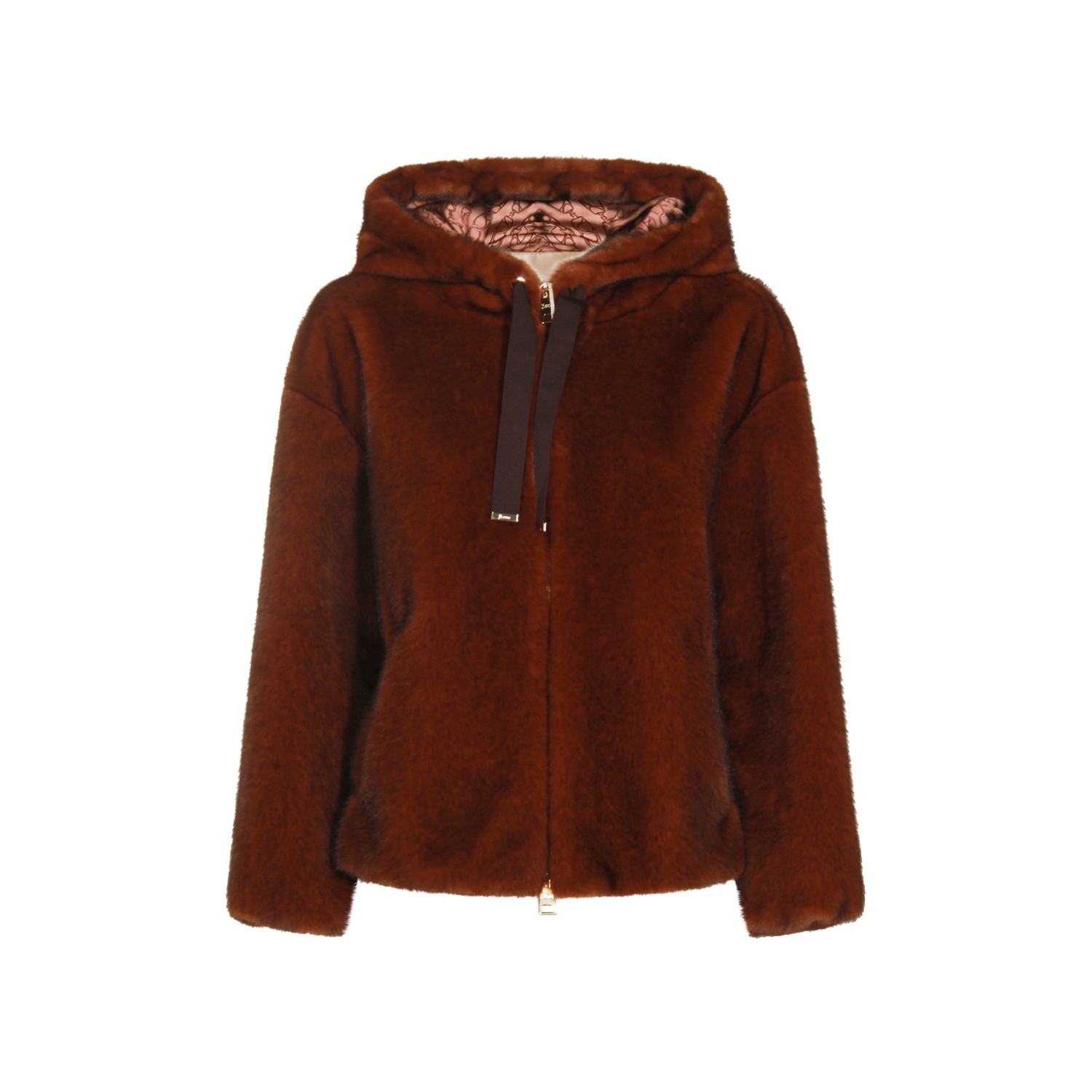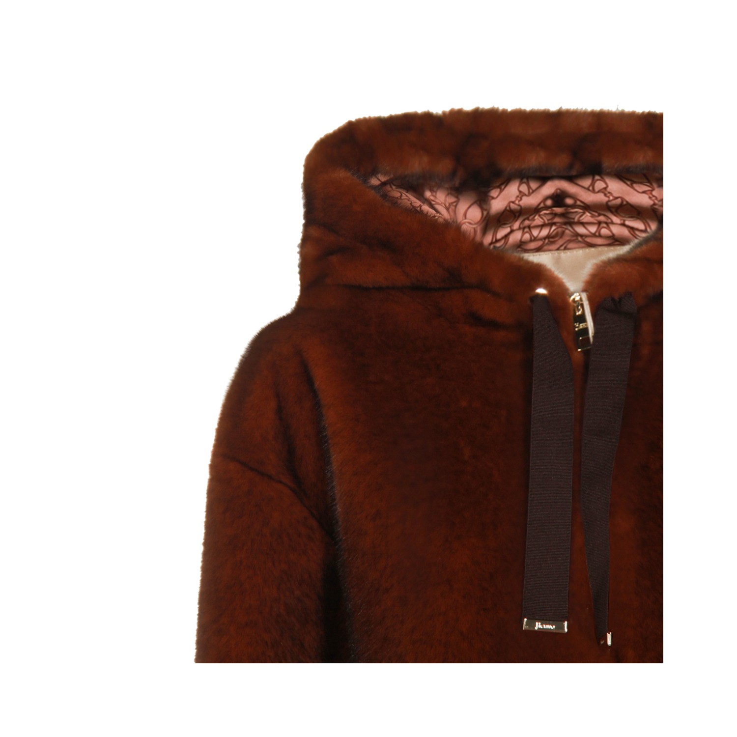 Dark brown casual jacket from Herno featuring hood with drawstring, long sleeves, zip fastening and regular vestibility.