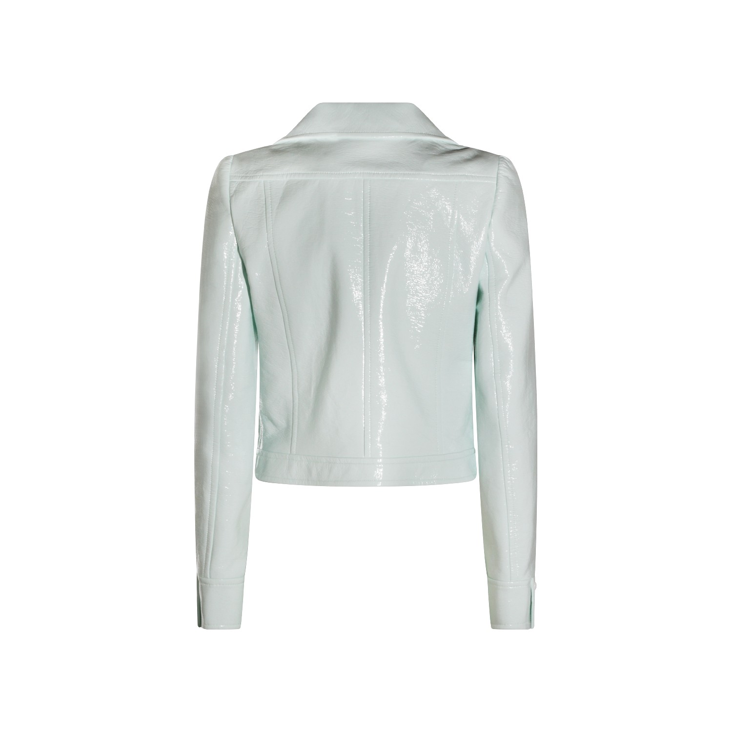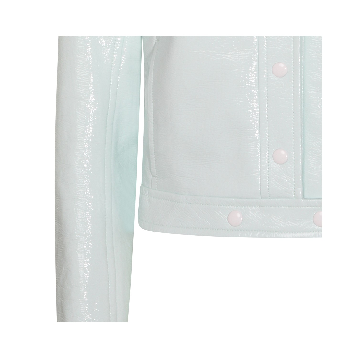 Light mint casual jacket from Courreges featuring long sleeves, buttons fastening, silver tone hardware, logo and regular vestibility.