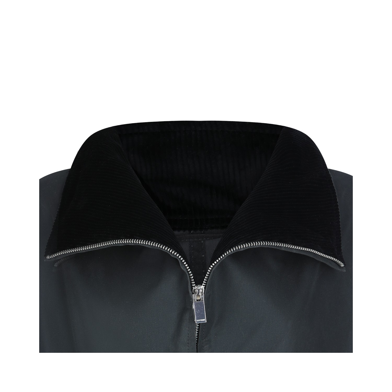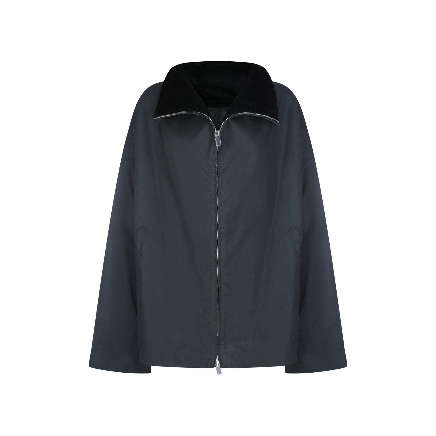 Black cotton casual jacket from Toteme featuring contrasting collar, zip fastening, long sleeves, pockets and loose vestibility.