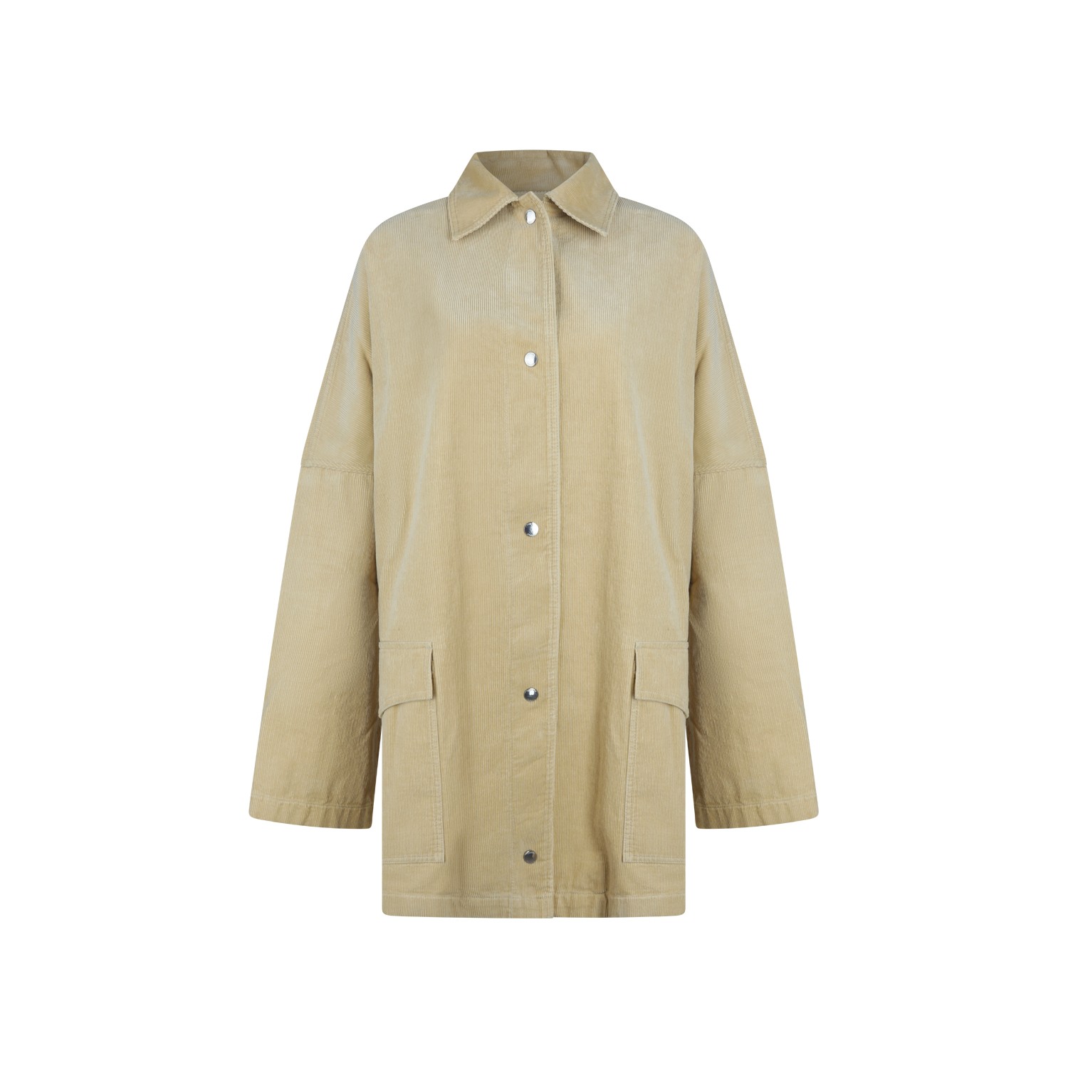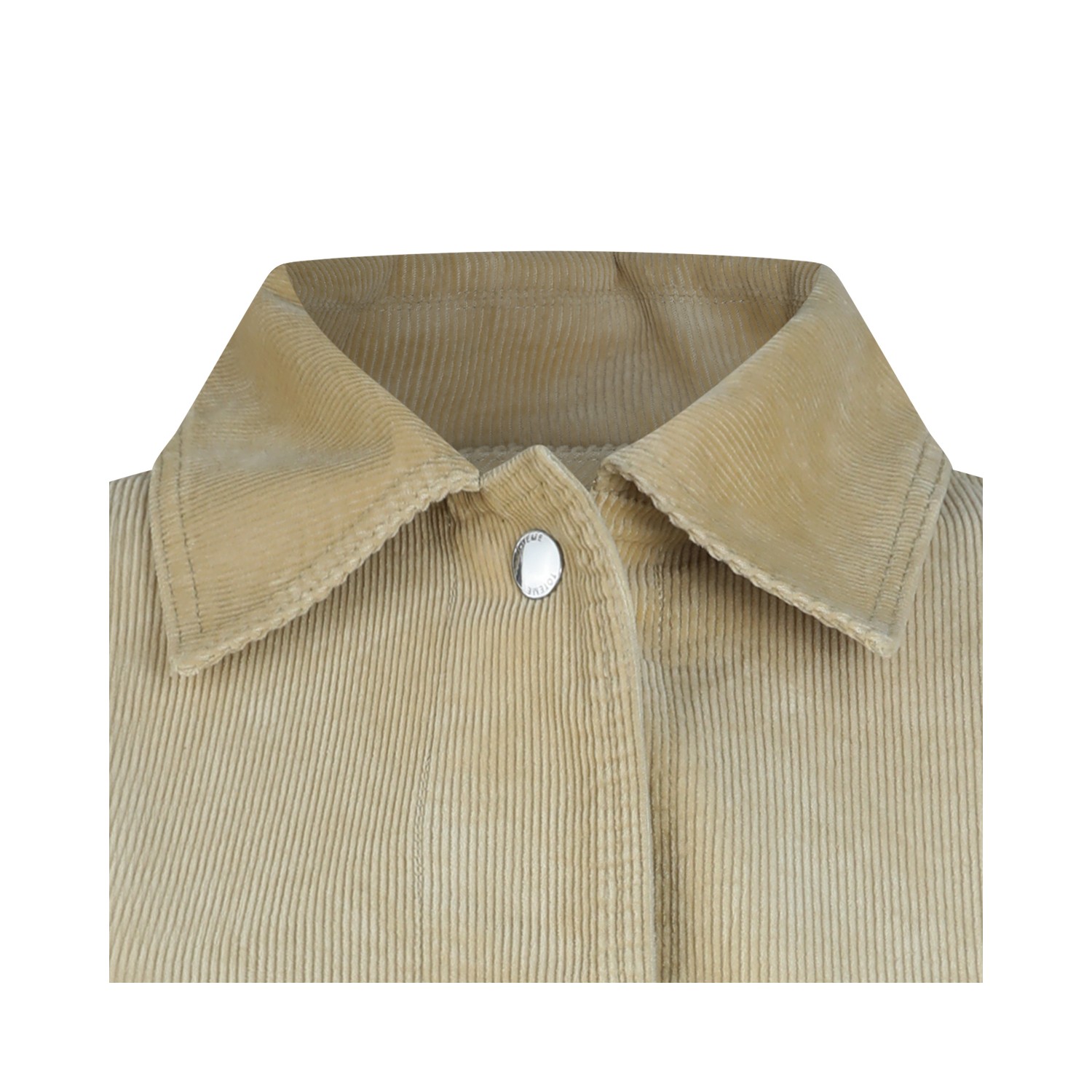Beige cotton casual jacket from Toteme featuring shirt colalr, buttons fastening, long sleeves, pockets and mid length.