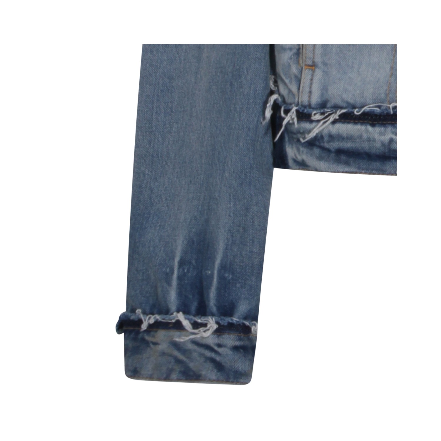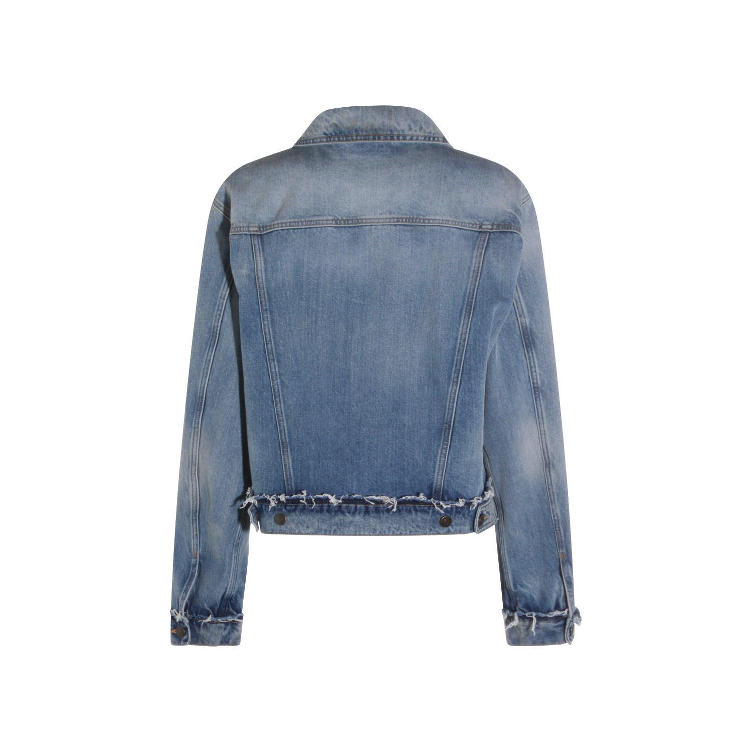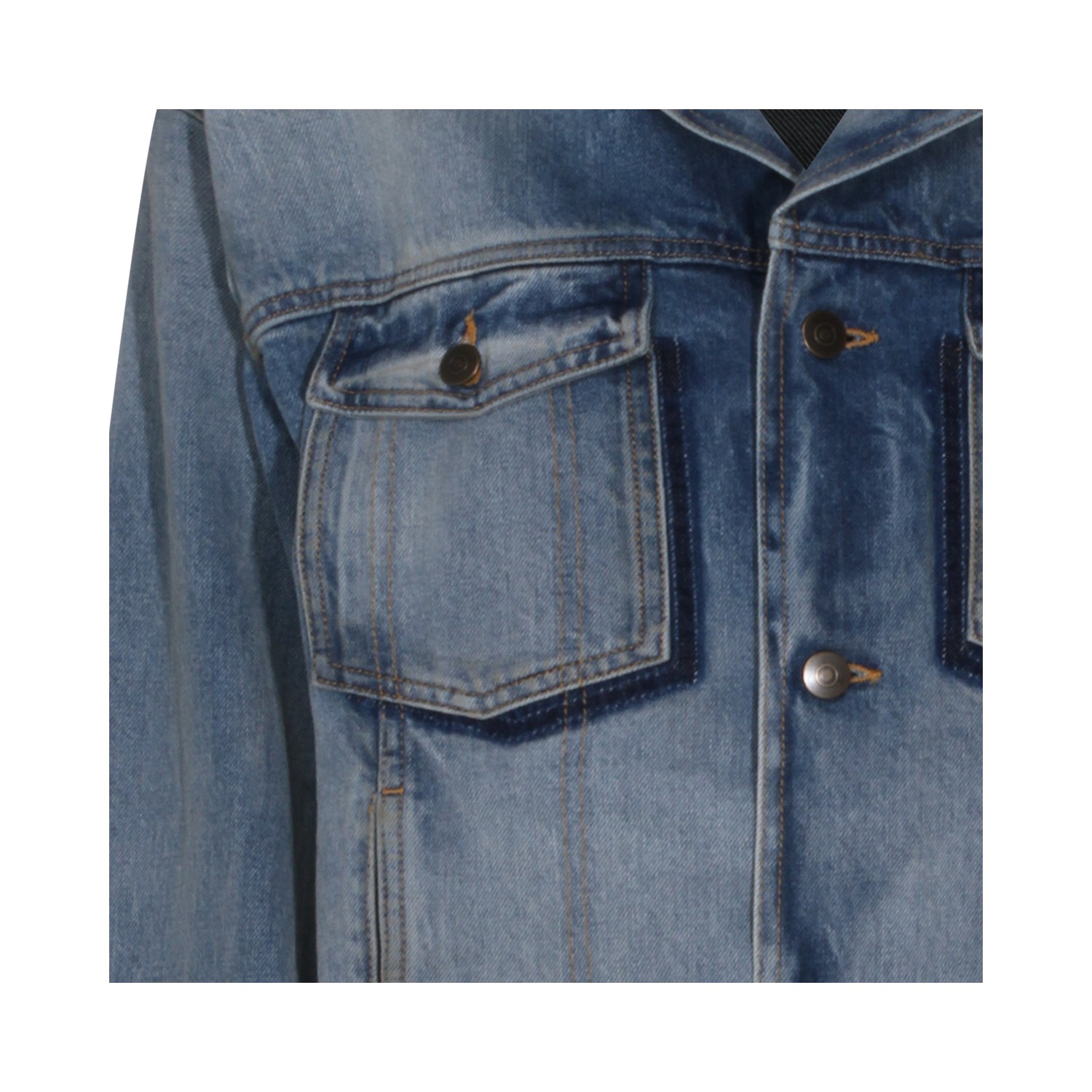 Light blue cotton denim jacket from Maison Margiela featuring regular neck, long sleeves, buttons fastening, chest pockets and regular vestibility.