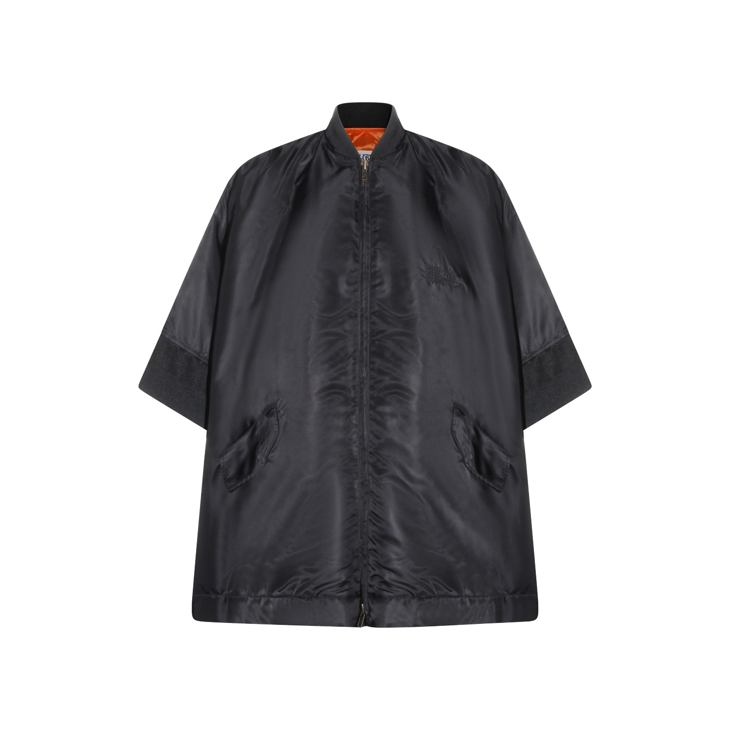 Black casual jacket from MM6 Maison Margiela featuring frontal zip fastening, pockets, wide sleeves and pockets.