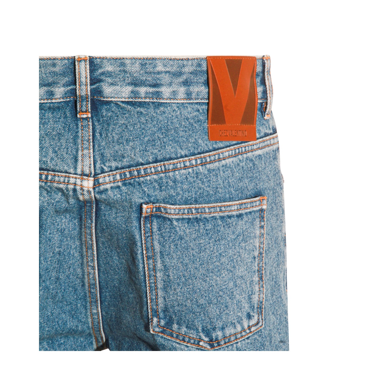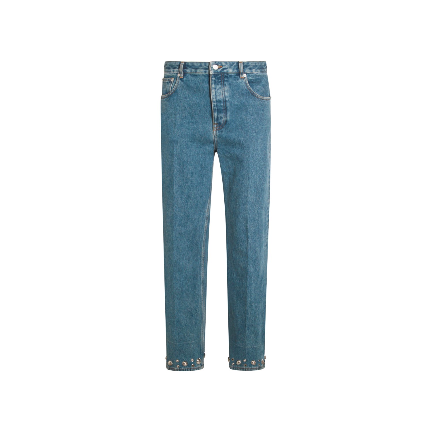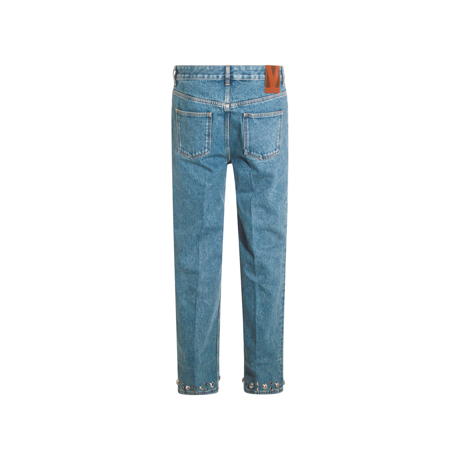 Blue cotton jeans from Valentino featuring belt loops, zip and button fastening, pockets, details and straight vestibility.
