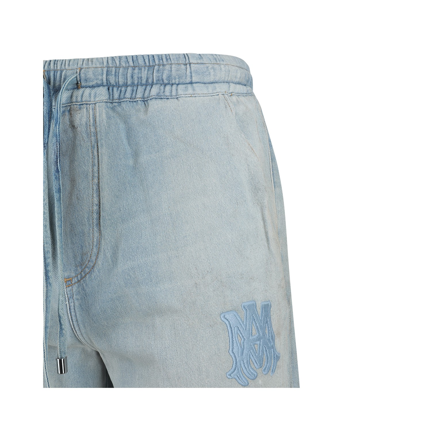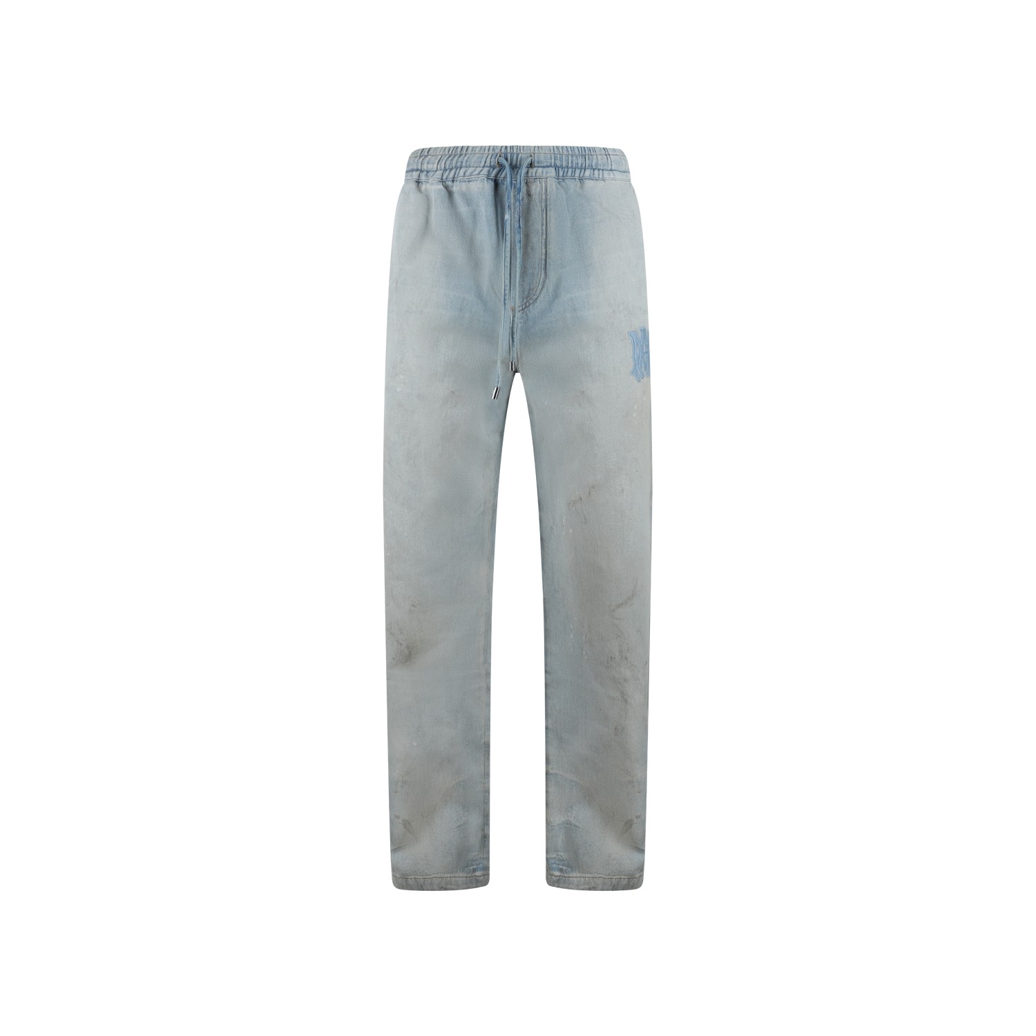 Light blue cotton jeans from Amiri featuring elastic waist, lace fastening, pockets, logo patch and regular vestibility.