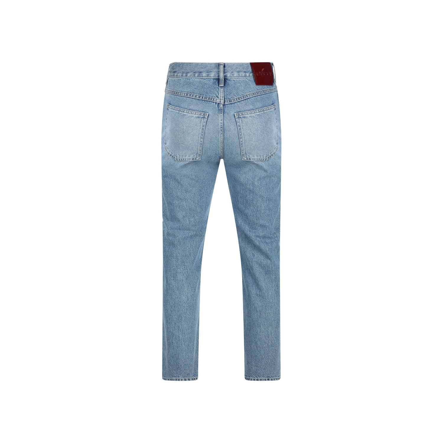 Blue cotton jeans from Gucci featuring high waist, belt loops, zip fastening, pockets and regular vestibility.
