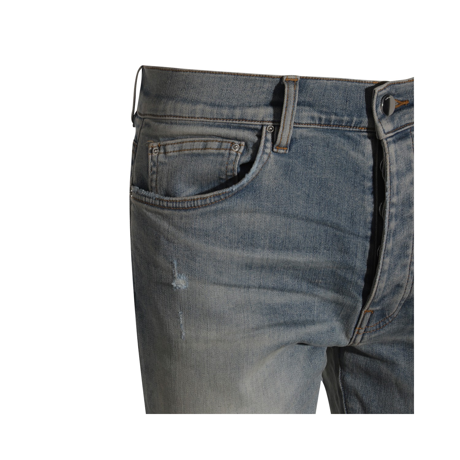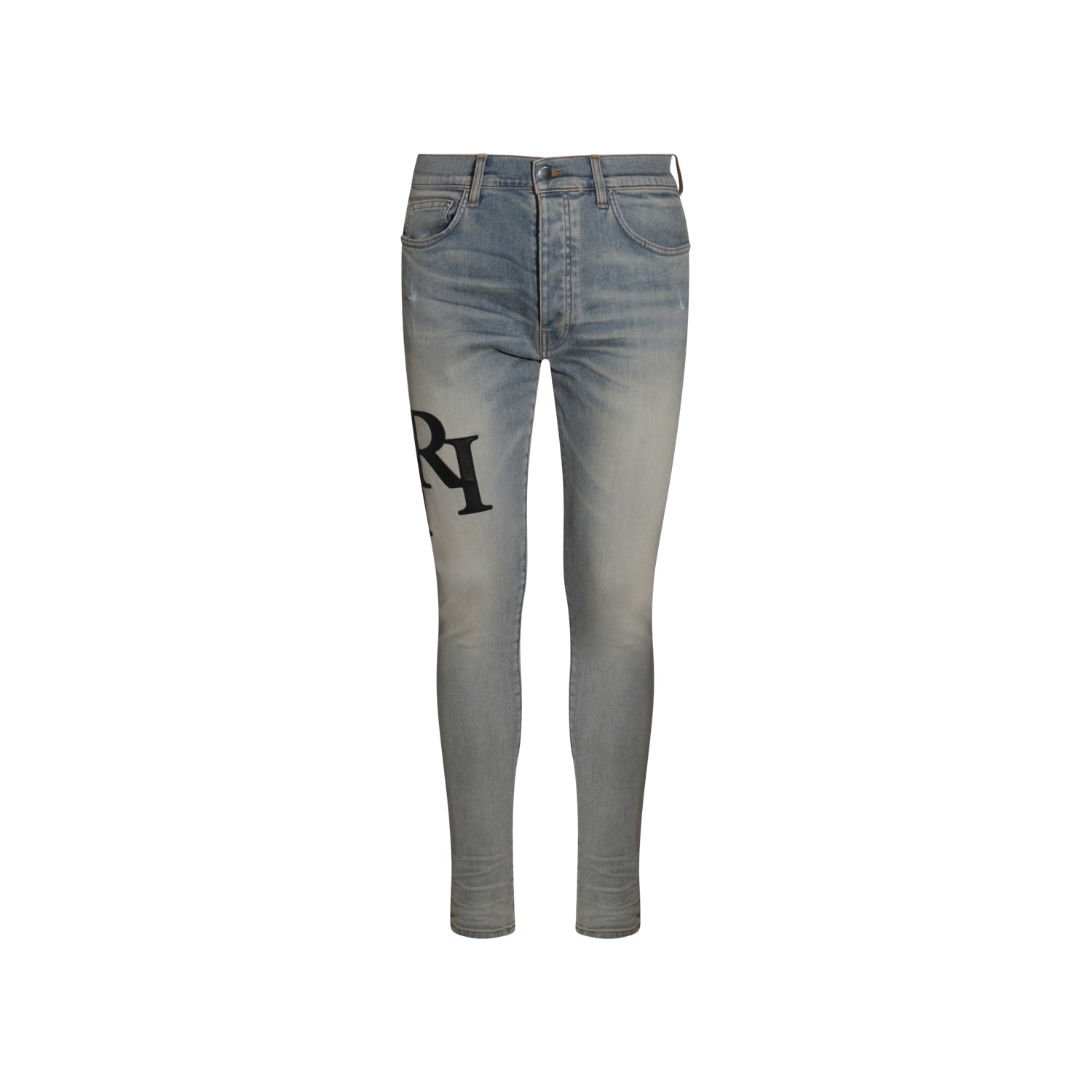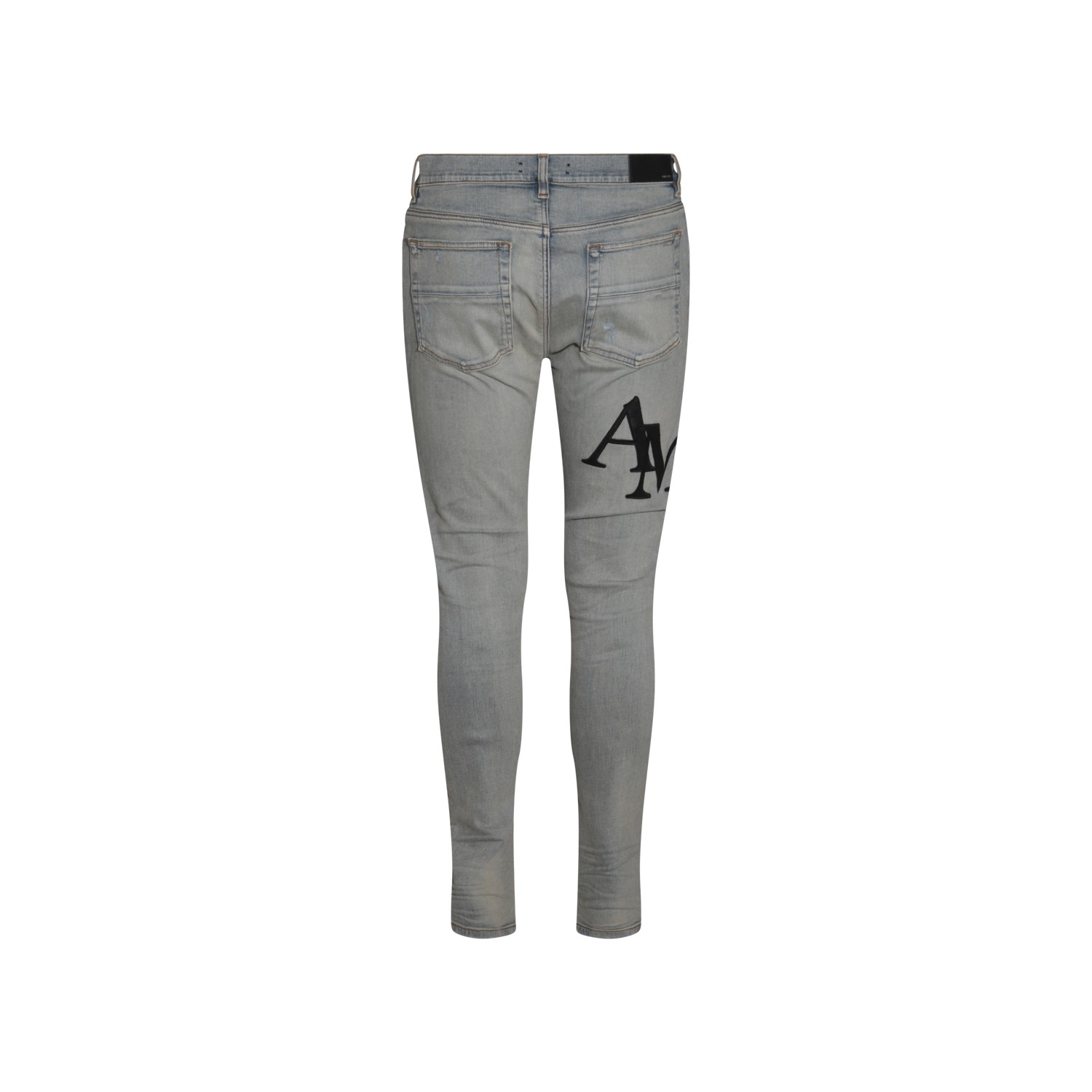 Indigo blue cottom denim jeans from Amiri featuring frontal fastening, belt loops, lateral logo and skinny.