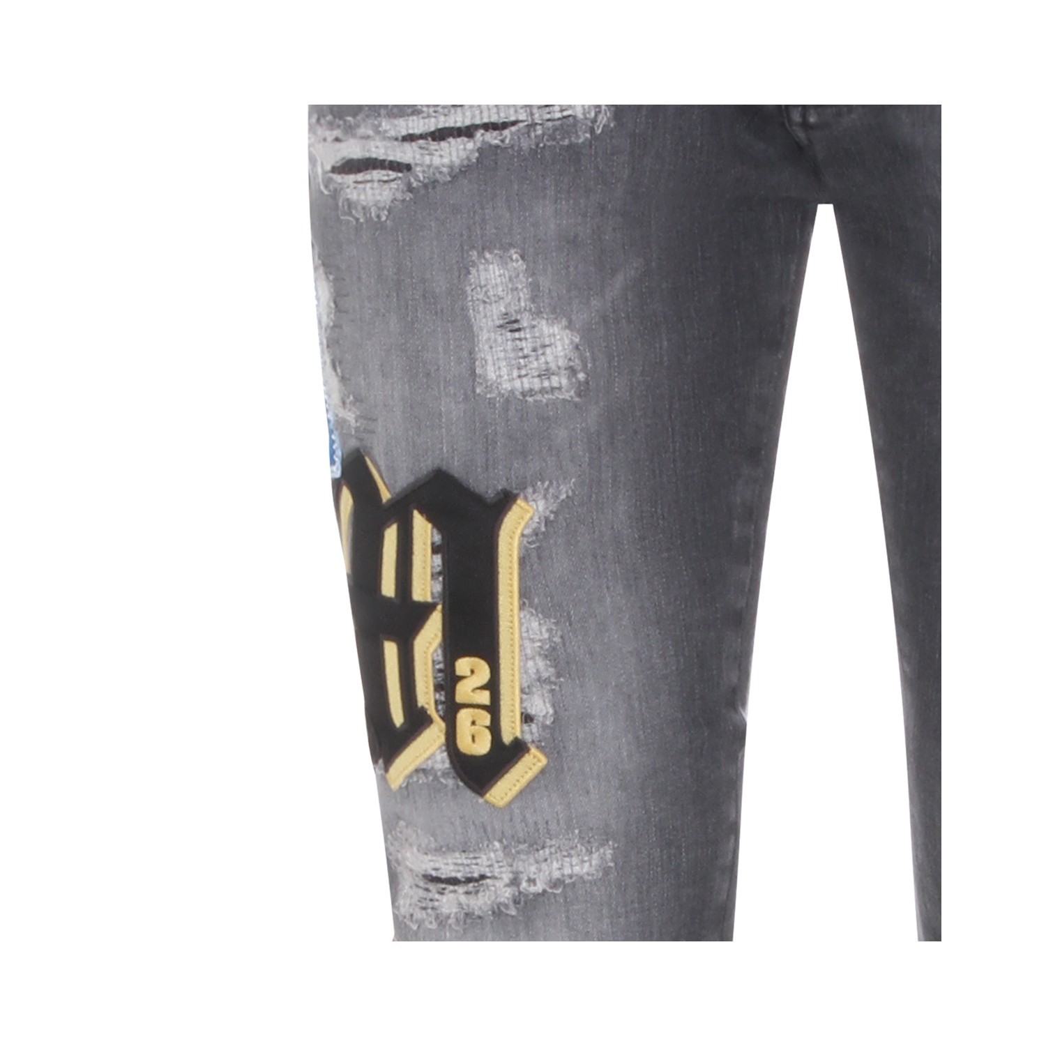 Black cotton denim jeans from Amiri featuring frontal fastening, belt loops, skinny vestibility and details.
