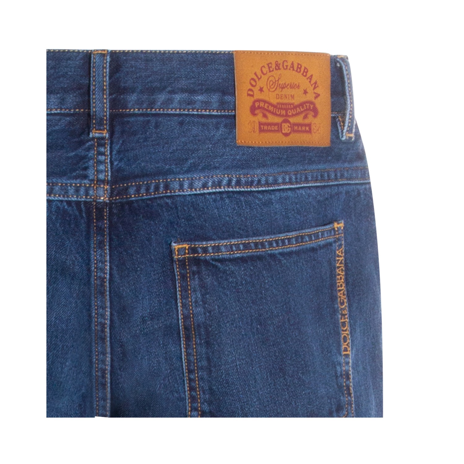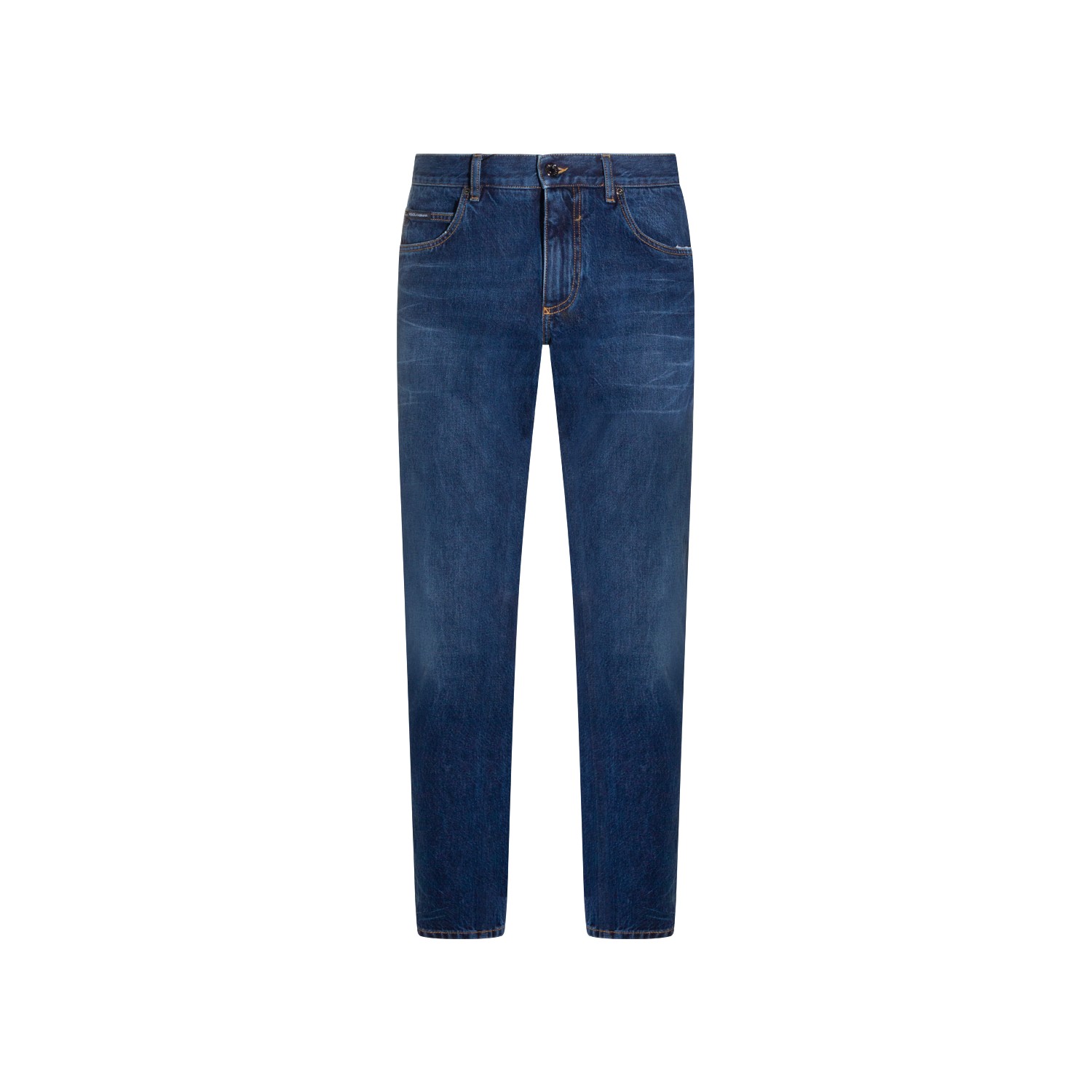 Dark blue cotton jeans from Dolce & Gabbana featuring mid waist, belt loops, button and zip fastening, five-pockets, embroider logo, straight leg and regular vestibility.