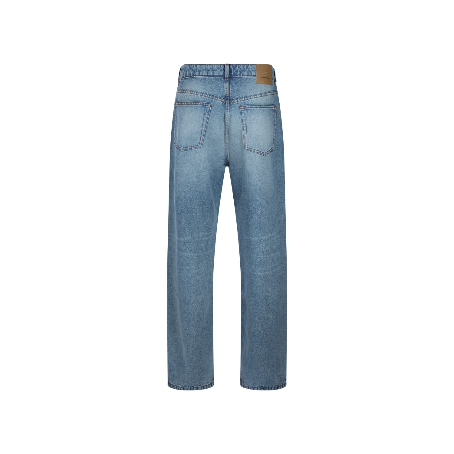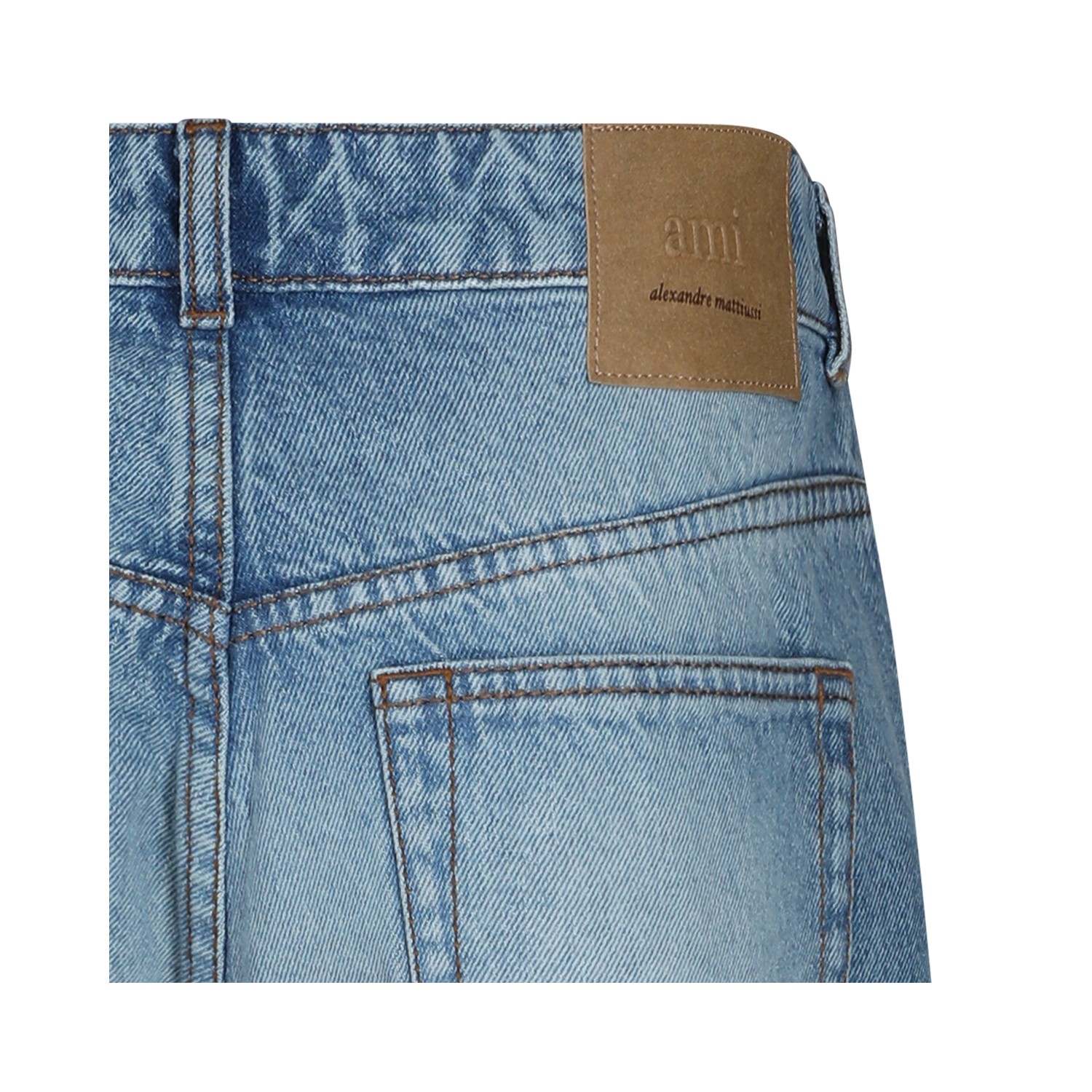 Blue cotton jeans from Ami Paris featuring high waist, belt loops, zip and button fastening, washed effect, pockets and regular fit.