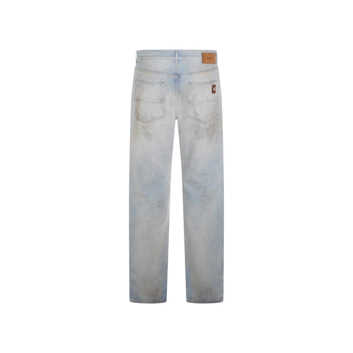 Light blue cotton jeans from Amiri featuring belt loops, zip and button fastening, pockets, worn effect and regular vestibility.