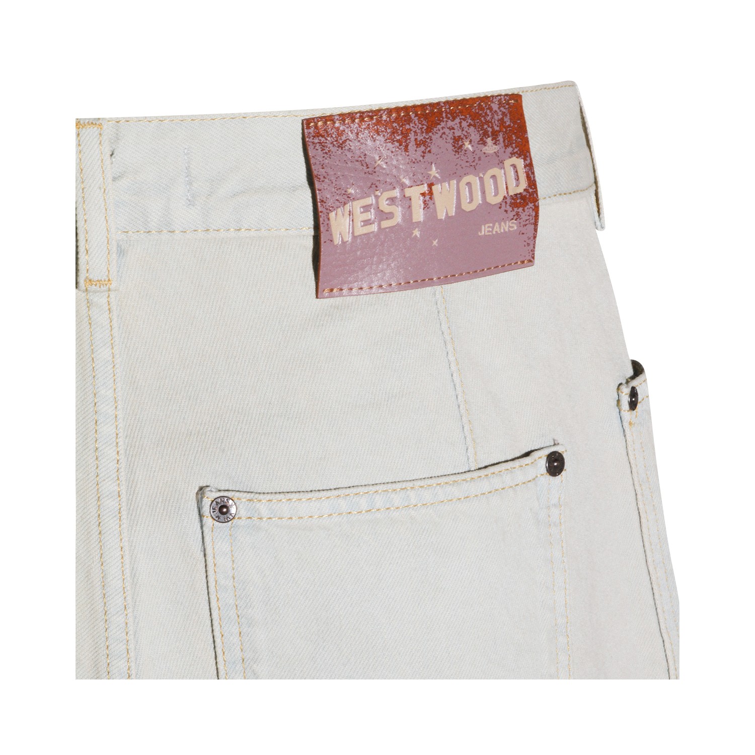 Light blue cotton jeans from Vivienne Westwood featuring frontal fastening, belt loops, pockets, logo patch and regular vestibility.