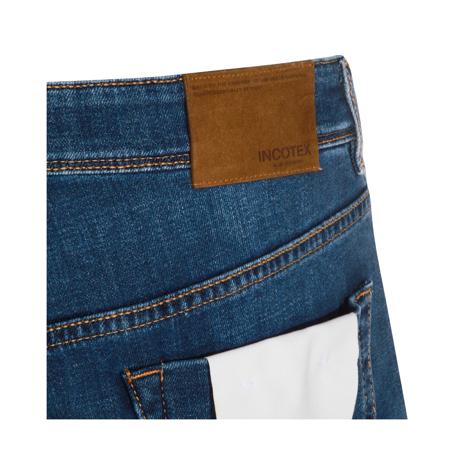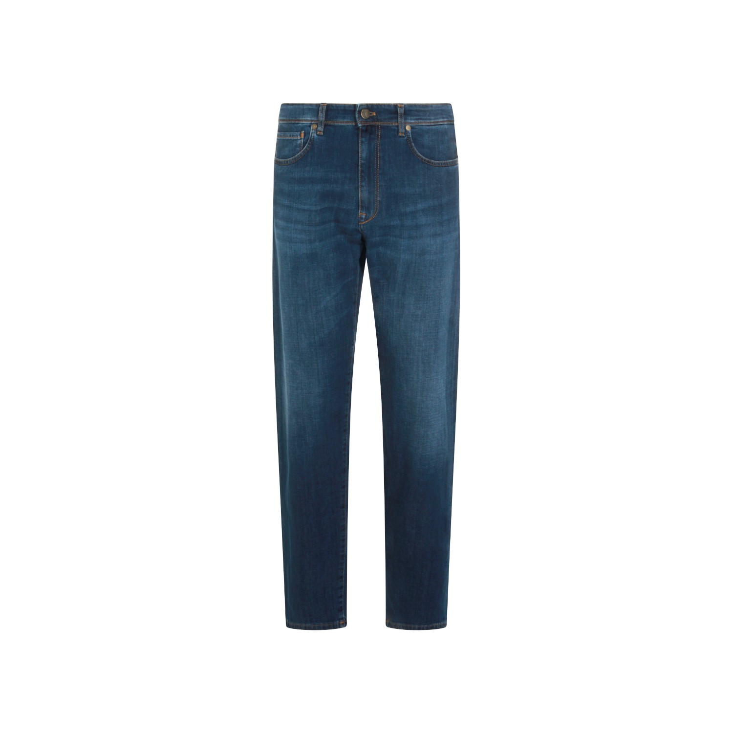 Mid blue cotton jeans from Incotex Blue Division featuring belt loops, zip and button fastening, classic five pockets and regular fit.