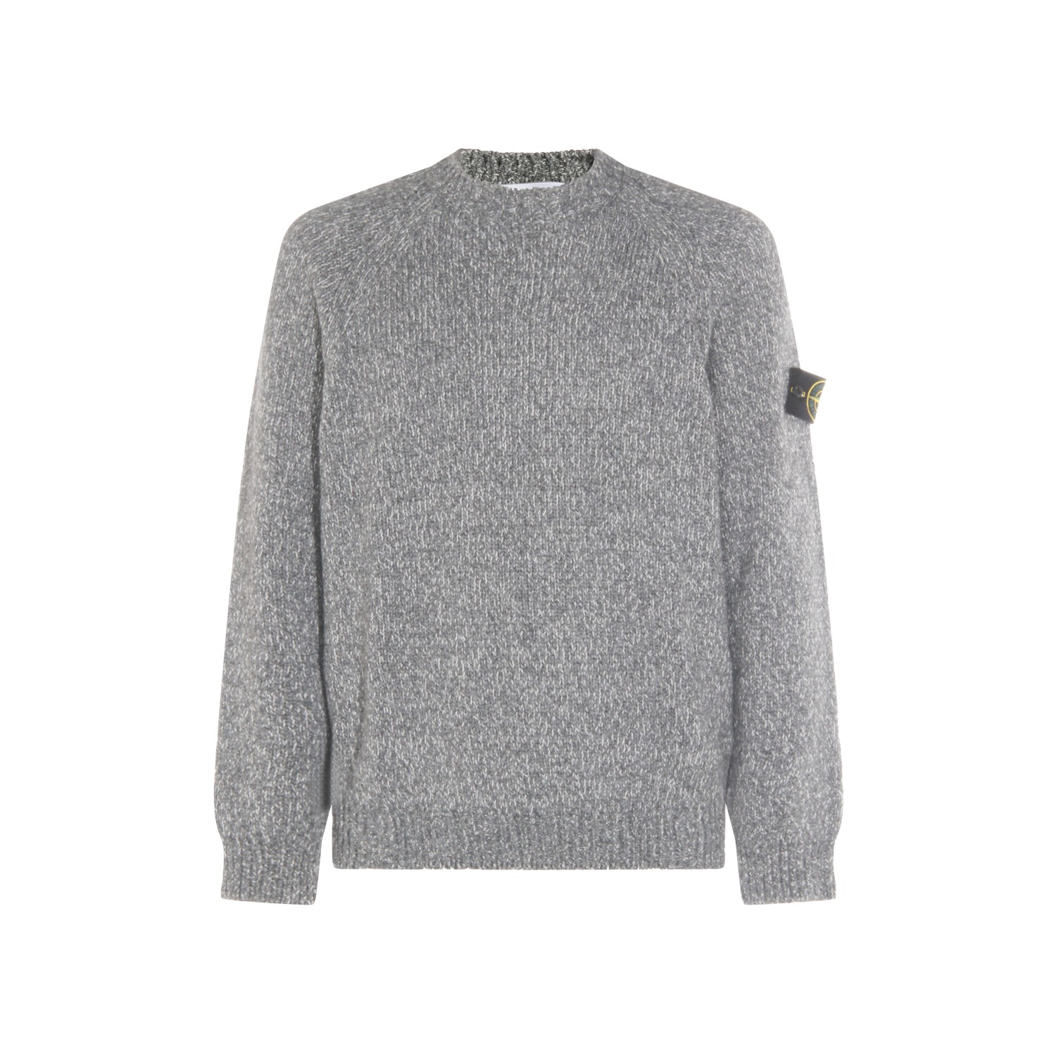Grey wool knitwear from crew neckline, long sleeves, logo patch at hte sleeves and regular vestibility.