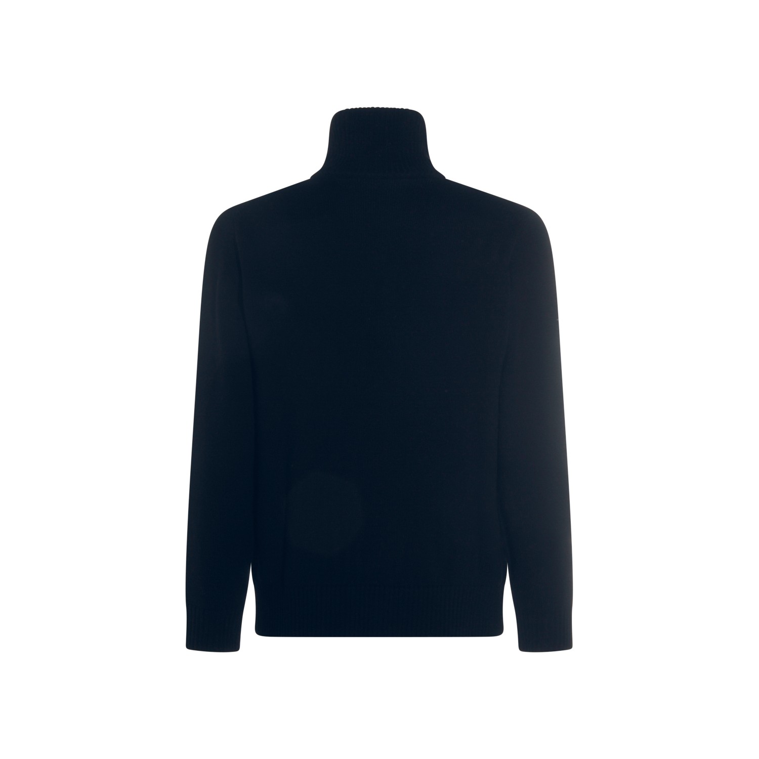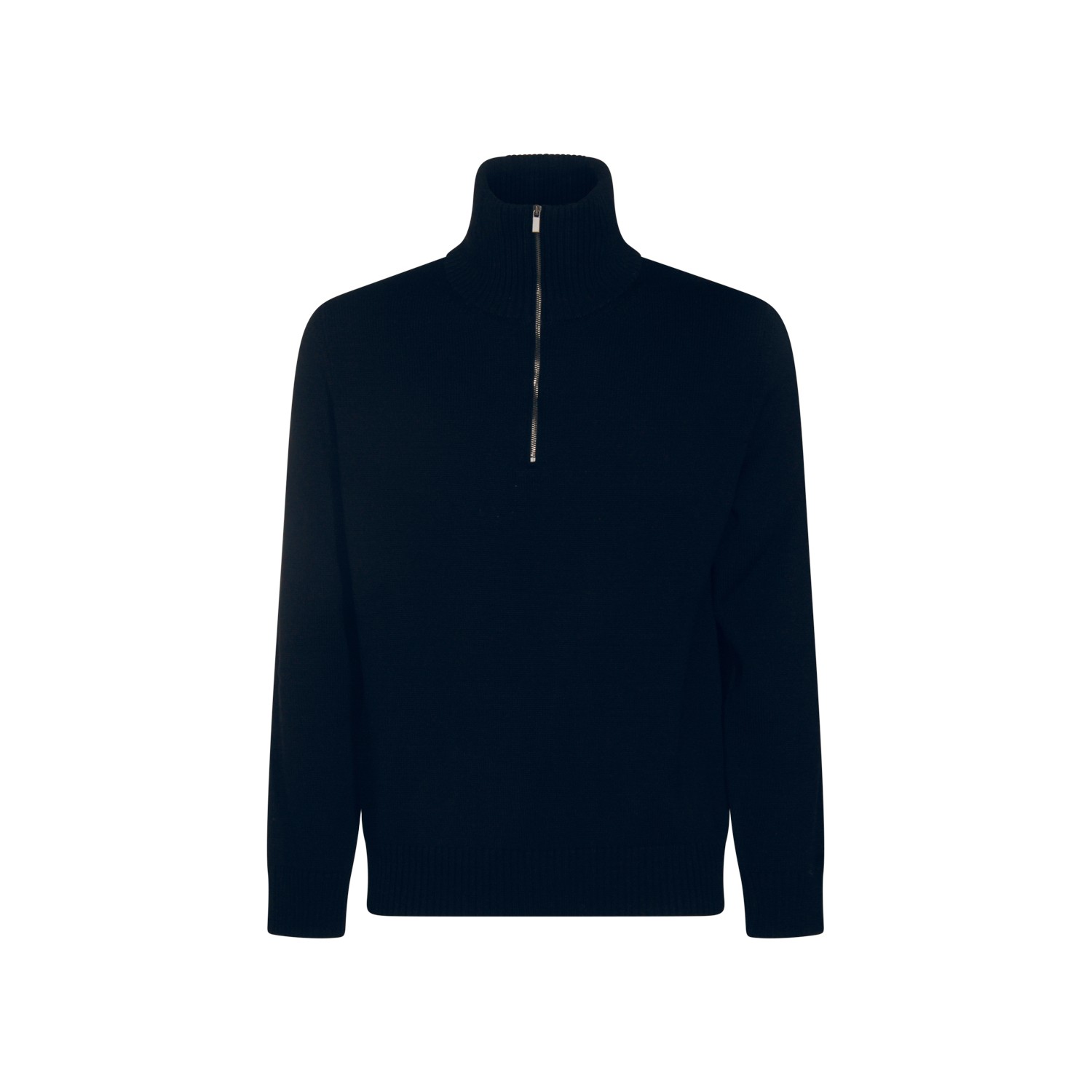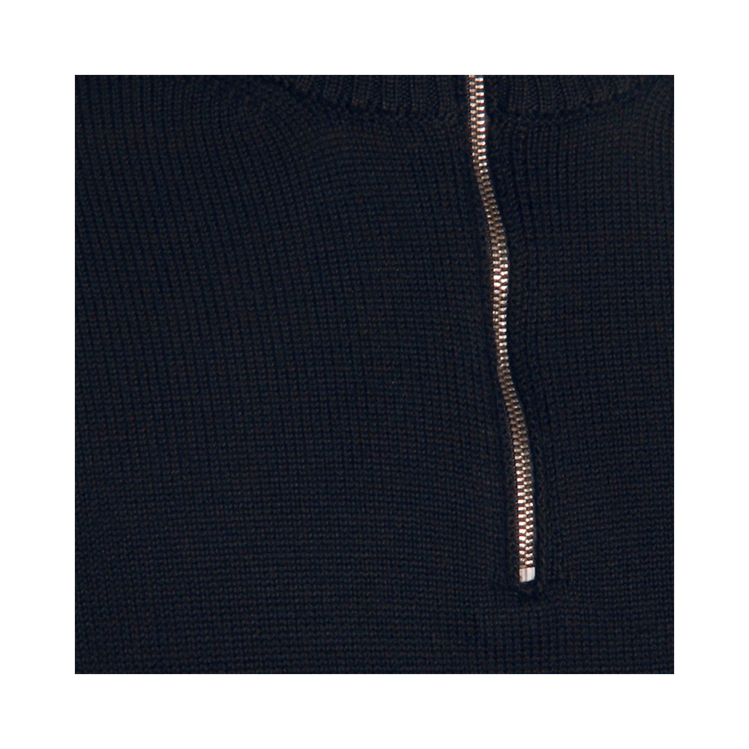 Navy wool knitwear from Altea featuring high zipped collar, long sleeves and regular vestibility.