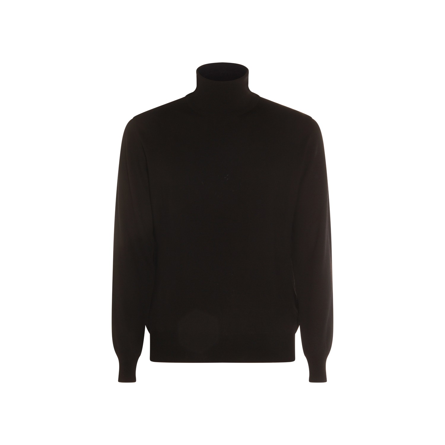 Black wool knitwear from Altea featuring high collar, long sleeves, ribbed cuffs and hem and regular vestibility.