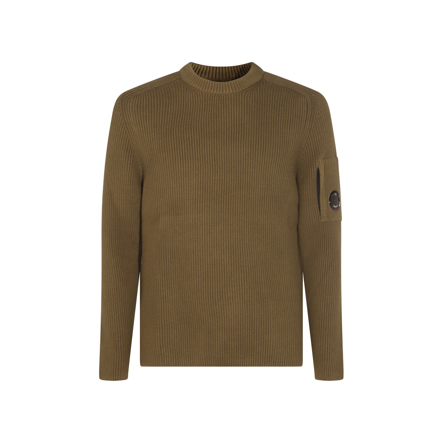 Green cotton knitwear from CP Company featuring crew neckline, long sleeves, logo and regular vestibility.