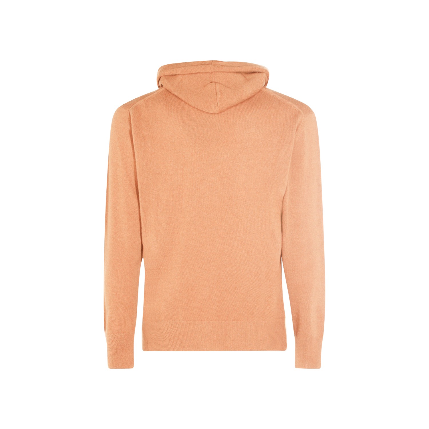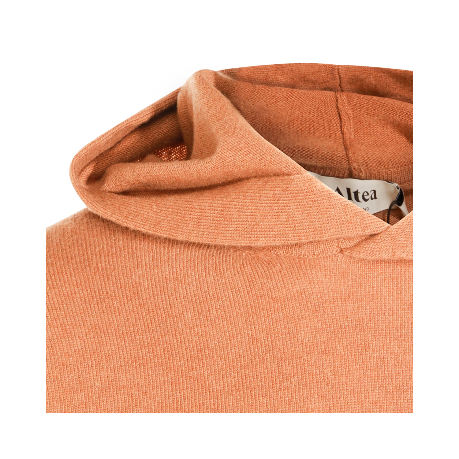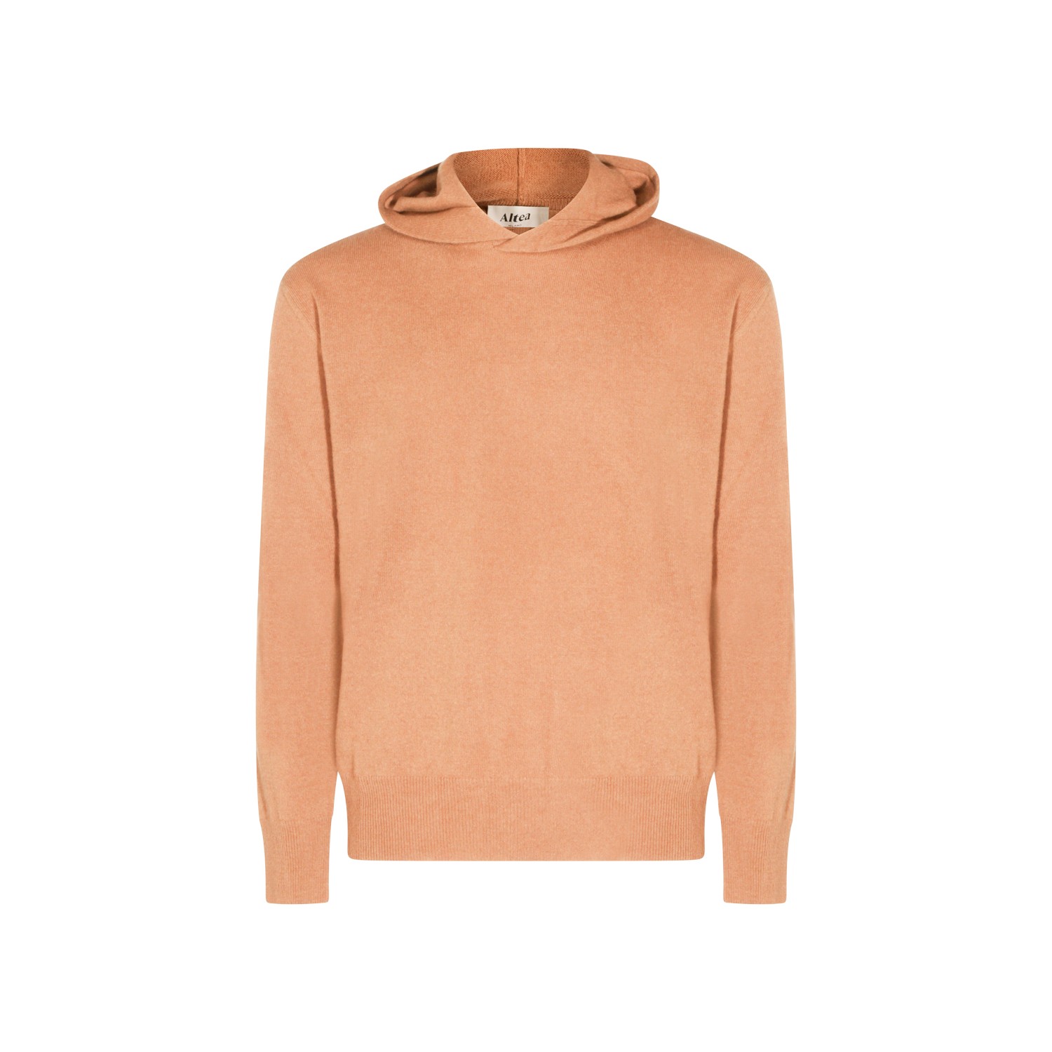 Camel knitwear from Altea featuring long sleeves, hood, ribbed cuffs and hem and soft vestibility.