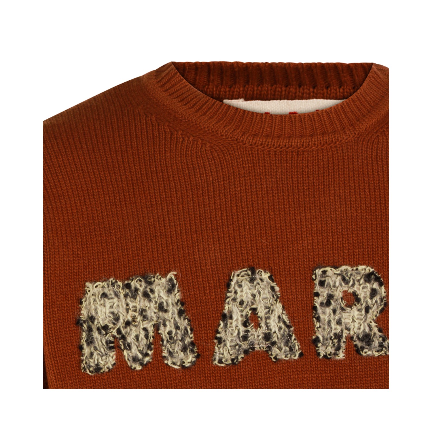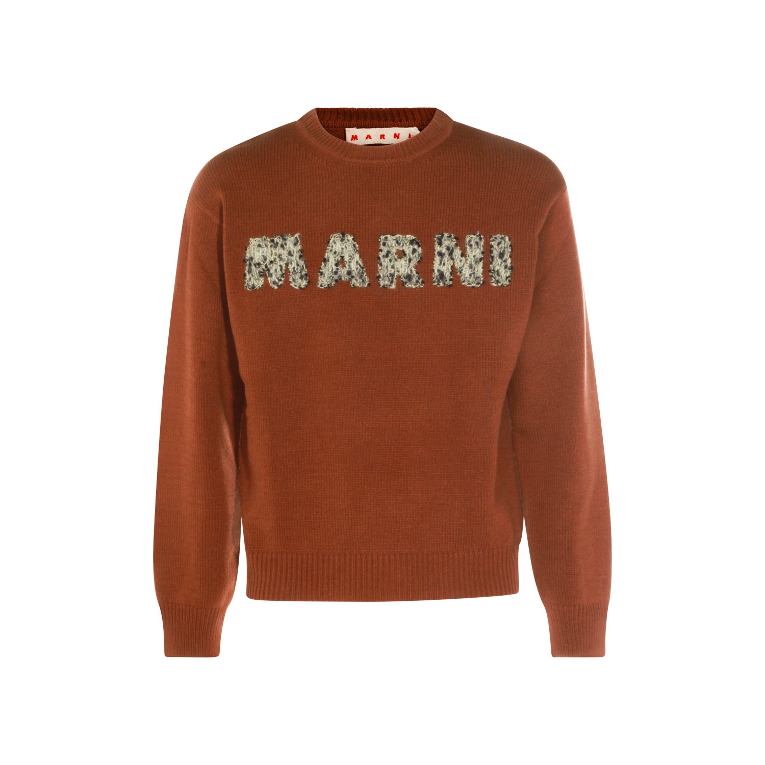 Brown wool knitwear from Marni featuring round collar, long sleeves, frontal logo and regular vestibility.
