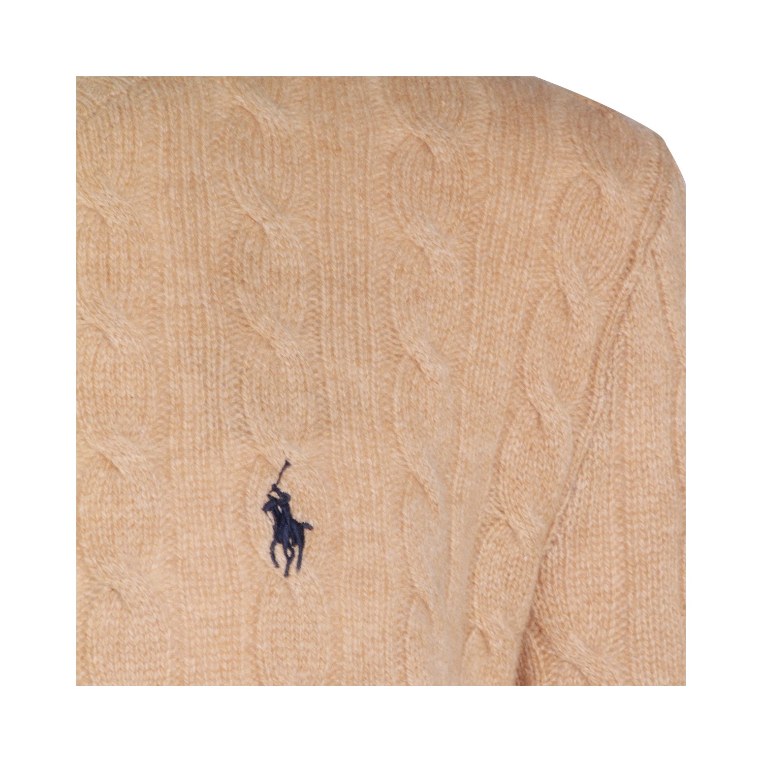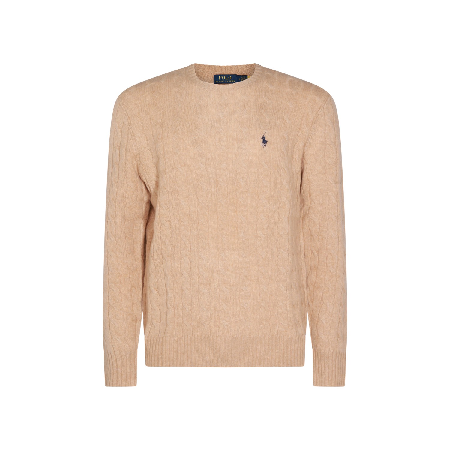 Beige wool knitwear from Polo Ralph Lauren featuring crew neckline, long sleeves, embroidered logo and regular vestibility.