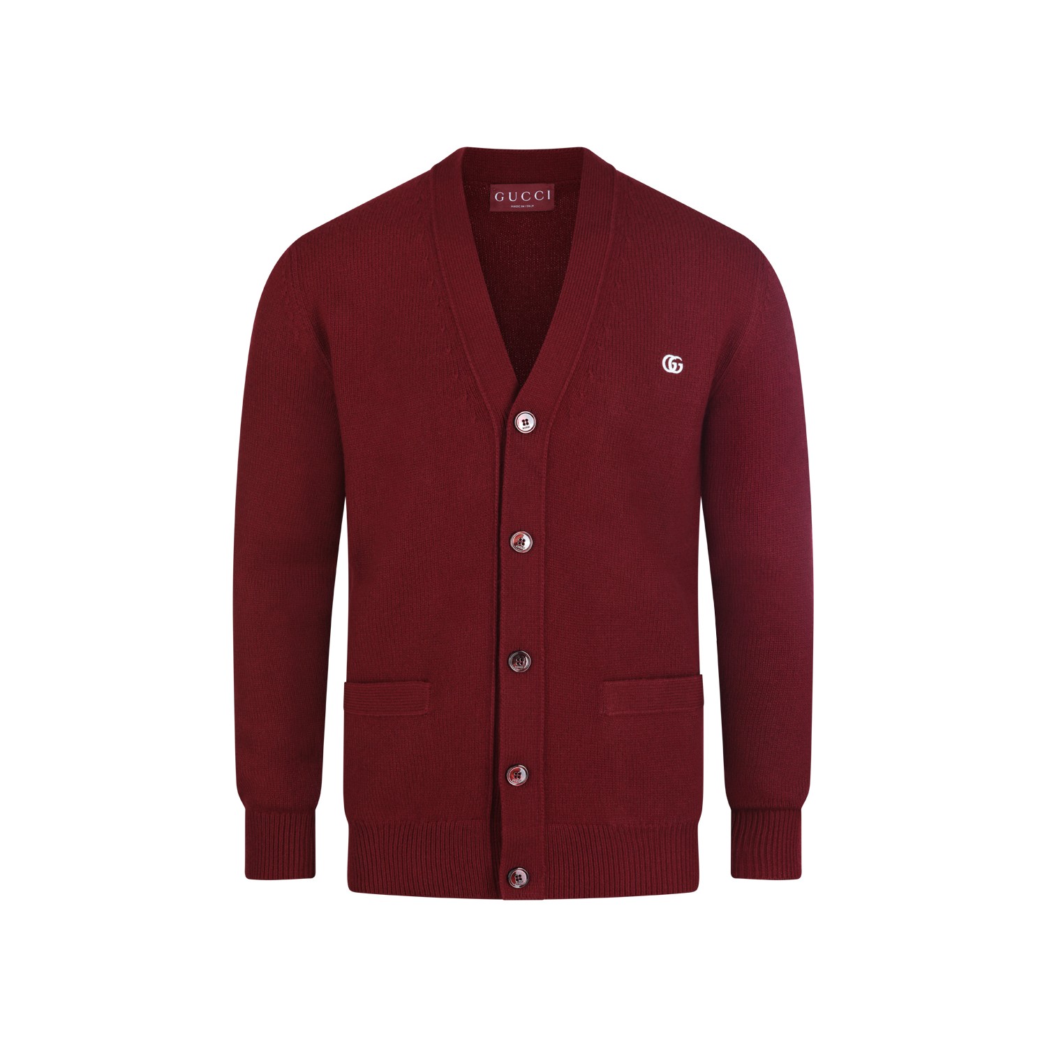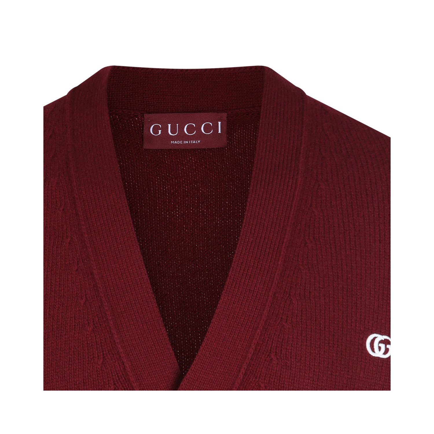 Red wool blend knitwear from Gucci featuring V-neck, buttons fastening, long sleeves, pockets, logo and regular vestibility.