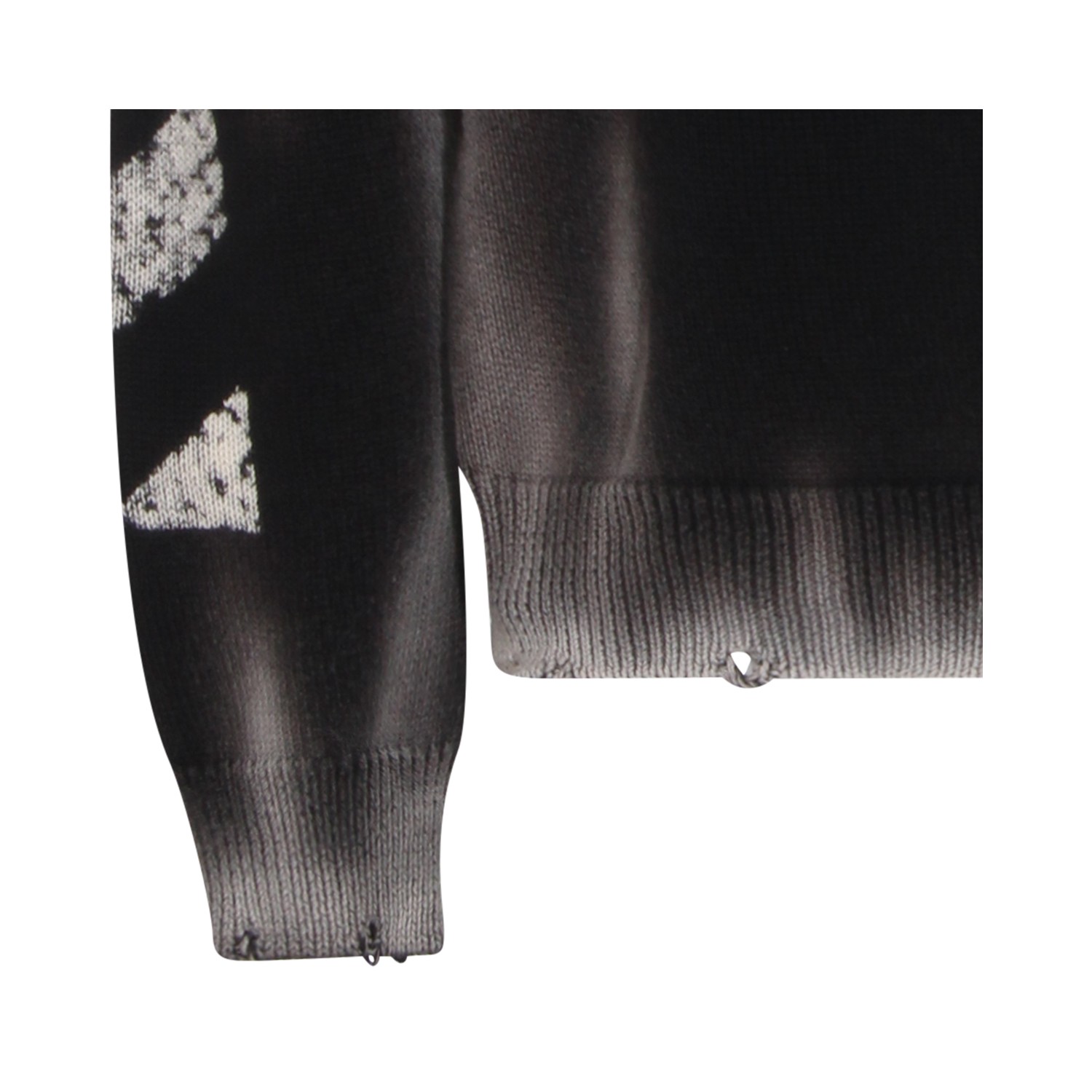 Black cotton knitwear from Off-White featuring crew neckline, long sleeves, used effect, frontal embroidered logo and regular vestibility.