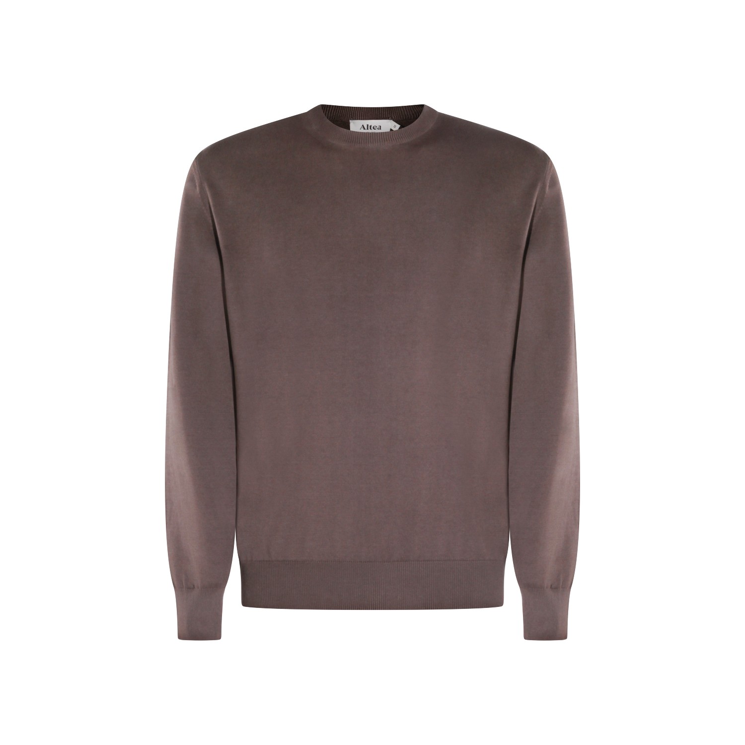 Brown cotton knitwear from Altea featuring long sleeves, round collar and regular vestibility.