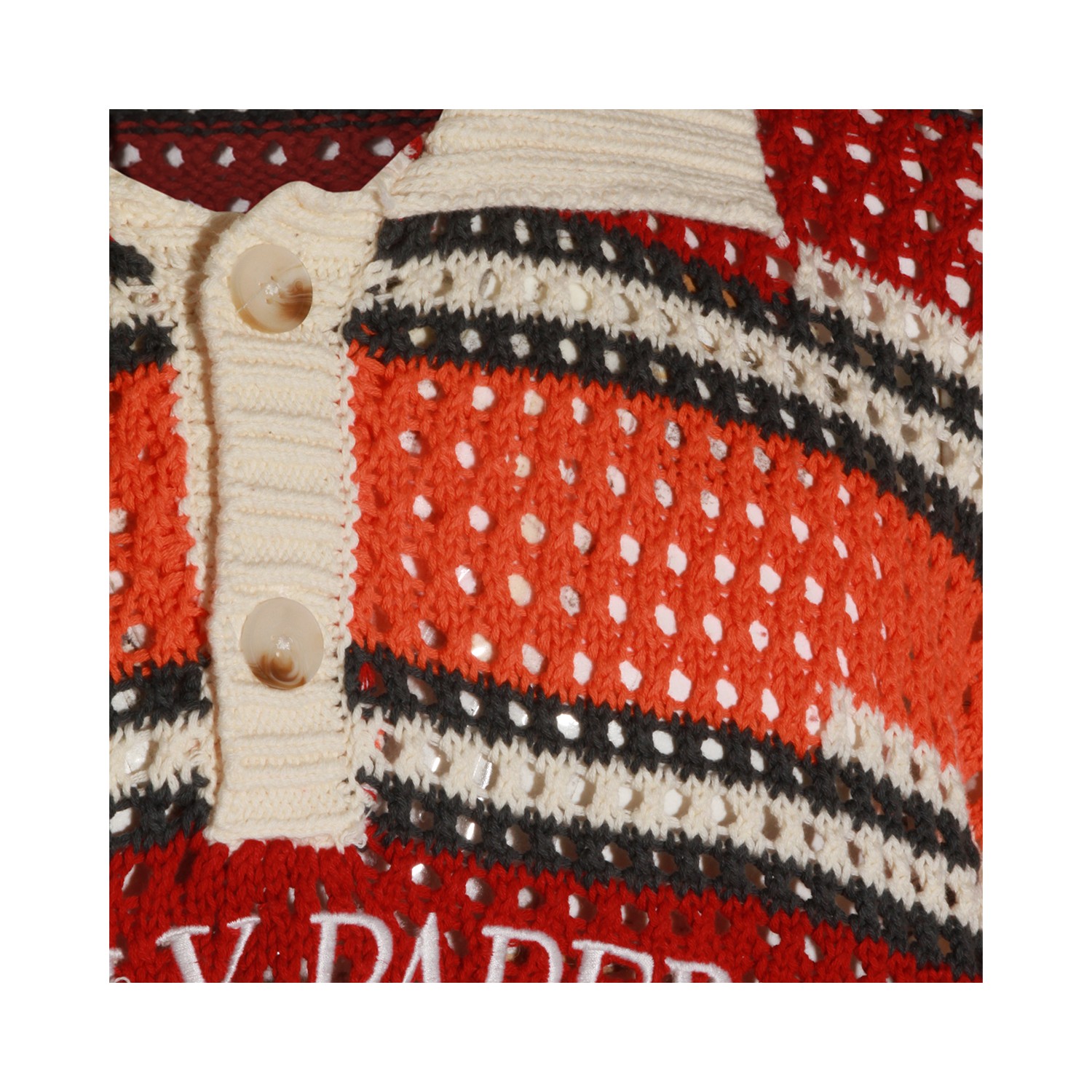 Multicolor cotton knitwear from Daily Paper featuring ribbed collar with buttons, long sleeves, embroidered logo, knitted texture and regular vestibility.