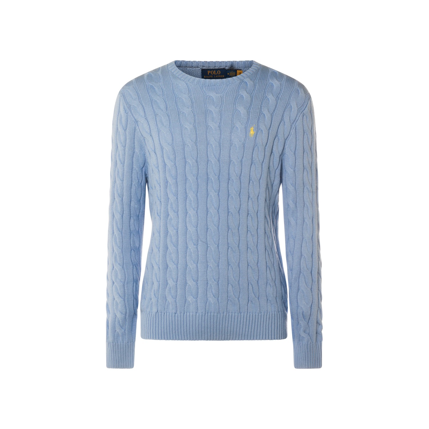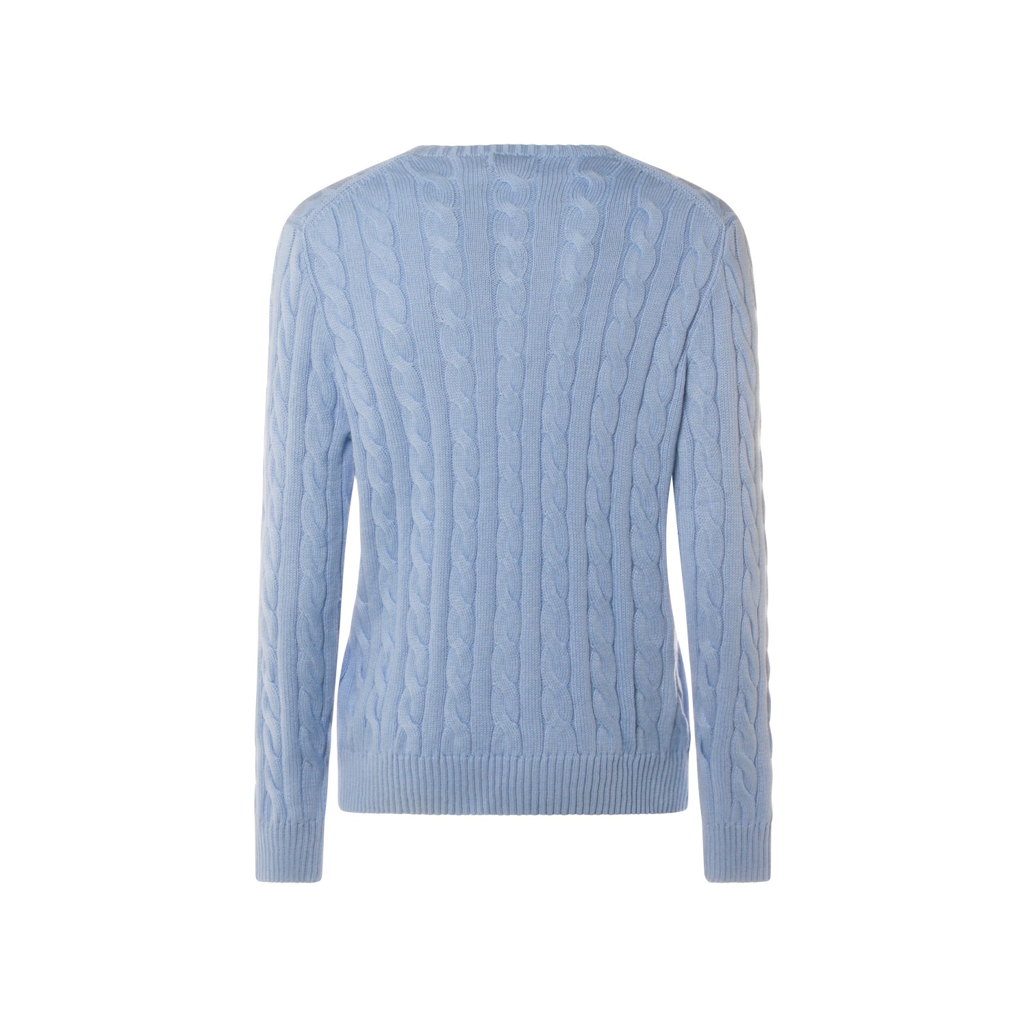 Light blue cotton knitwear from Polo Ralph Lauren featuring round collar, long sleeves, braided workmanship, logo and regular fit.