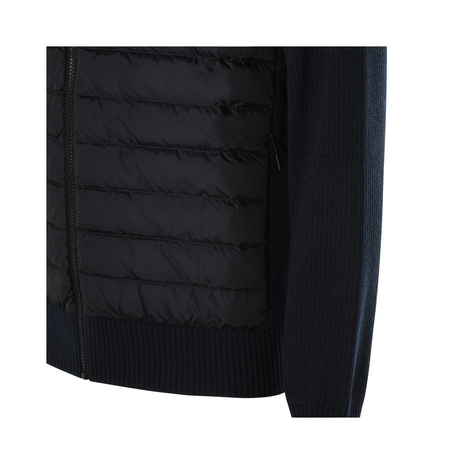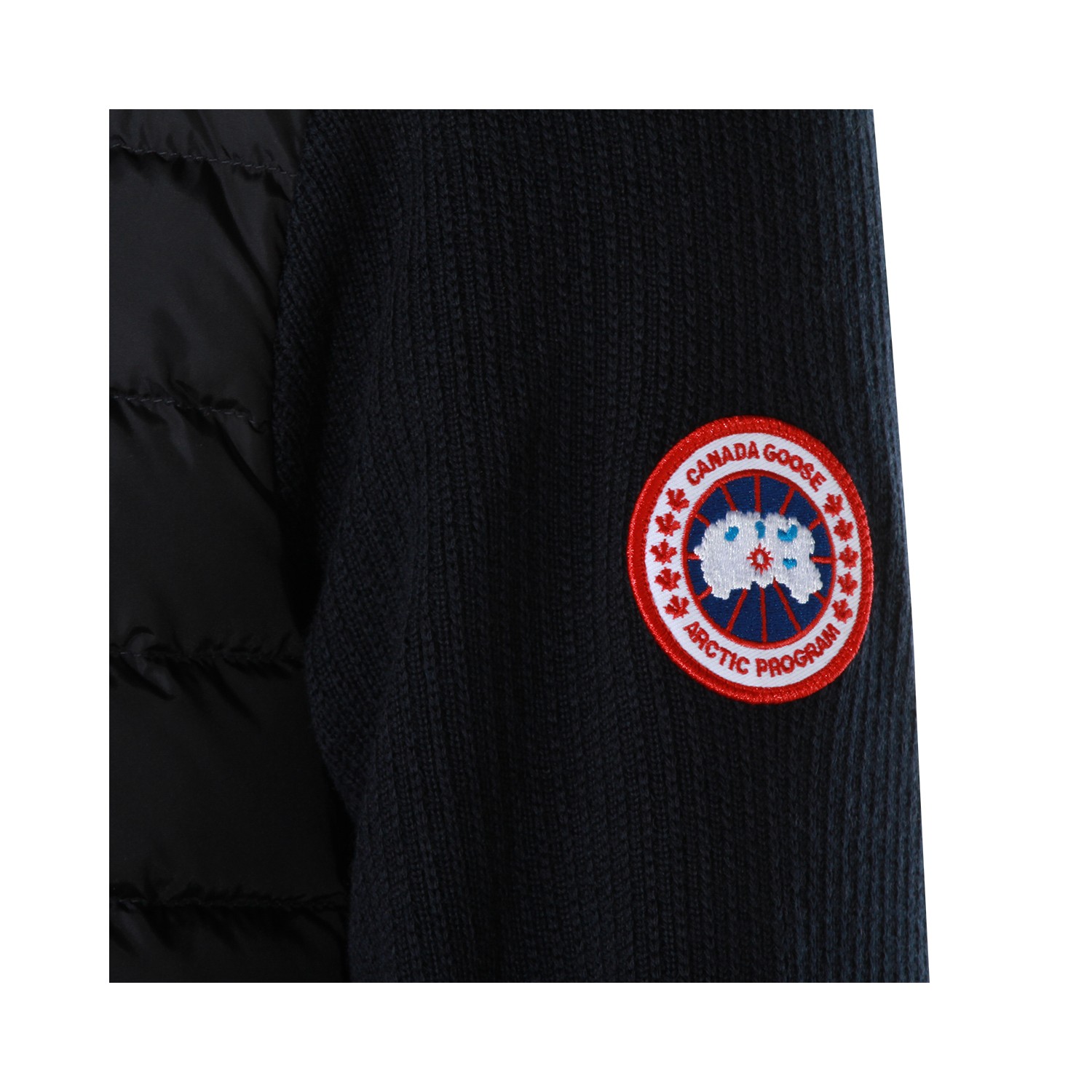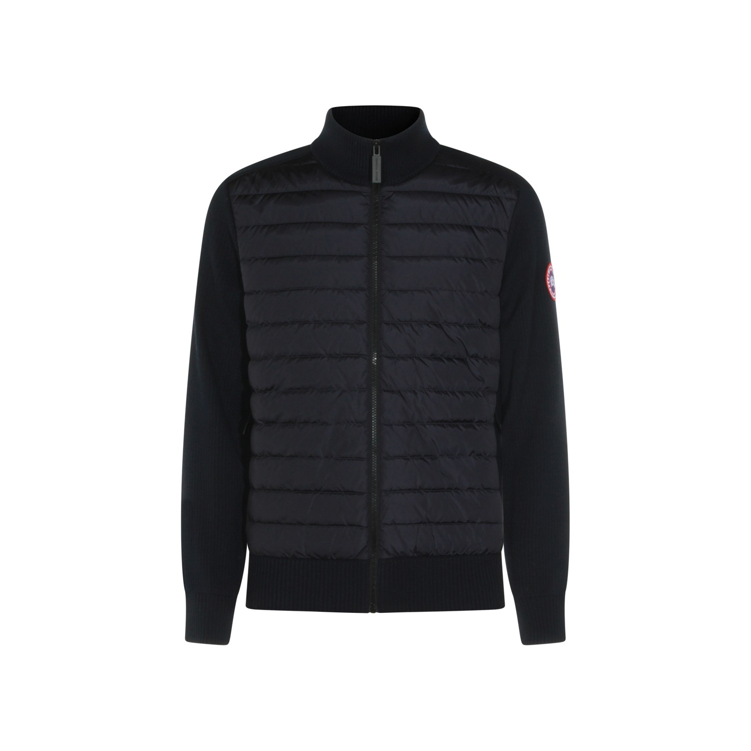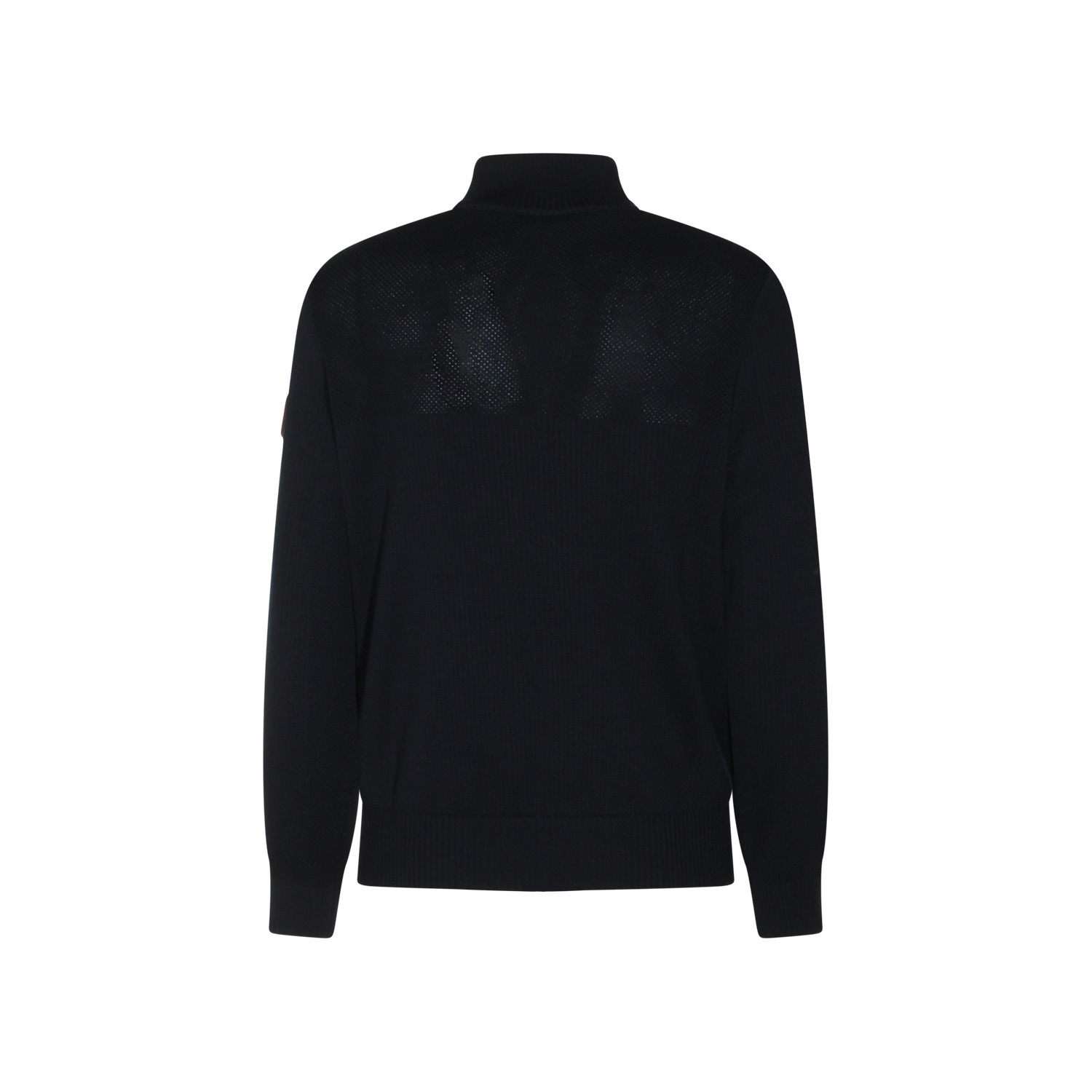 Dark blue wool knitwear from Canada Goose featuring long sleeves, high collar, zip fastening and logo patch.