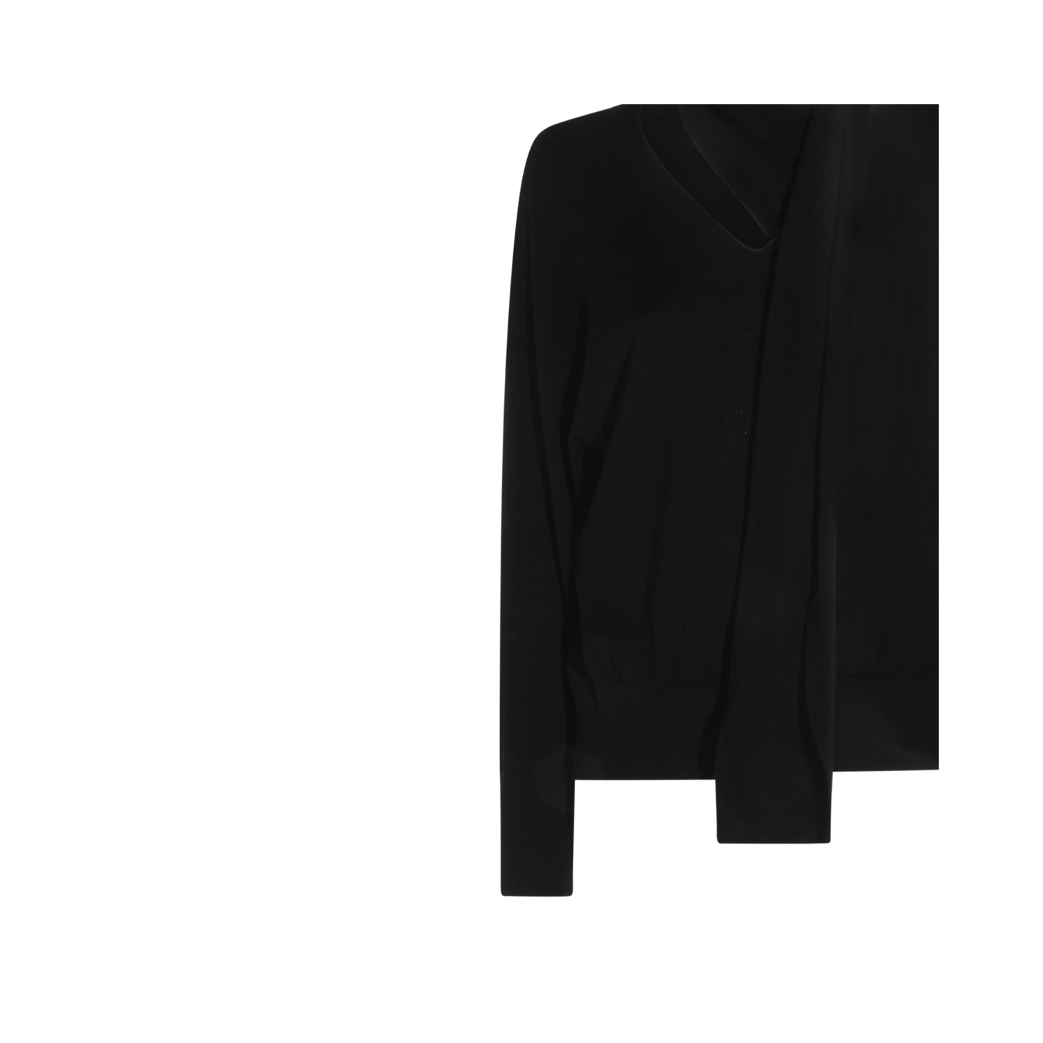 Black cashmere knitwear from Zanone featuring asymmetric neckline, long sleeves and ribbed trims.