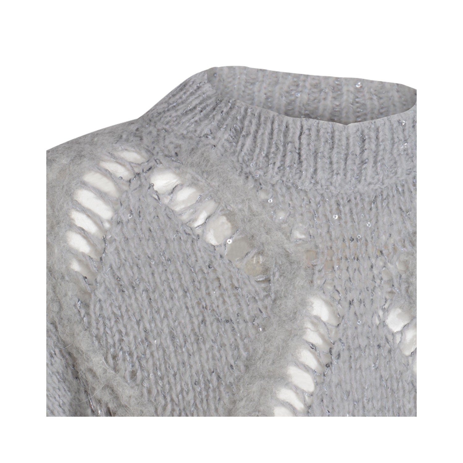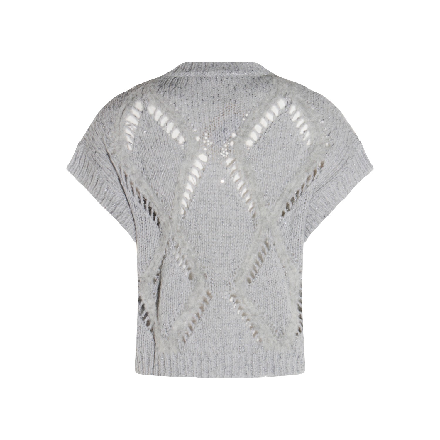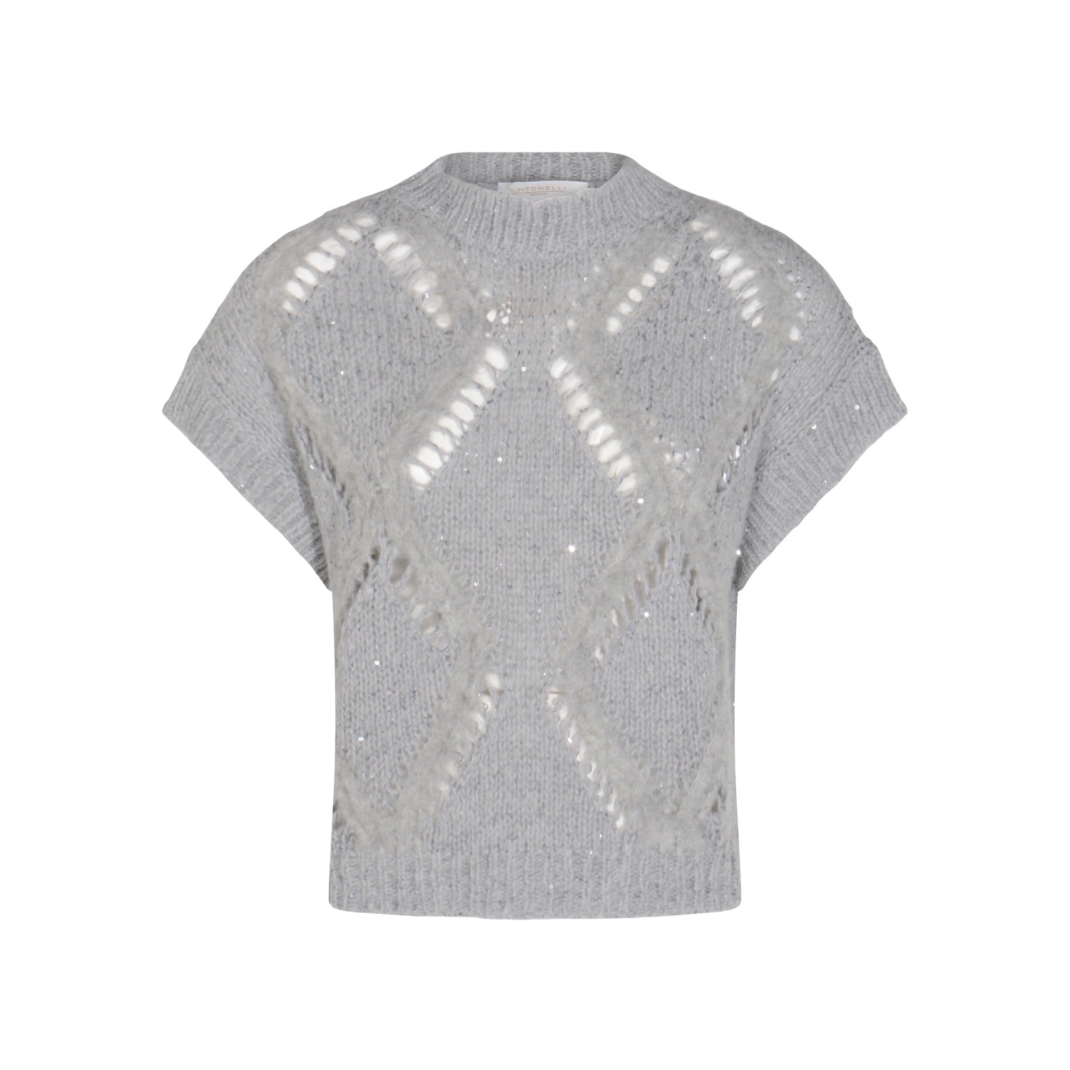 Grey wool Tarquinio knitwear from Antonelli Firenze featuring round collar, short sleeves, openwork knitting and regular vestibility.